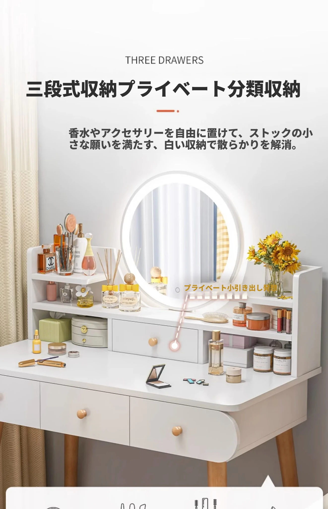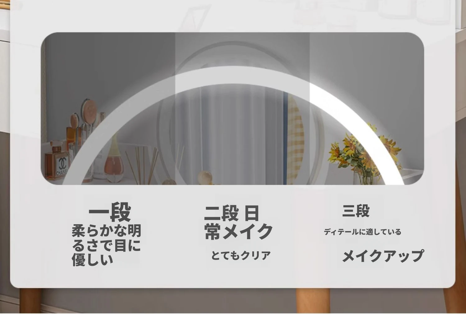 スマートミラー⭐【トリプル引き出し+花びら椅子】100cm暖白●