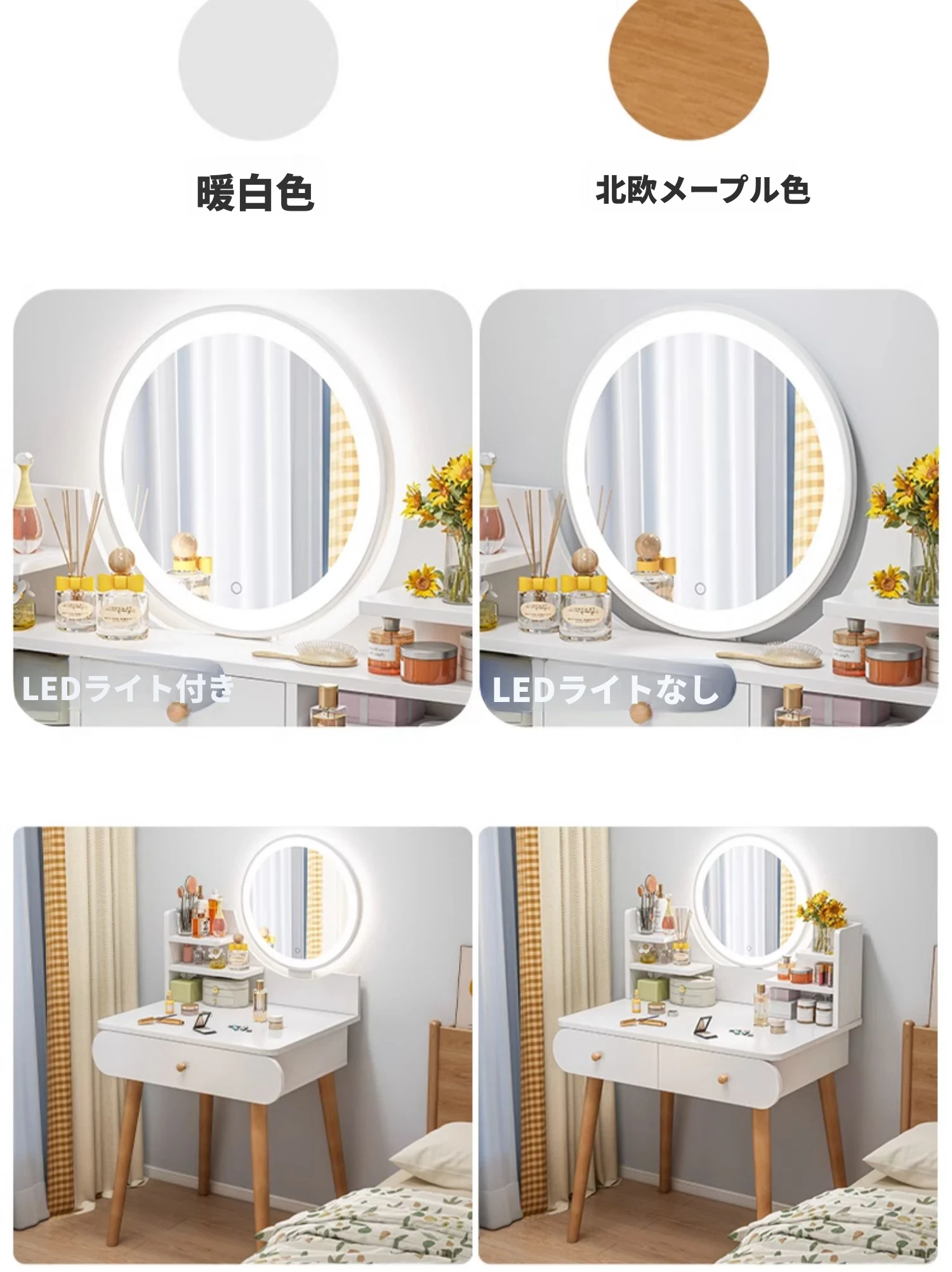 スマートミラー⭐【シングル引き出し+フェアリー椅子】60cm暖白●