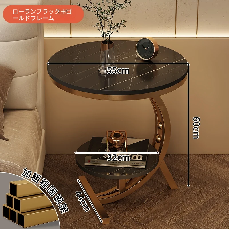 【輸入された岩板】金フレーム+ローランブラック(直径50cm)