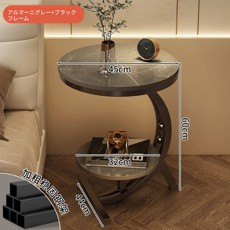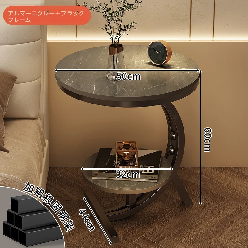 【輸入された岩板】黒フレーム+アルマーニグレー(直径50cm)
