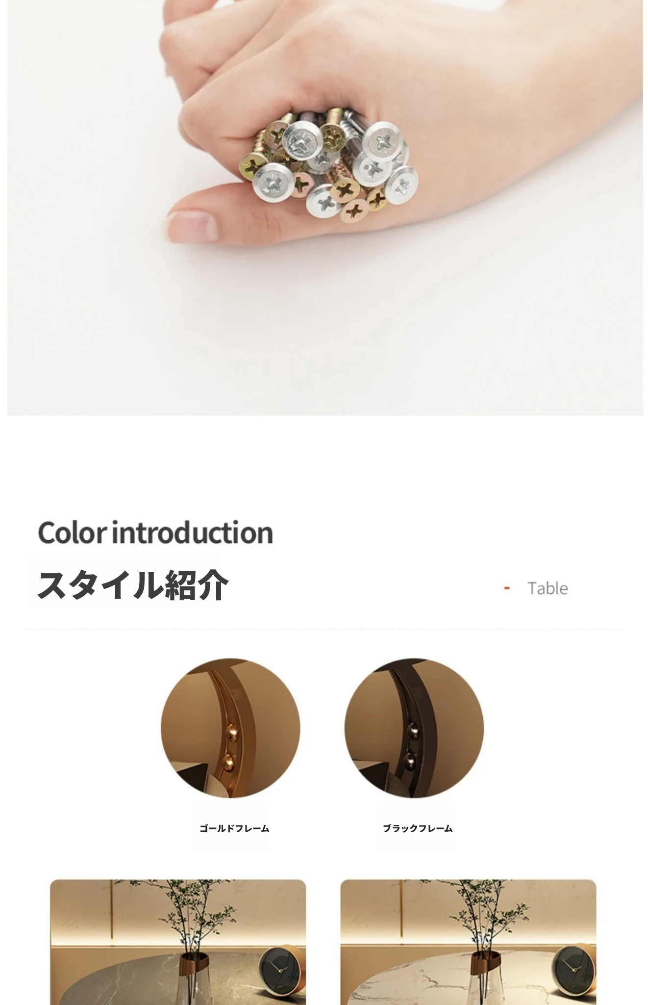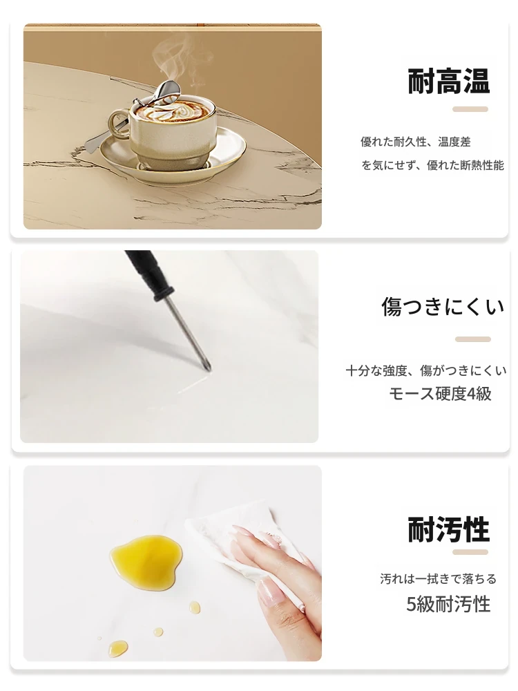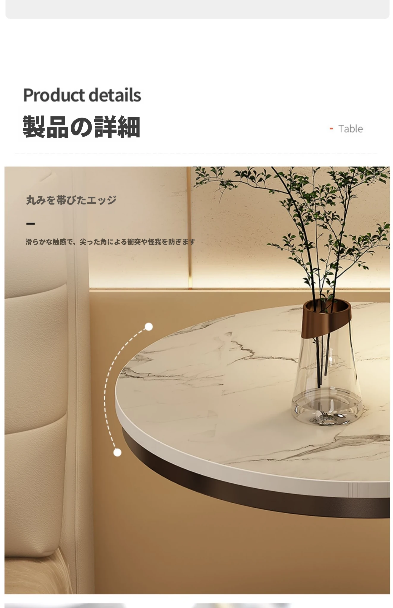 【輸入された岩板】金フレーム+ローランホワイト(直径50cm)
