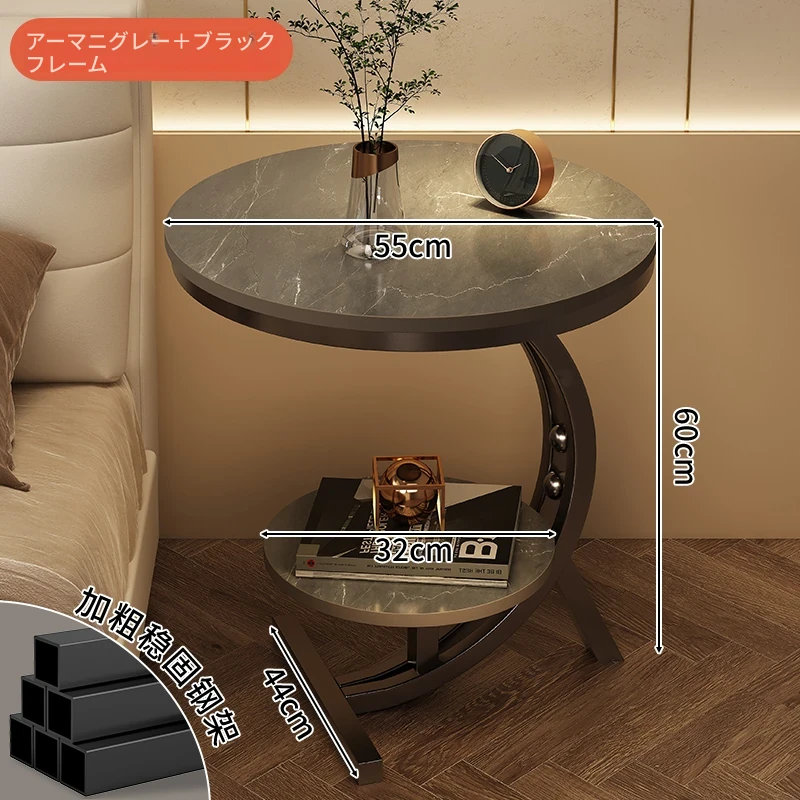 【輸入された岩板】黒フレーム+アルマーニグレー(直径55cm)