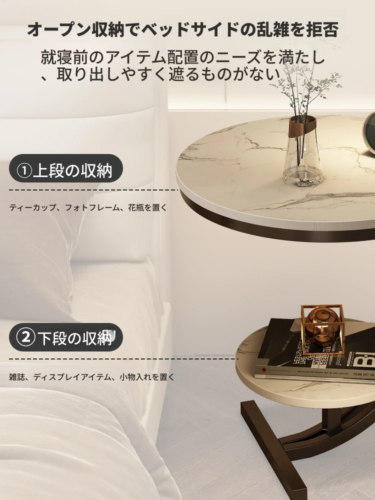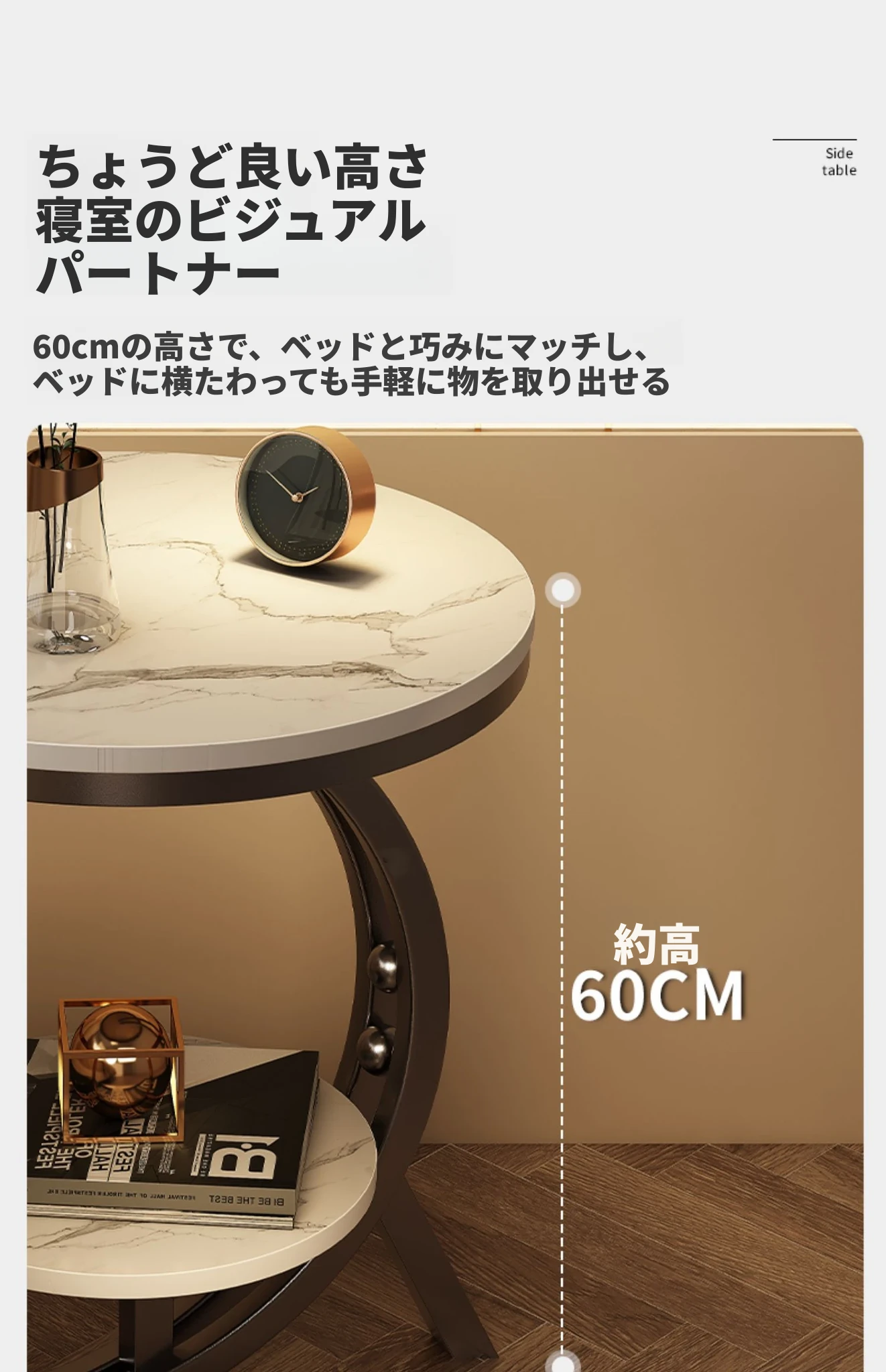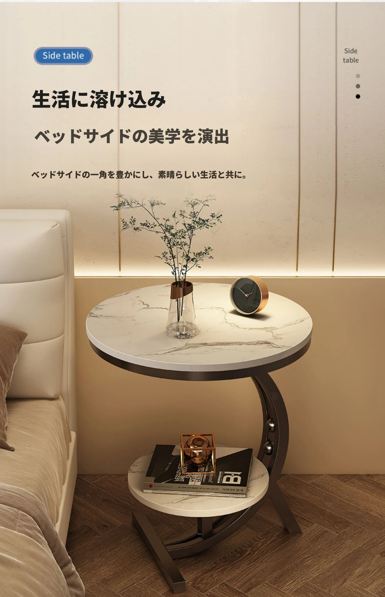 シンプルでモダンなベッドサイドテーブル!クリエイティブなサイドキャビネット、軽やかなラグジュアリー感を演出。おしゃれな収納で、あなたの寝室をより魅力的に!