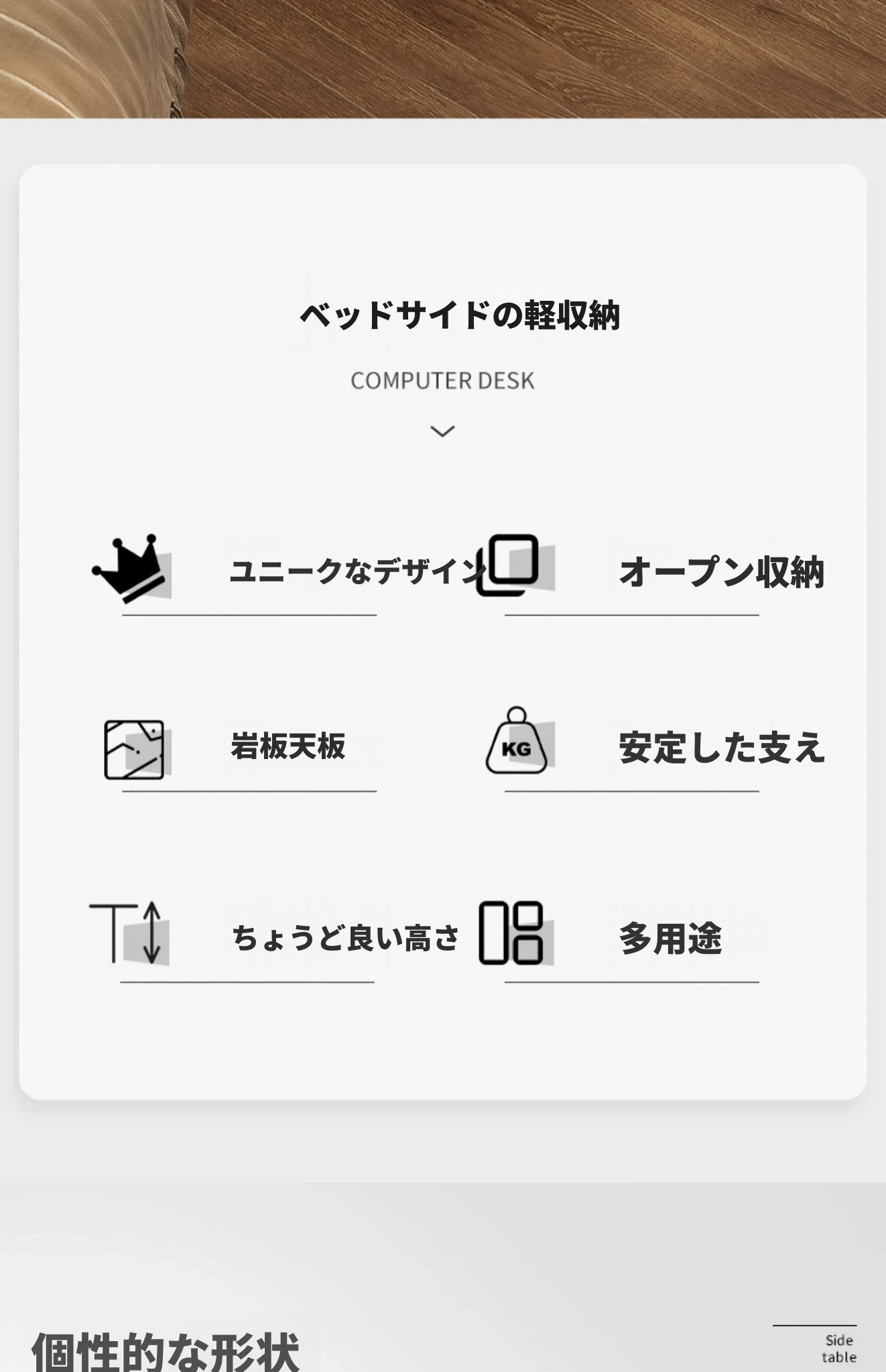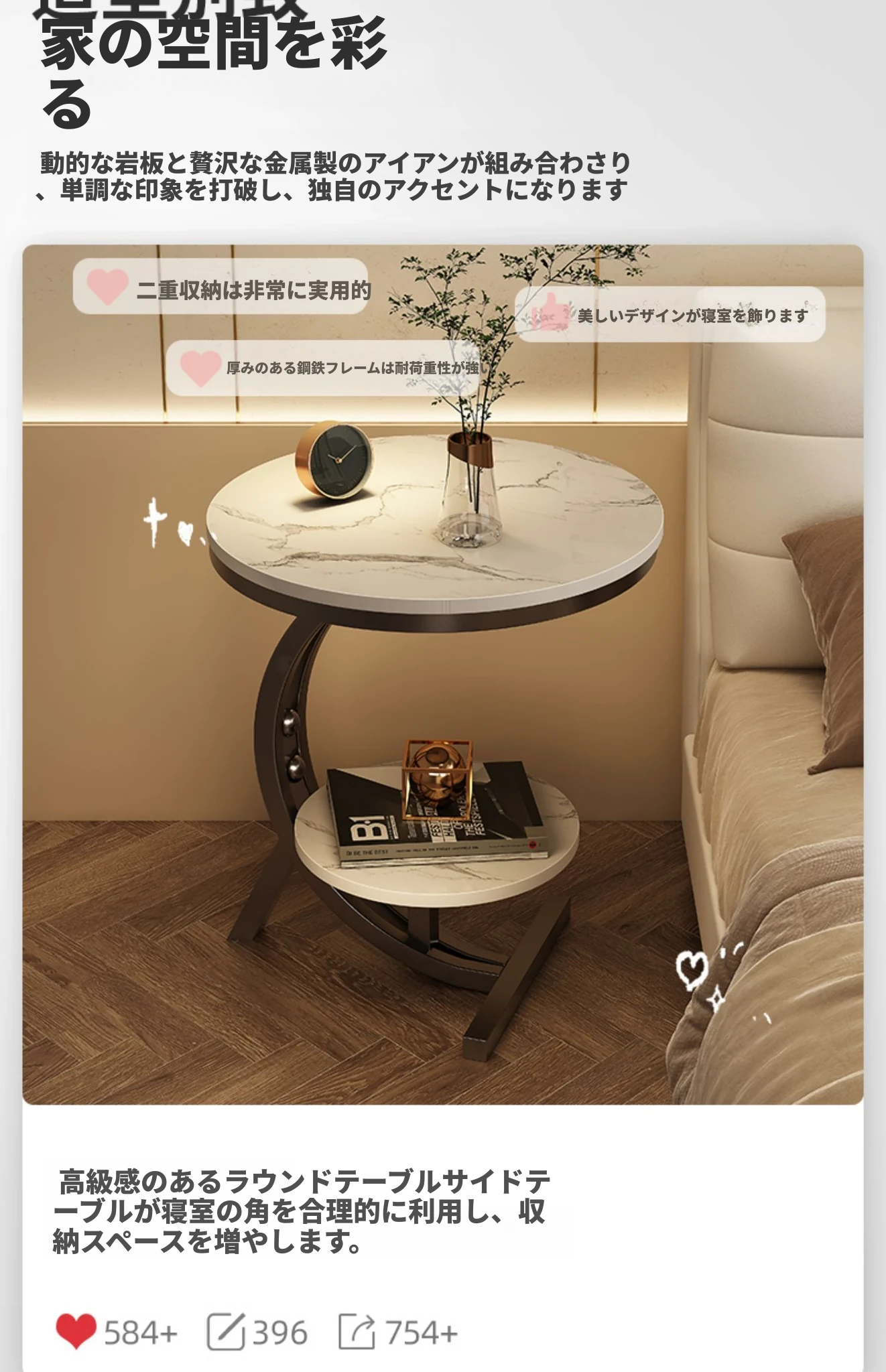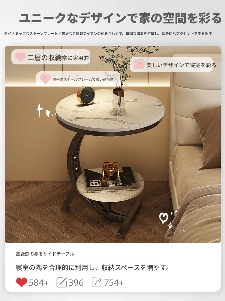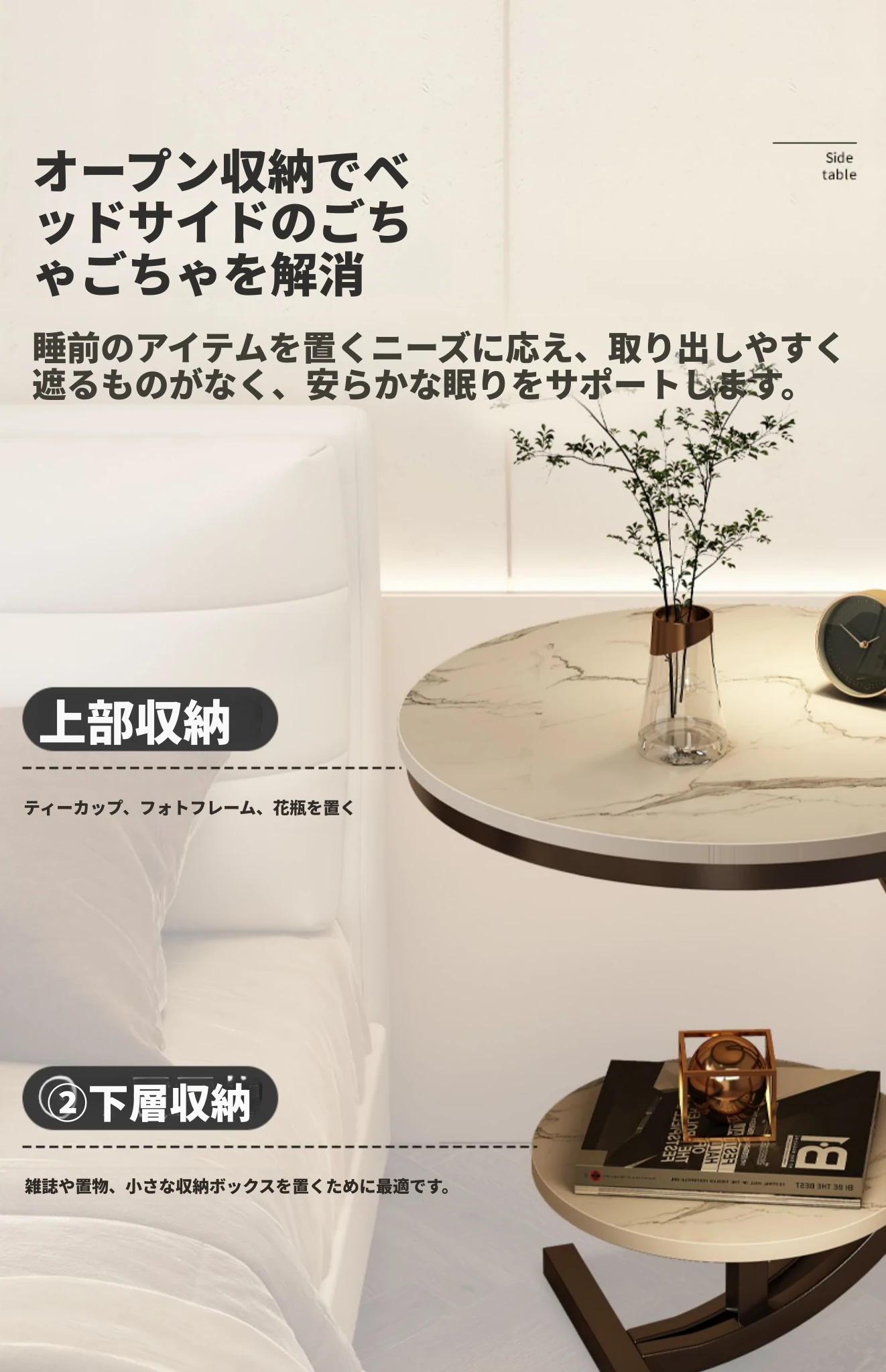 シンプルでモダンなベッドサイドテーブル!クリエイティブなサイドキャビネット、軽やかなラグジュアリー感を演出。おしゃれな収納で、あなたの寝室をより魅力的に!