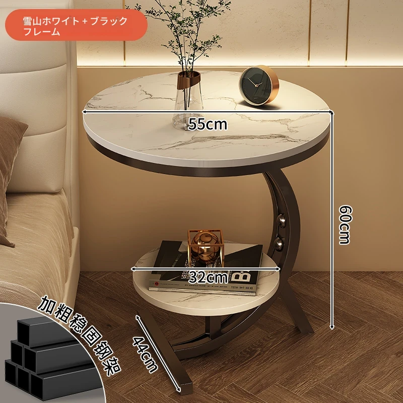 【輸入された岩板】黒フレーム+ローランホワイト(直径55cm)