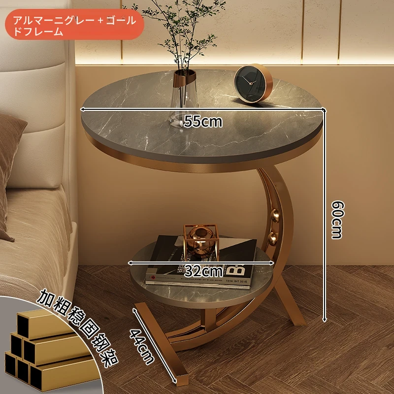 【輸入された岩板】金フレーム+アルマーニグレー(直径55cm)