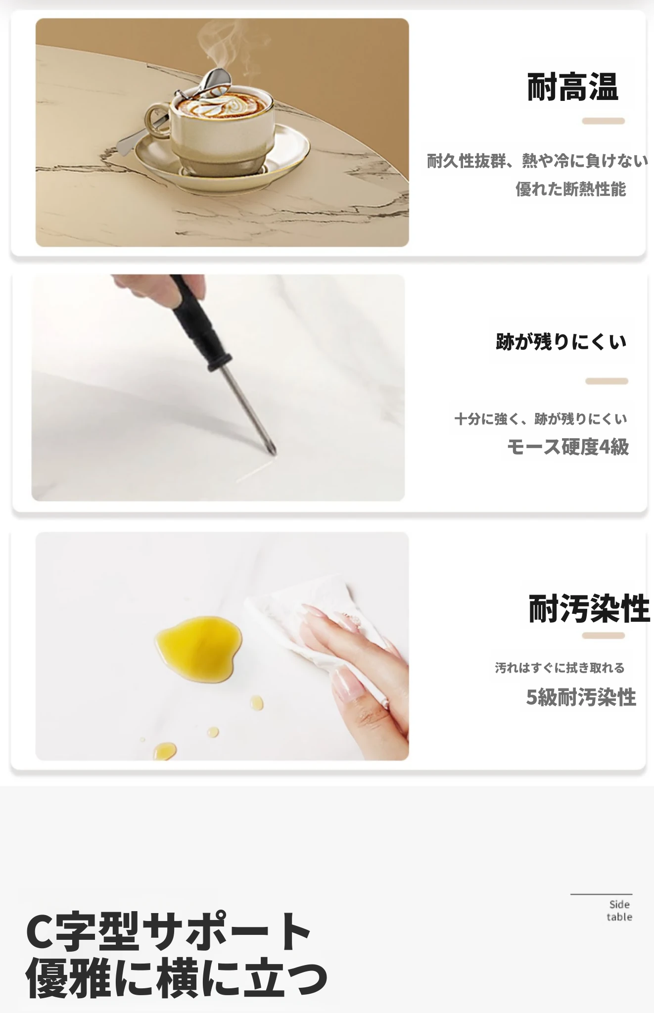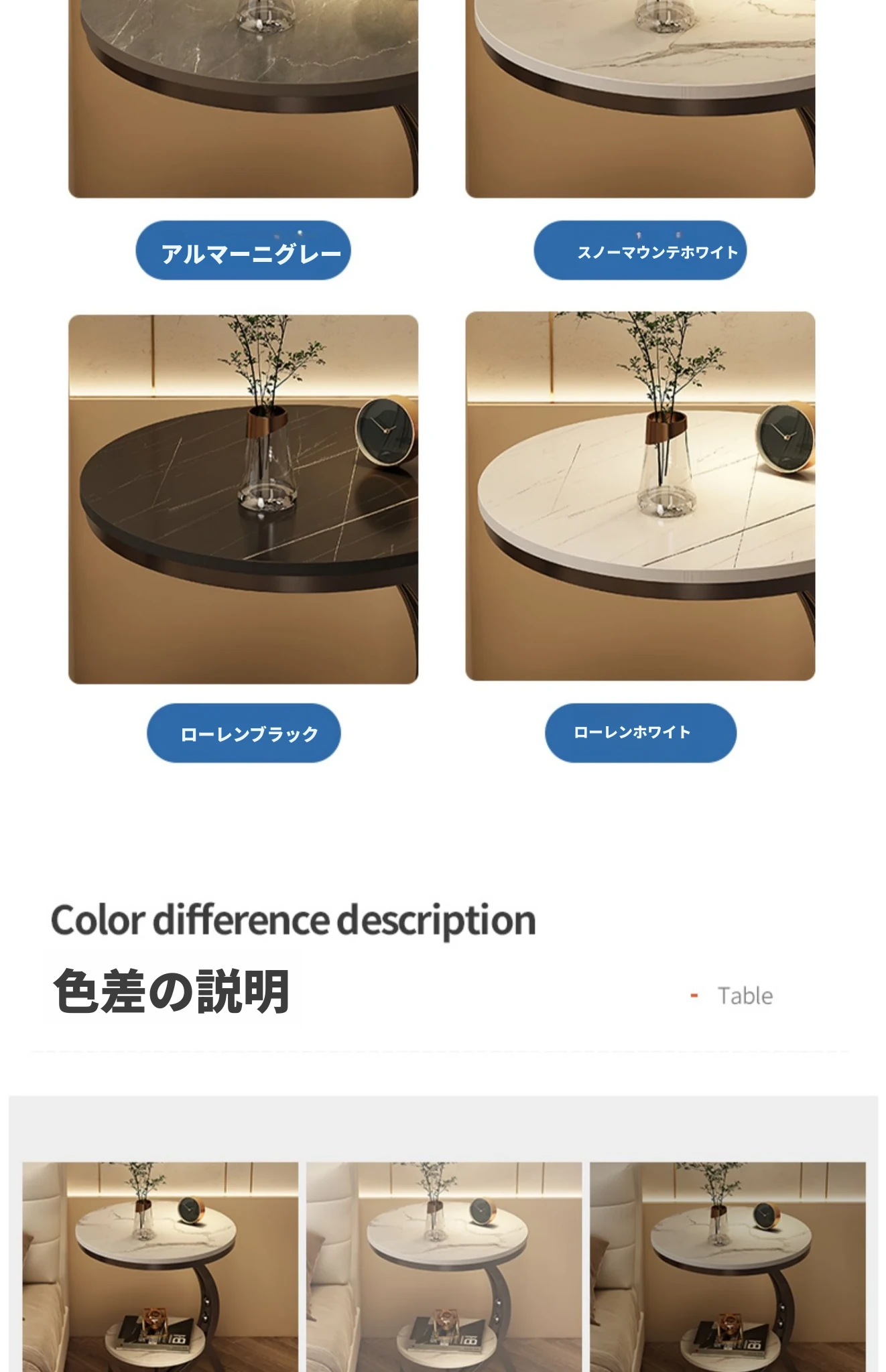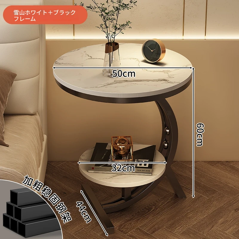 【輸入された岩板】黒フレーム+ローランホワイト(直径50cm)