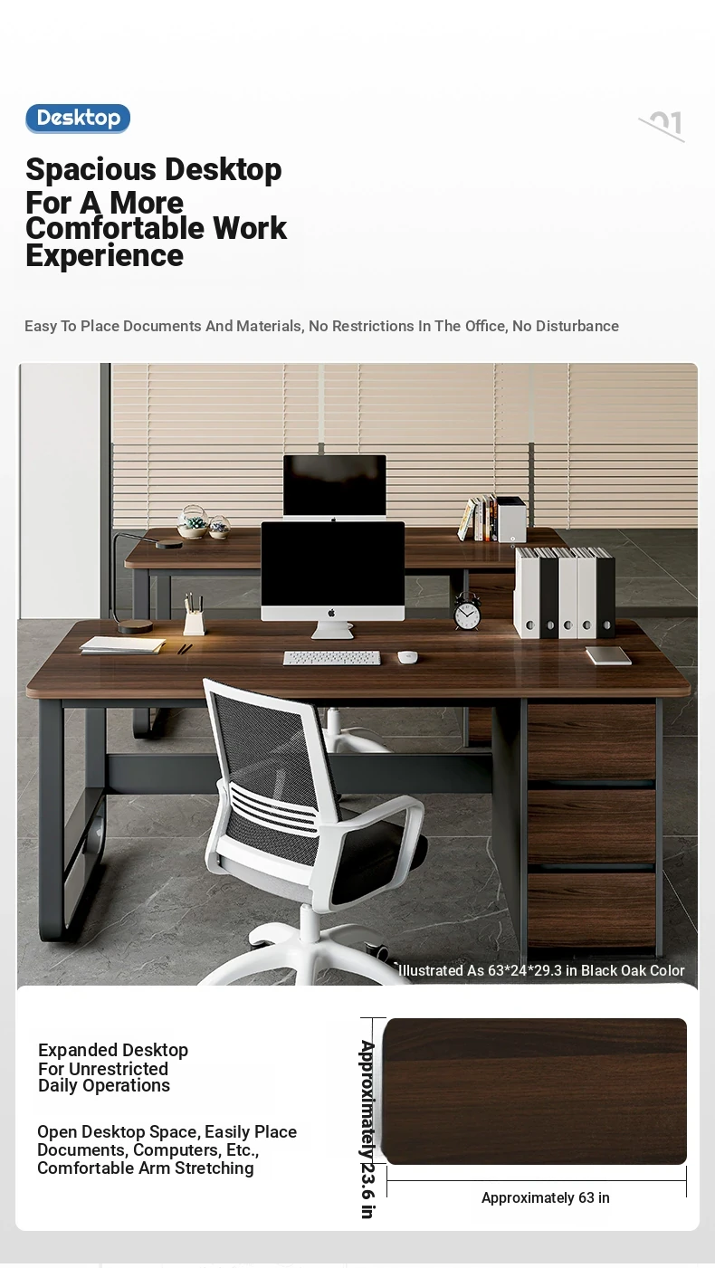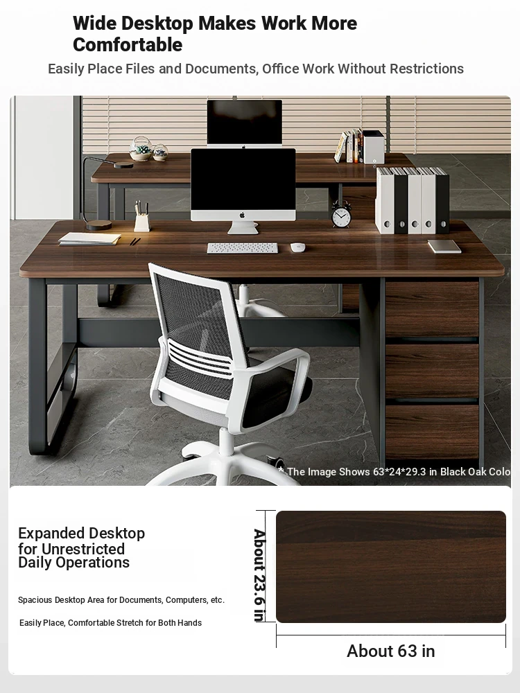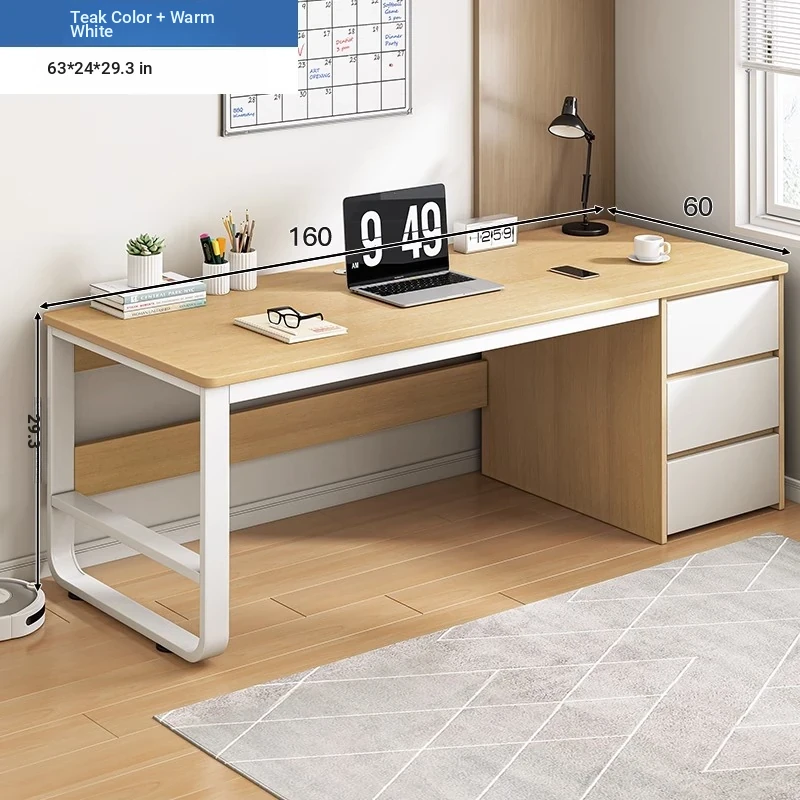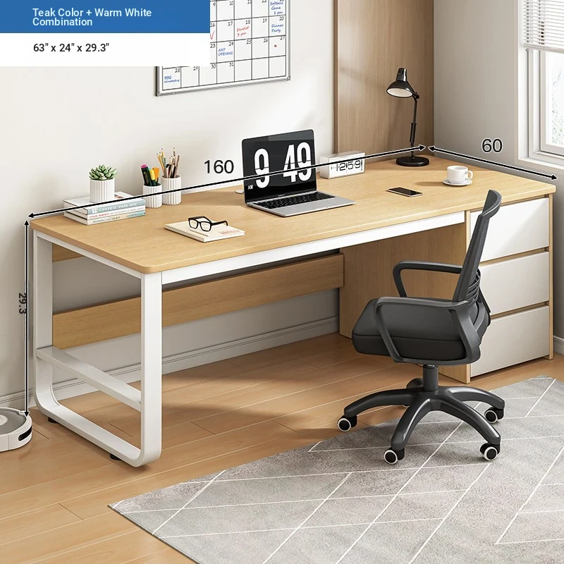 [Upgraded Three Drawers + Computer Chair] Teak Color 62.99in