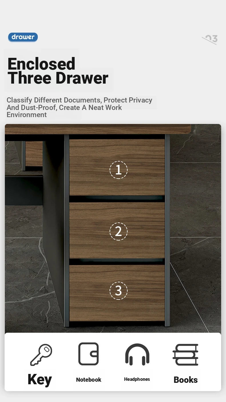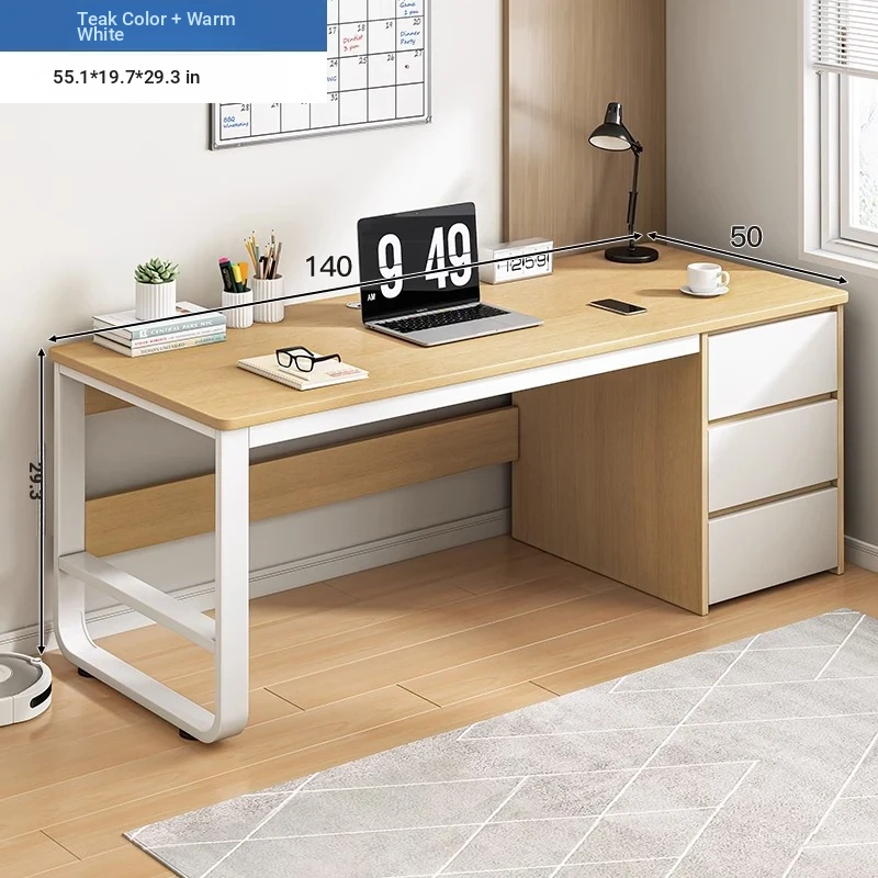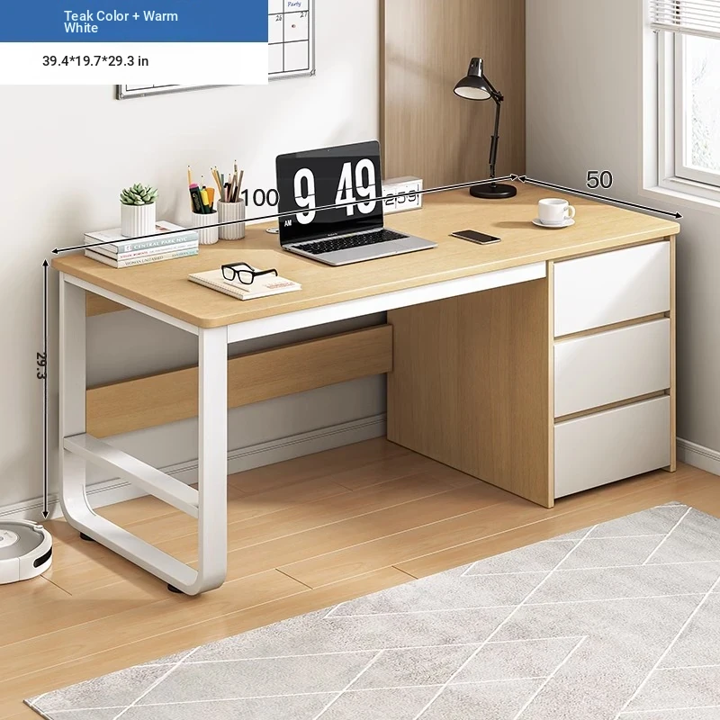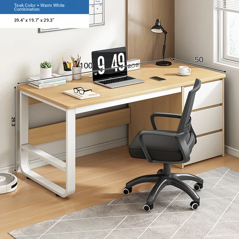 [Upgraded Three Drawers + Computer Chair] Teak Color 47.24in