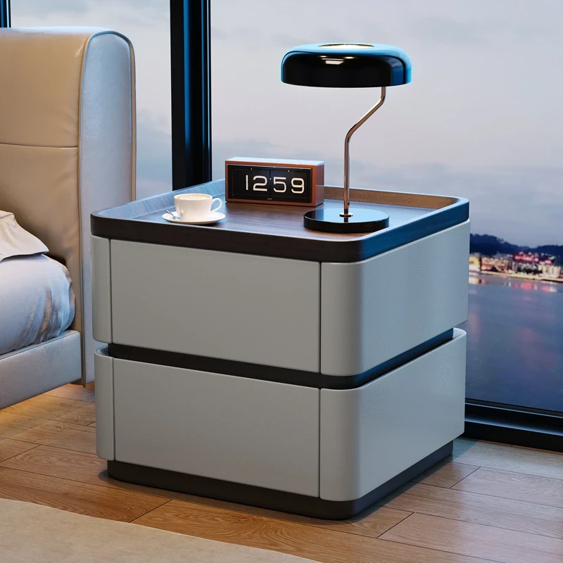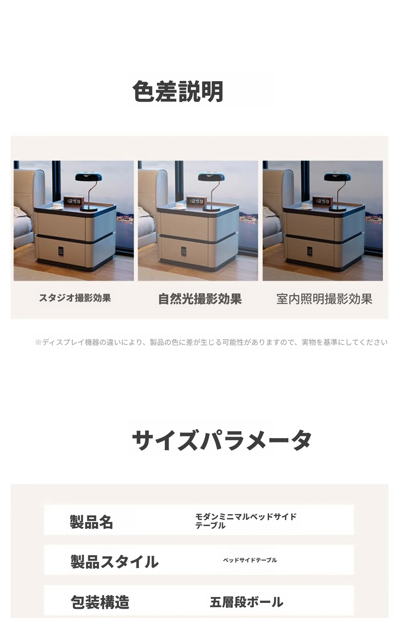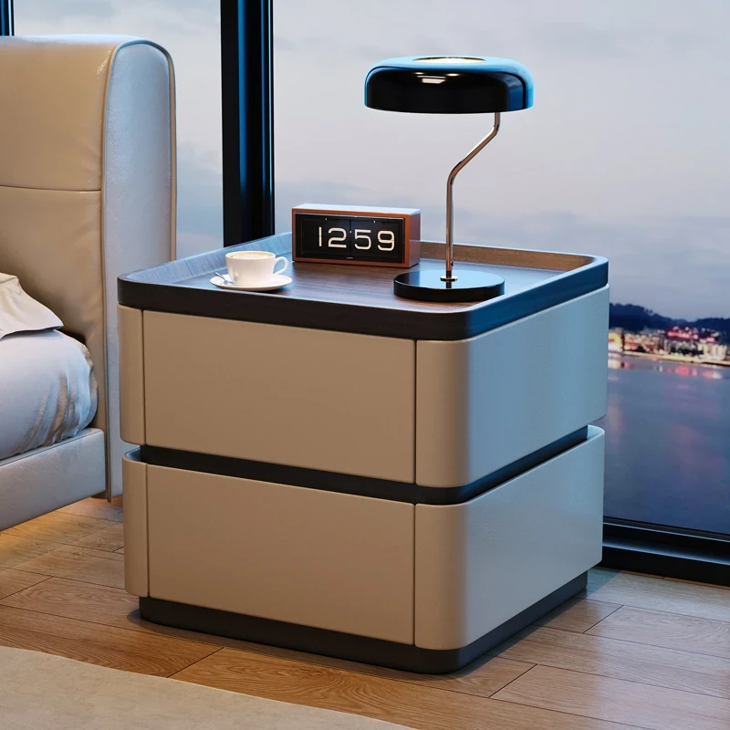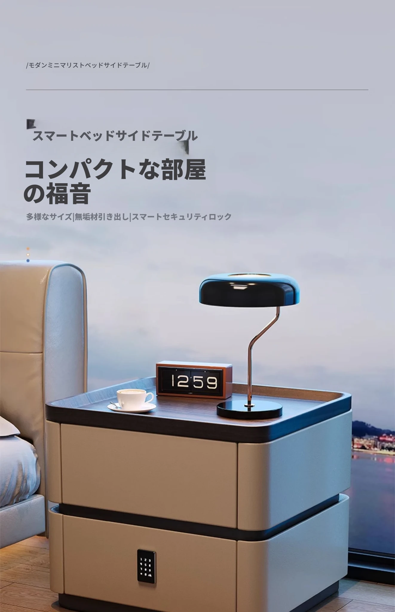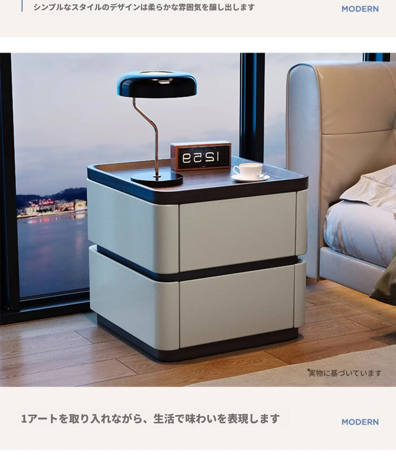 シンプルでモダンなデザインの無垢材ナイトテーブル - イタリアンミニマリズムを感じる贅沢感!おしゃれな収納スペース付きで、寝室をスタイリッシュに演出。あなたのベッドサイドにぴったりの高級感あふれる家具です。