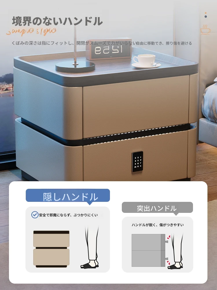 ❤店長おすすめ❤ライトグレー+暗証番号ロック+無垢材の引き出し Ω