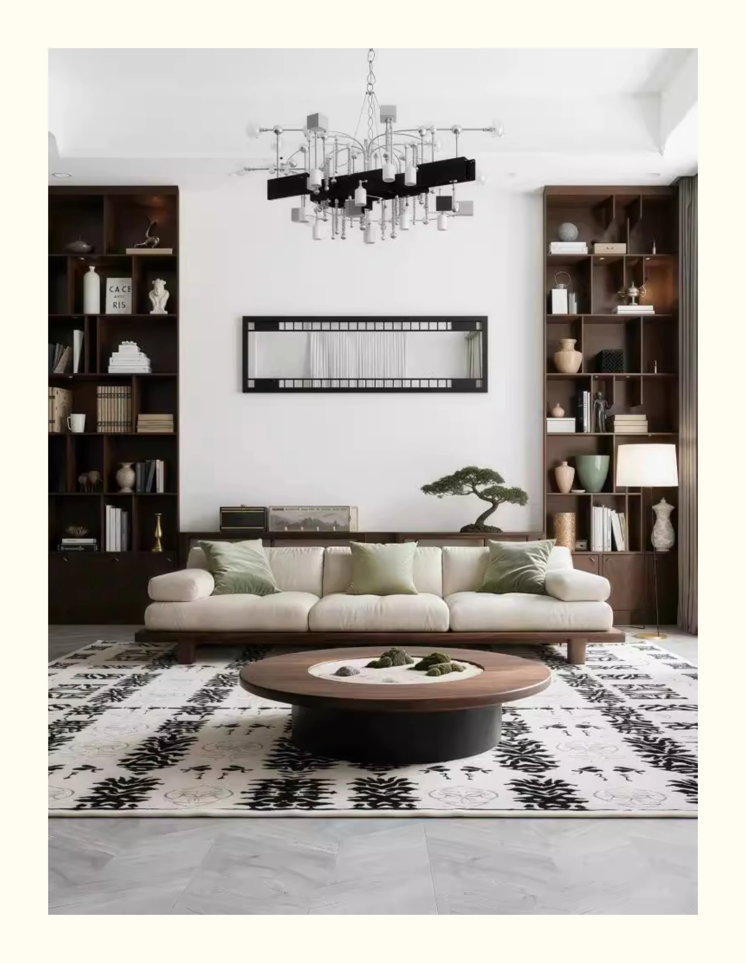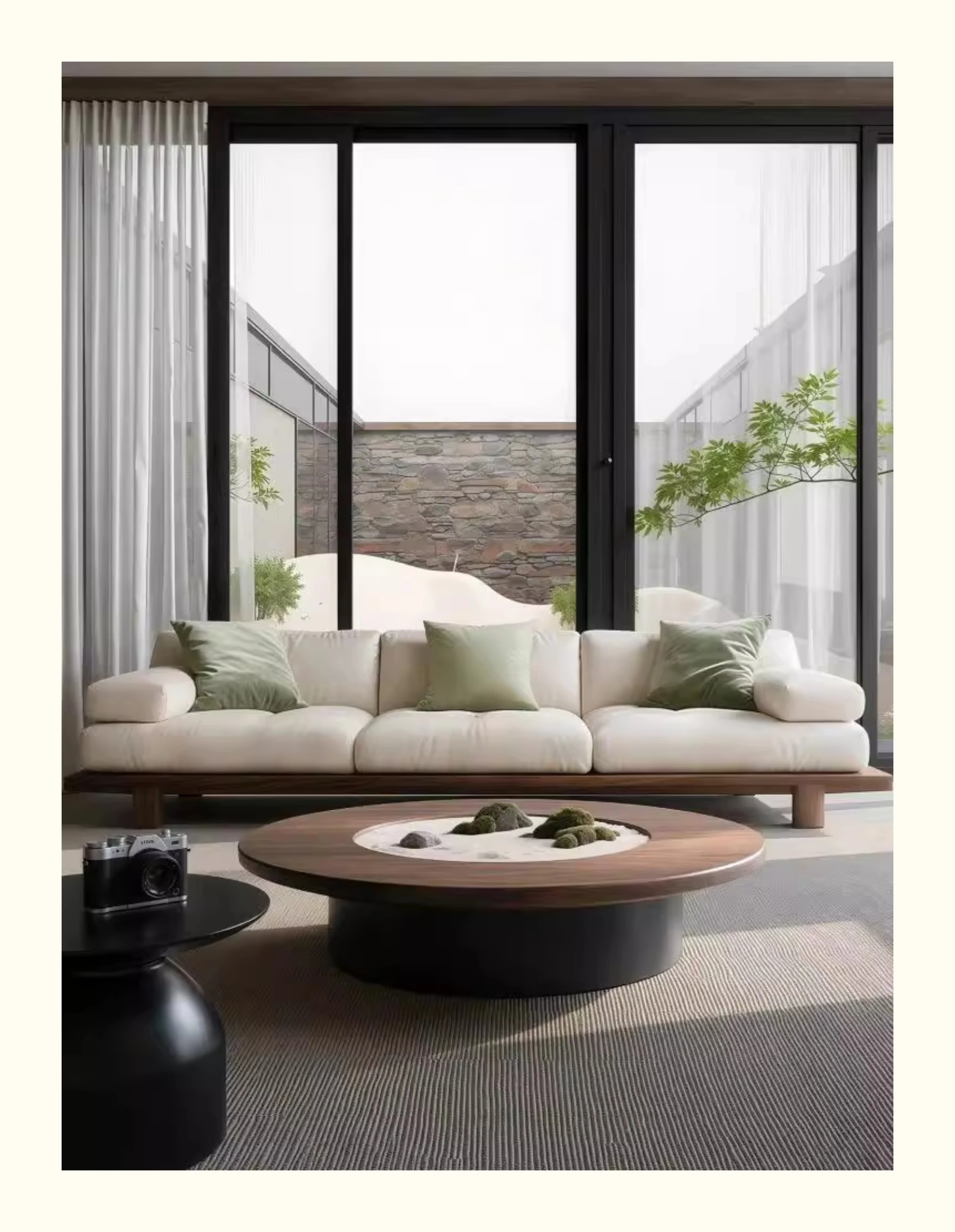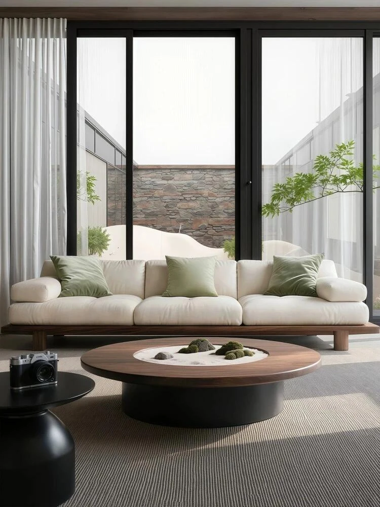 モダンミニマリスト無垢材ソファセット - 新中式スタイルのリビングルーム用、直線的なデザインで、別荘やモデルルーム、ホテルロビーの接客にも最適!おしゃれで心地よい空間を演出します。