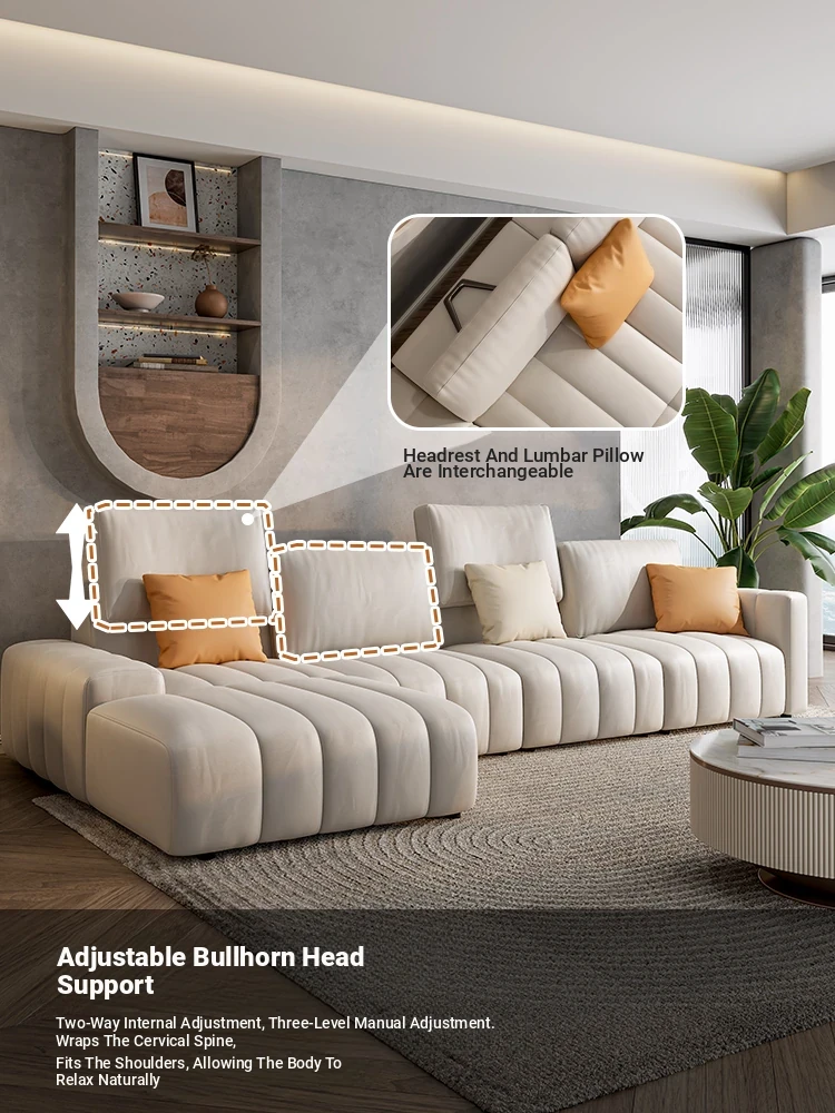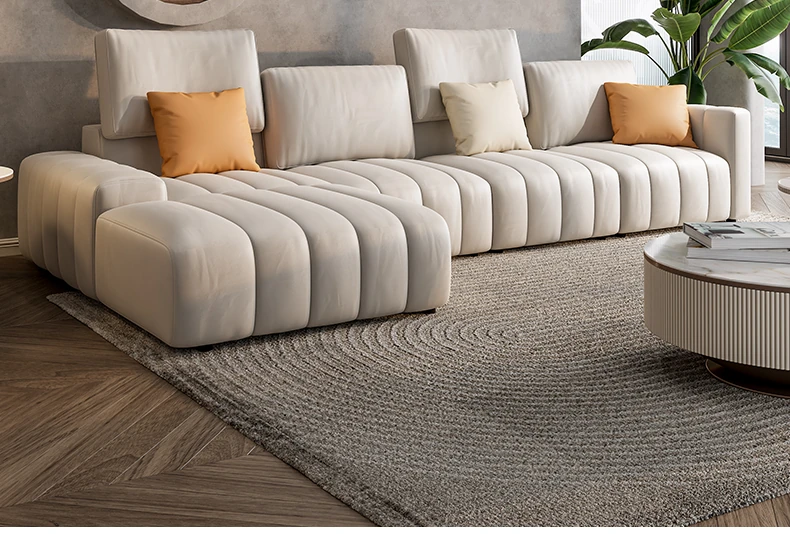 Modern Minimalist Tech Fabric Sofa Set - Italian Designer Cream Chaise Corner Sofa, 2025 New Collection for Your Living Room