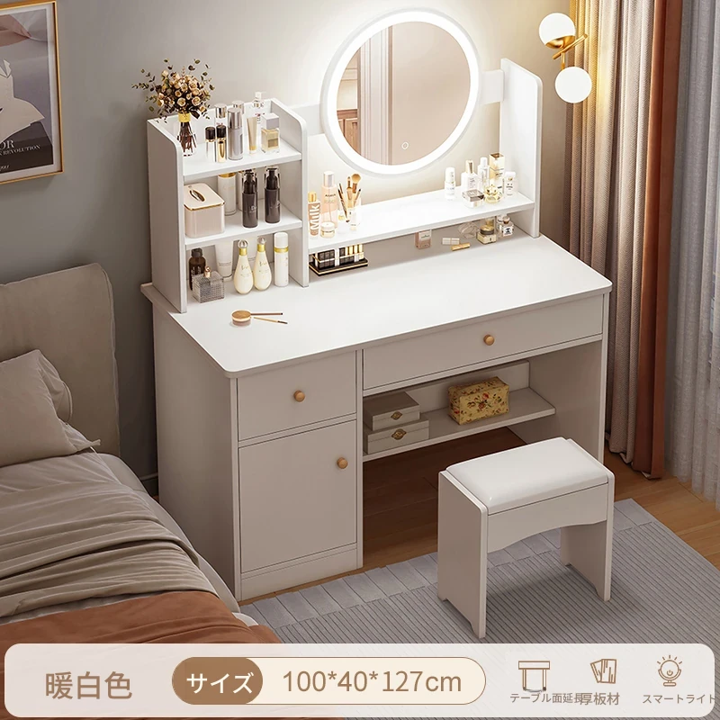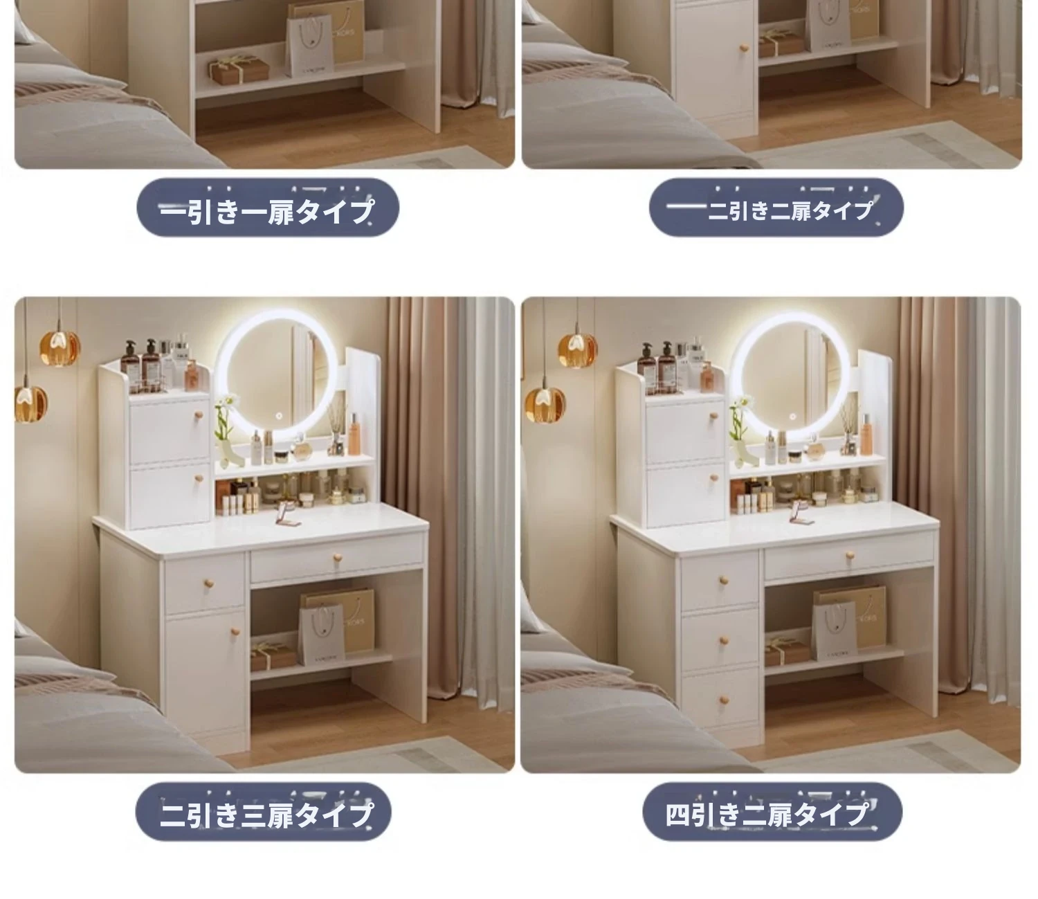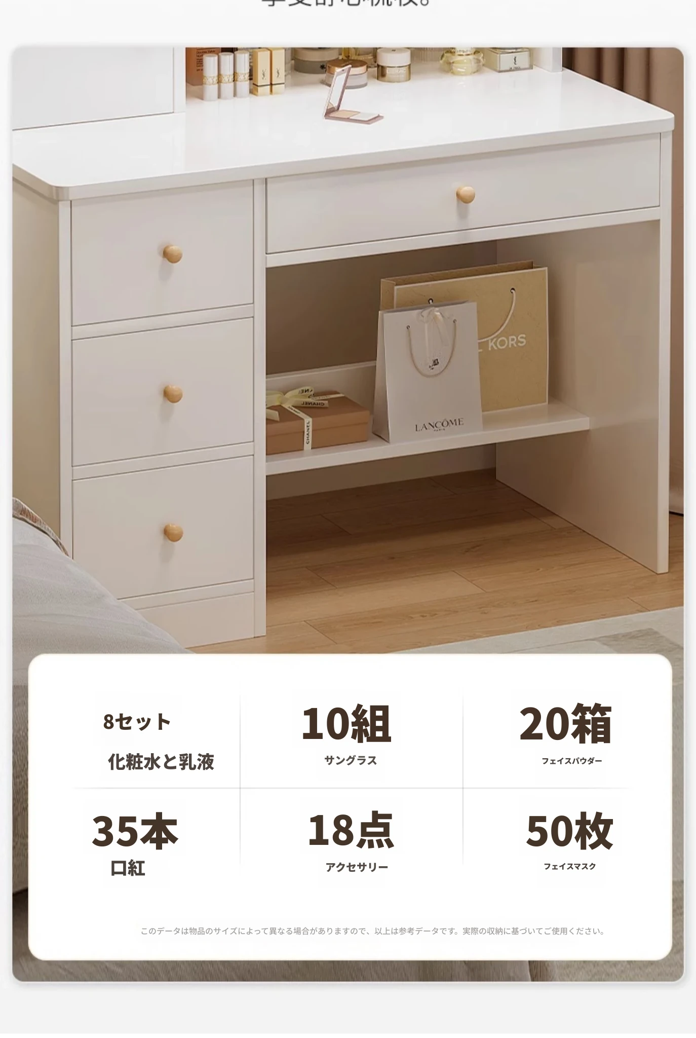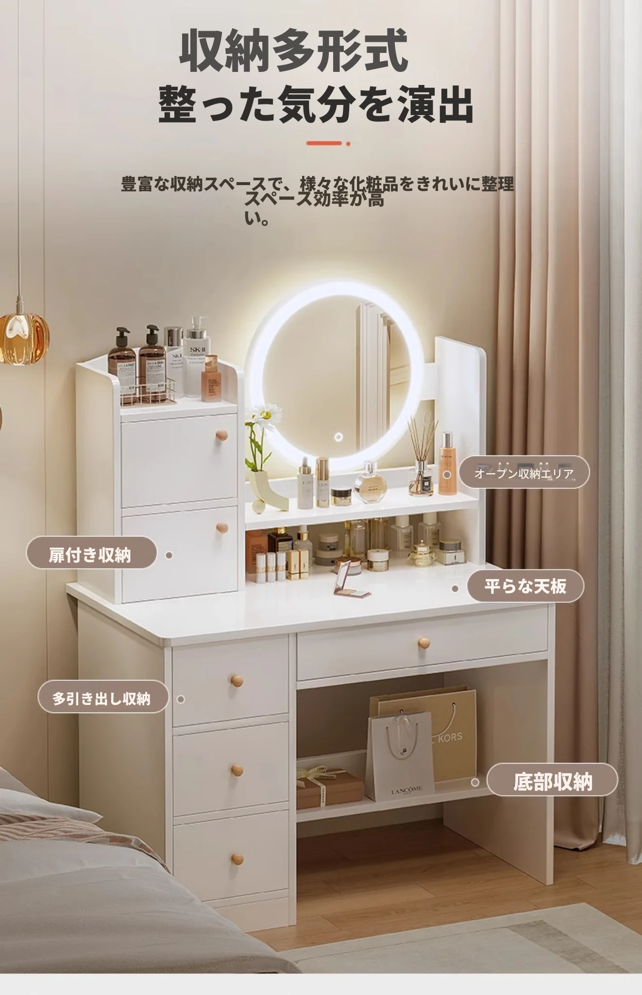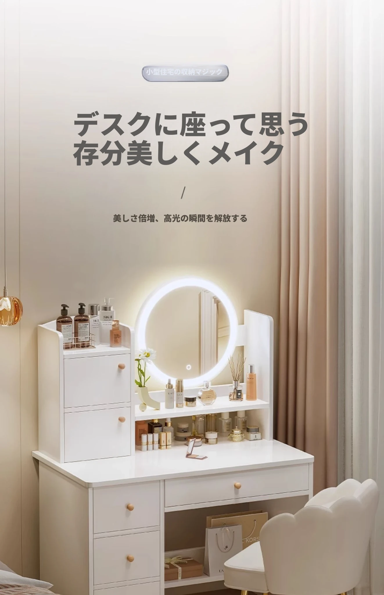 シンプルでモダンなドレッサー|化粧収納一体型キャビネット|人気のメイクアップミラー付き|主寝室にぴったりな化粧台で、毎日のメイクをもっと楽しく!