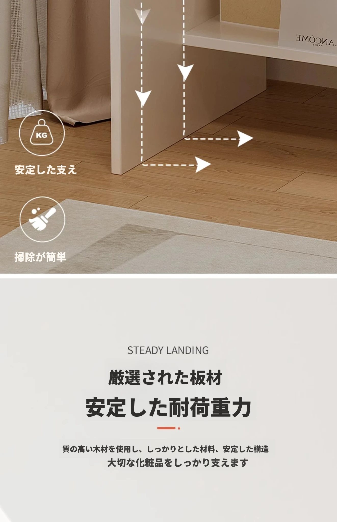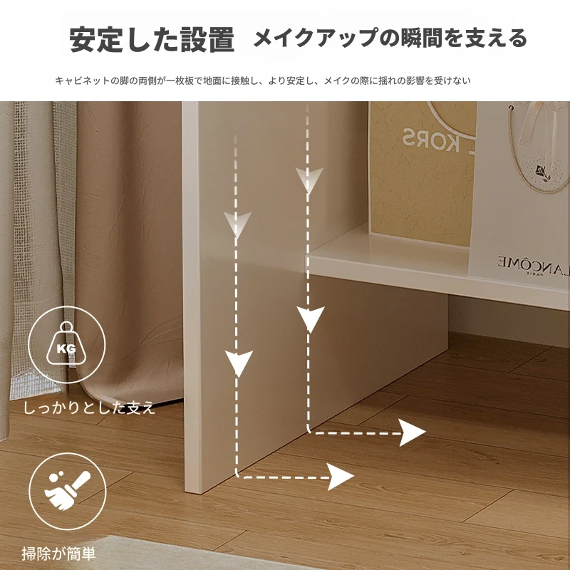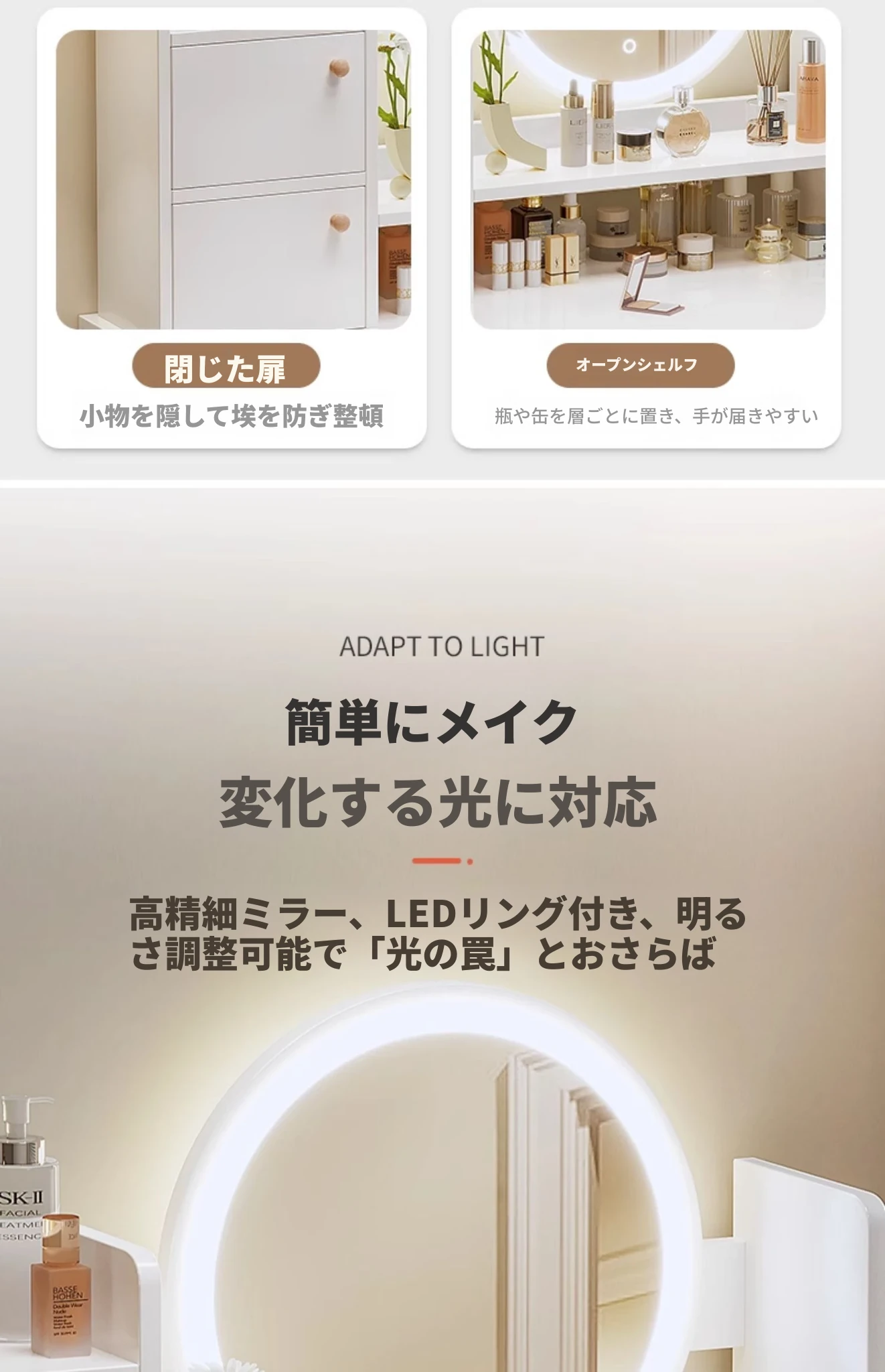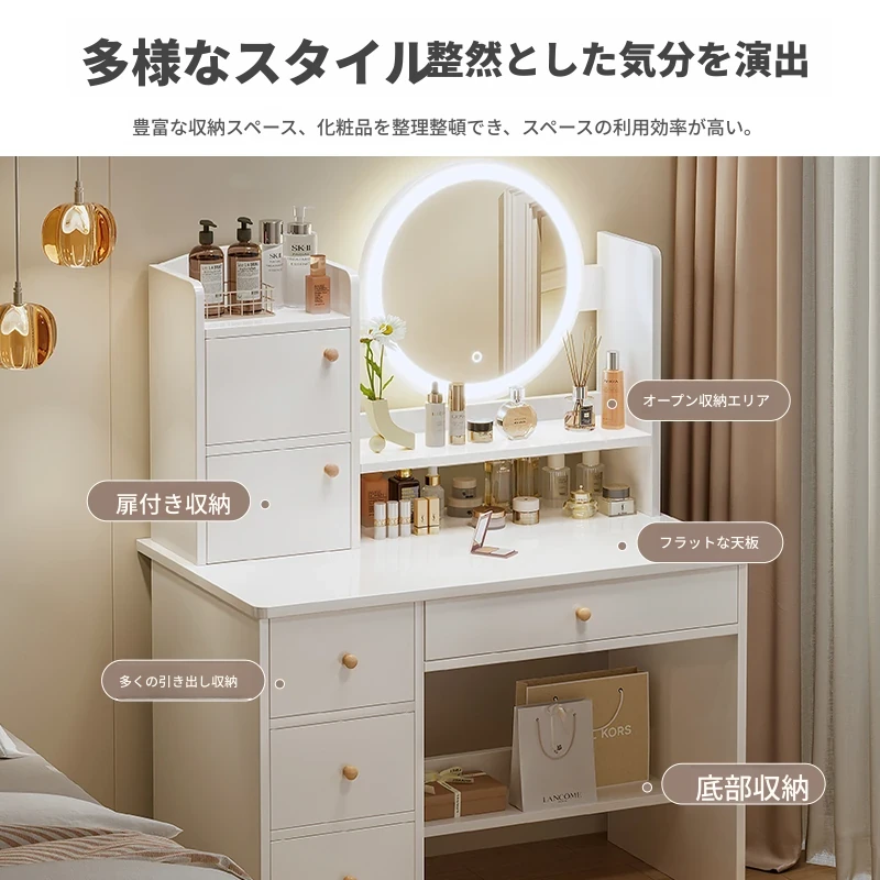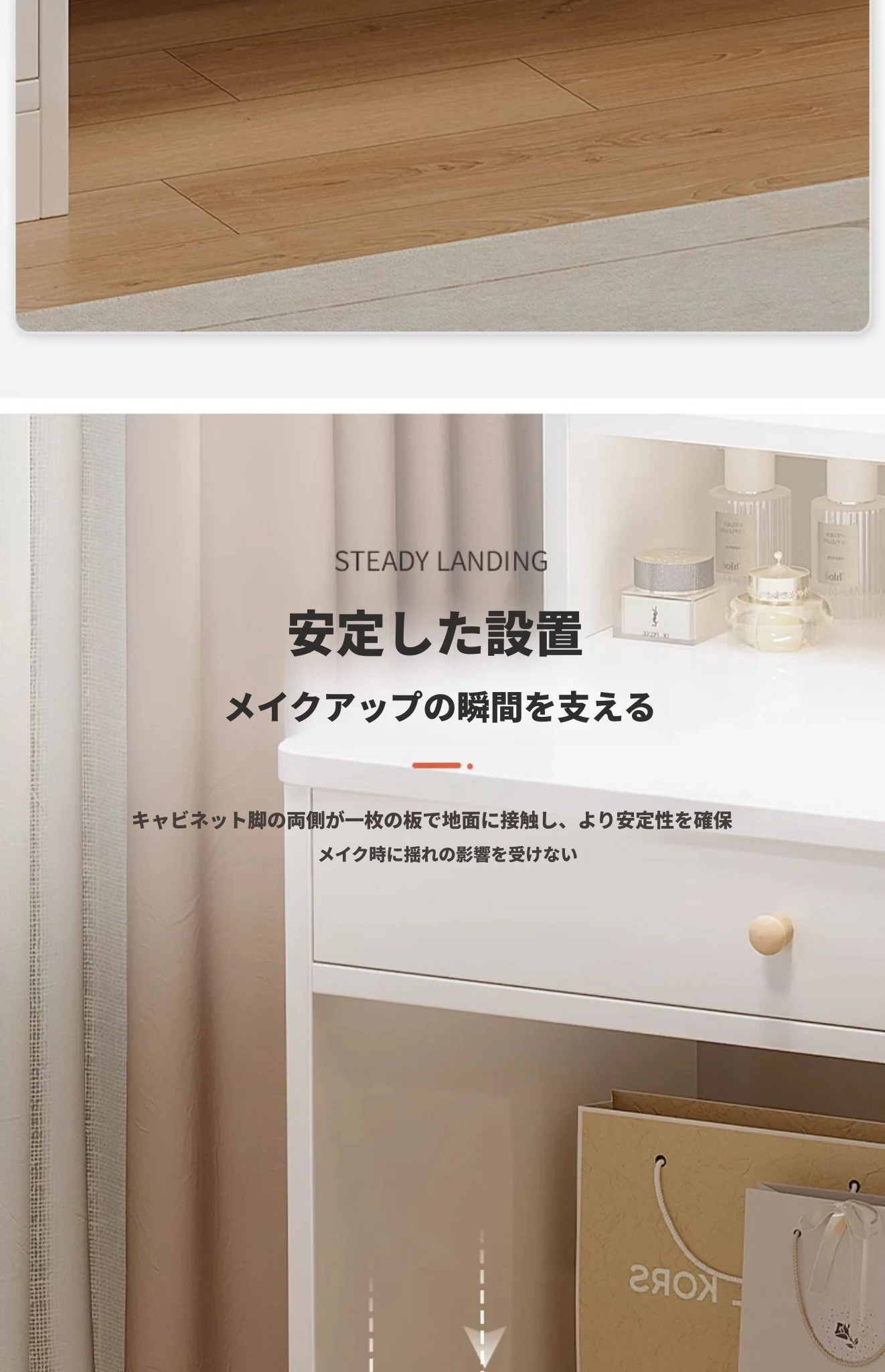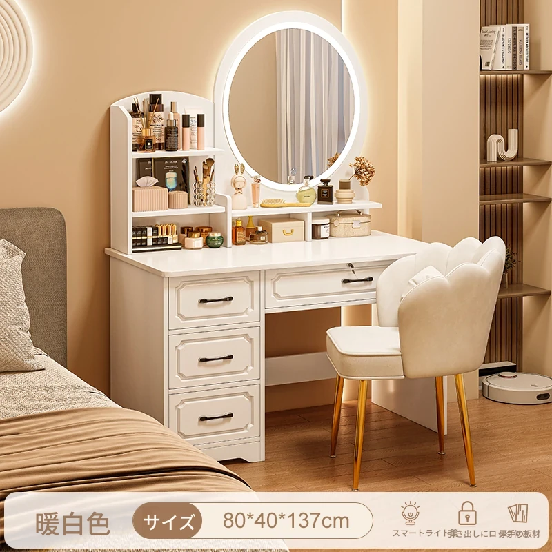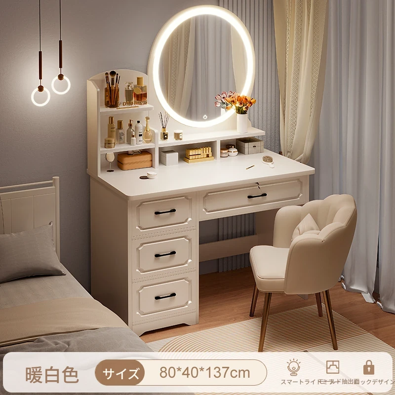 シンプルでモダンなドレッサー|化粧収納一体型キャビネット|人気のメイクアップミラー付き|主寝室にぴったりな化粧台で、毎日のメイクをもっと楽しく!