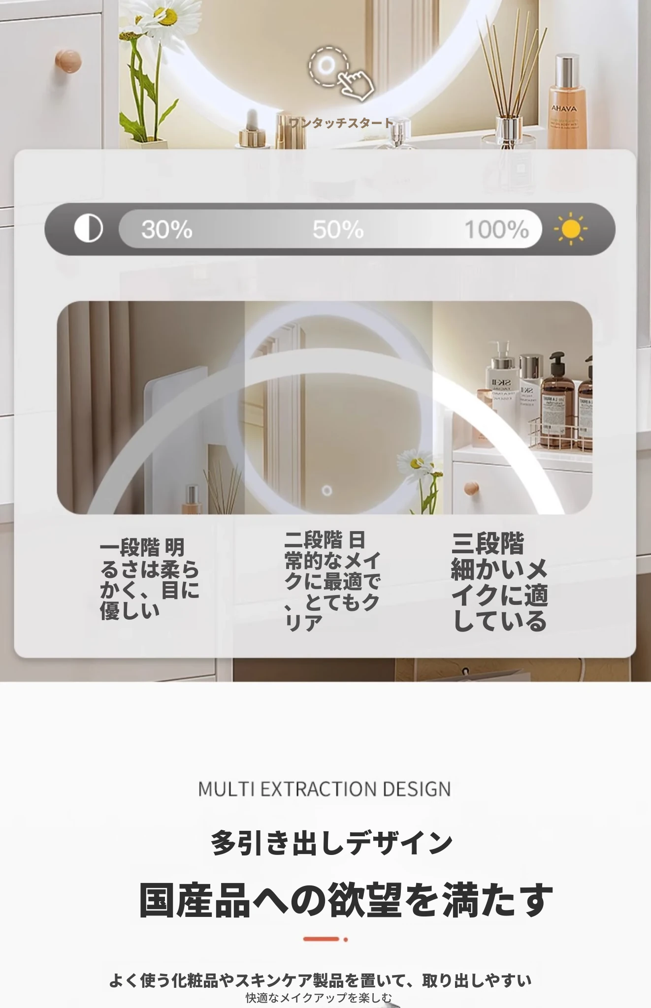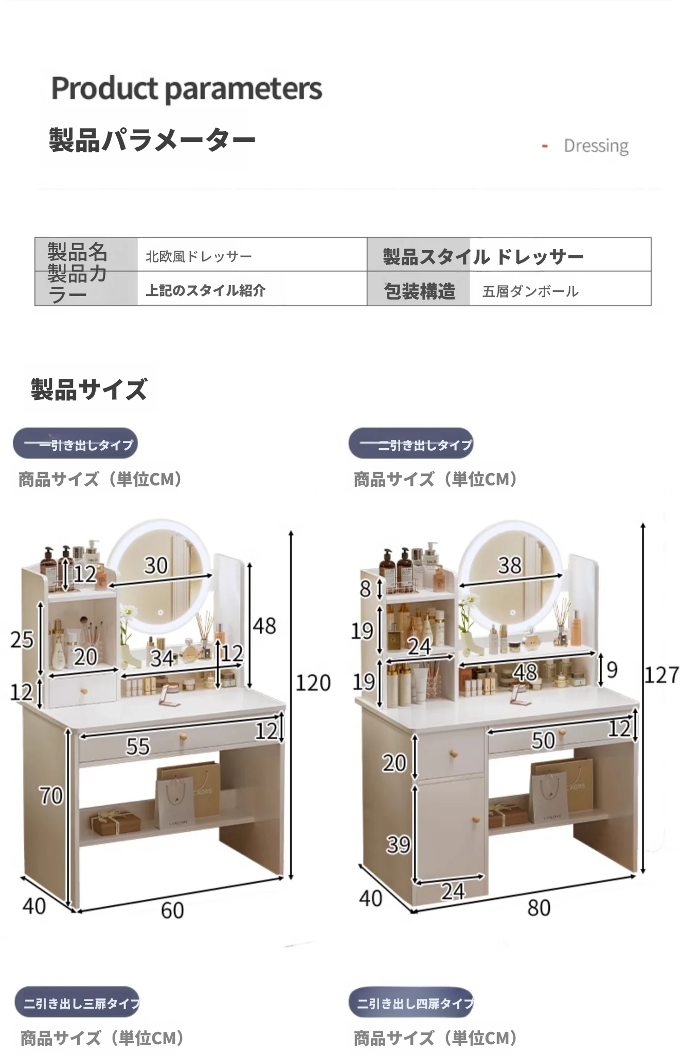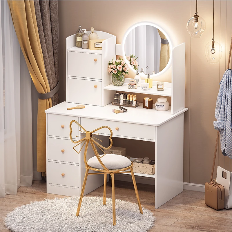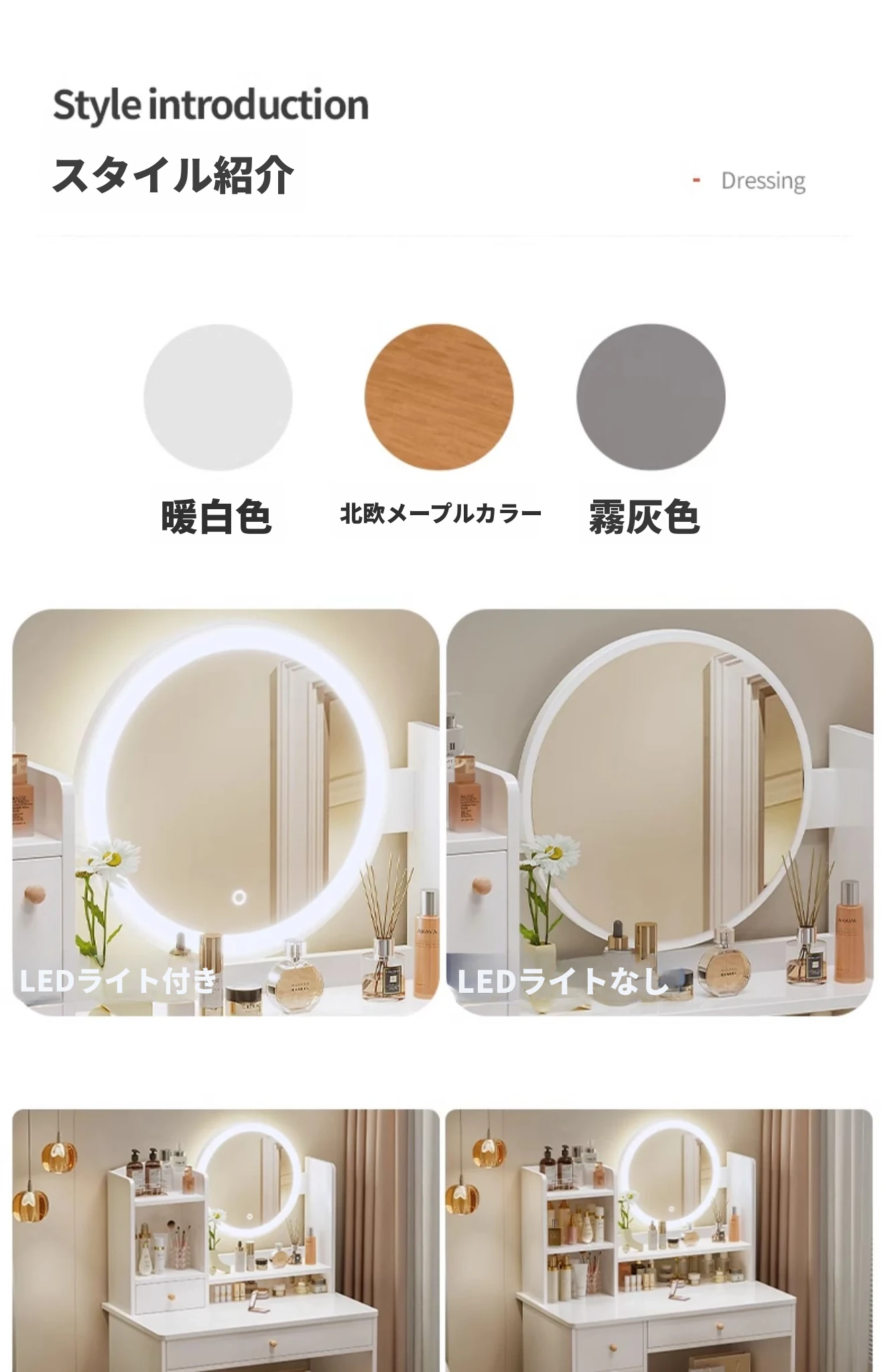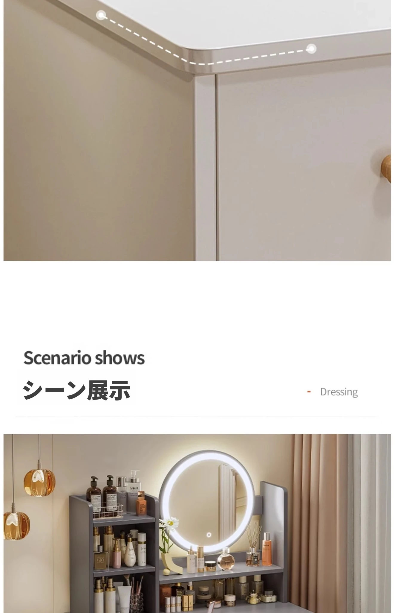 シンプルでモダンなドレッサー|化粧収納一体型キャビネット|人気のメイクアップミラー付き|主寝室にぴったりな化粧台で、毎日のメイクをもっと楽しく!