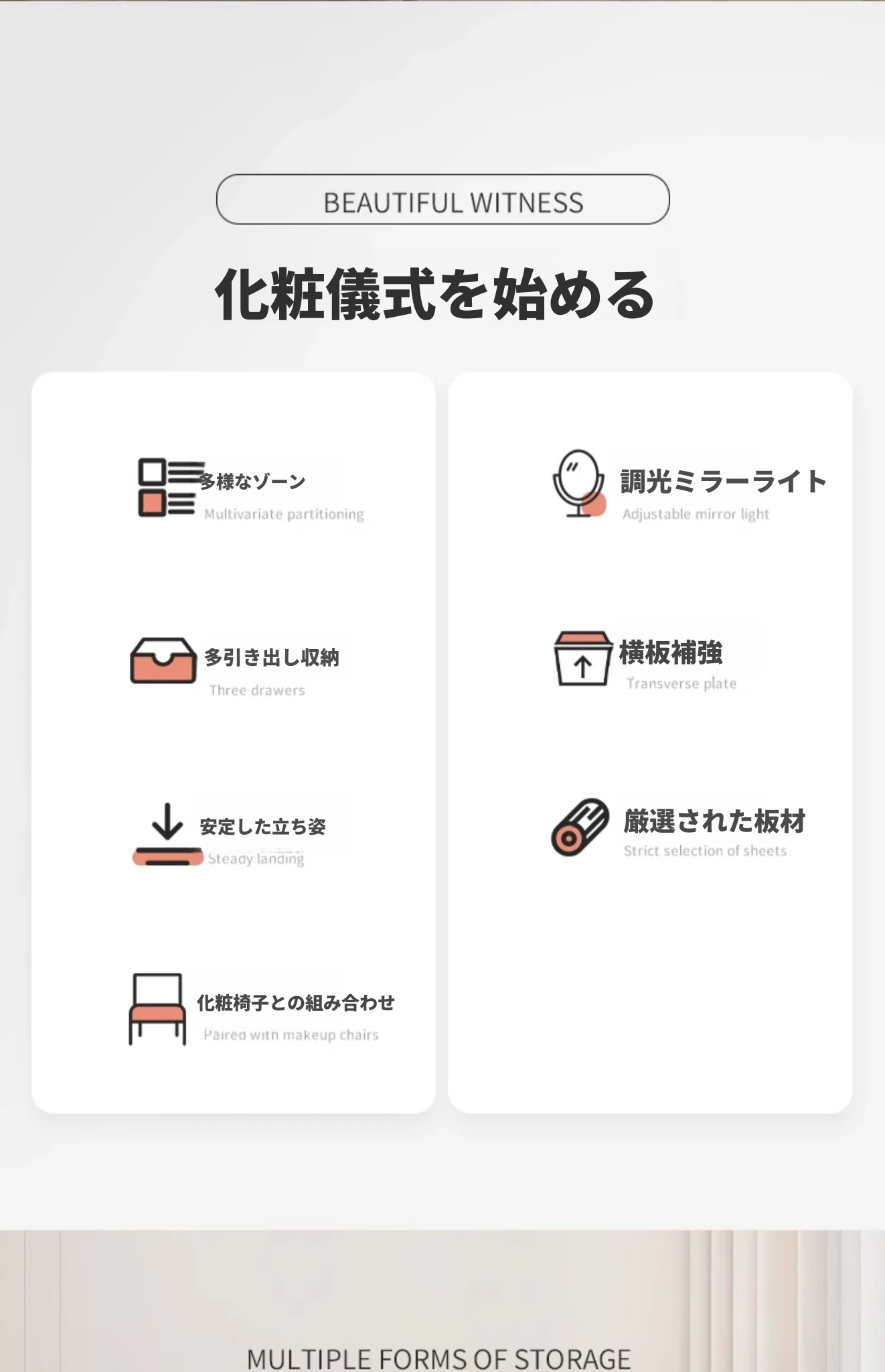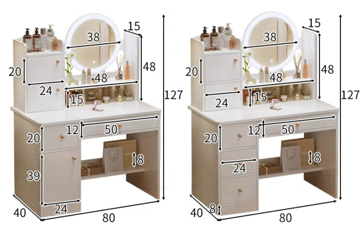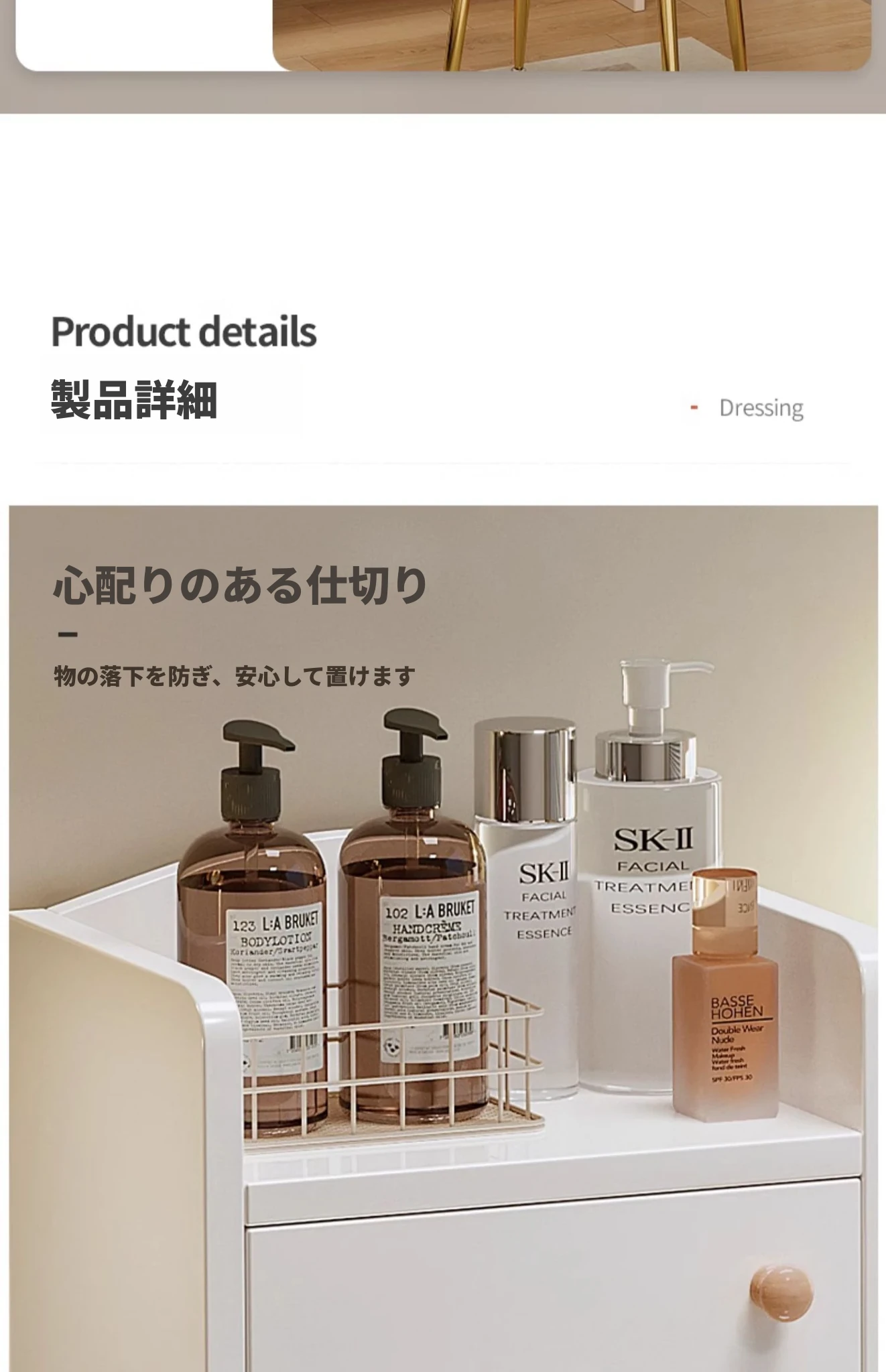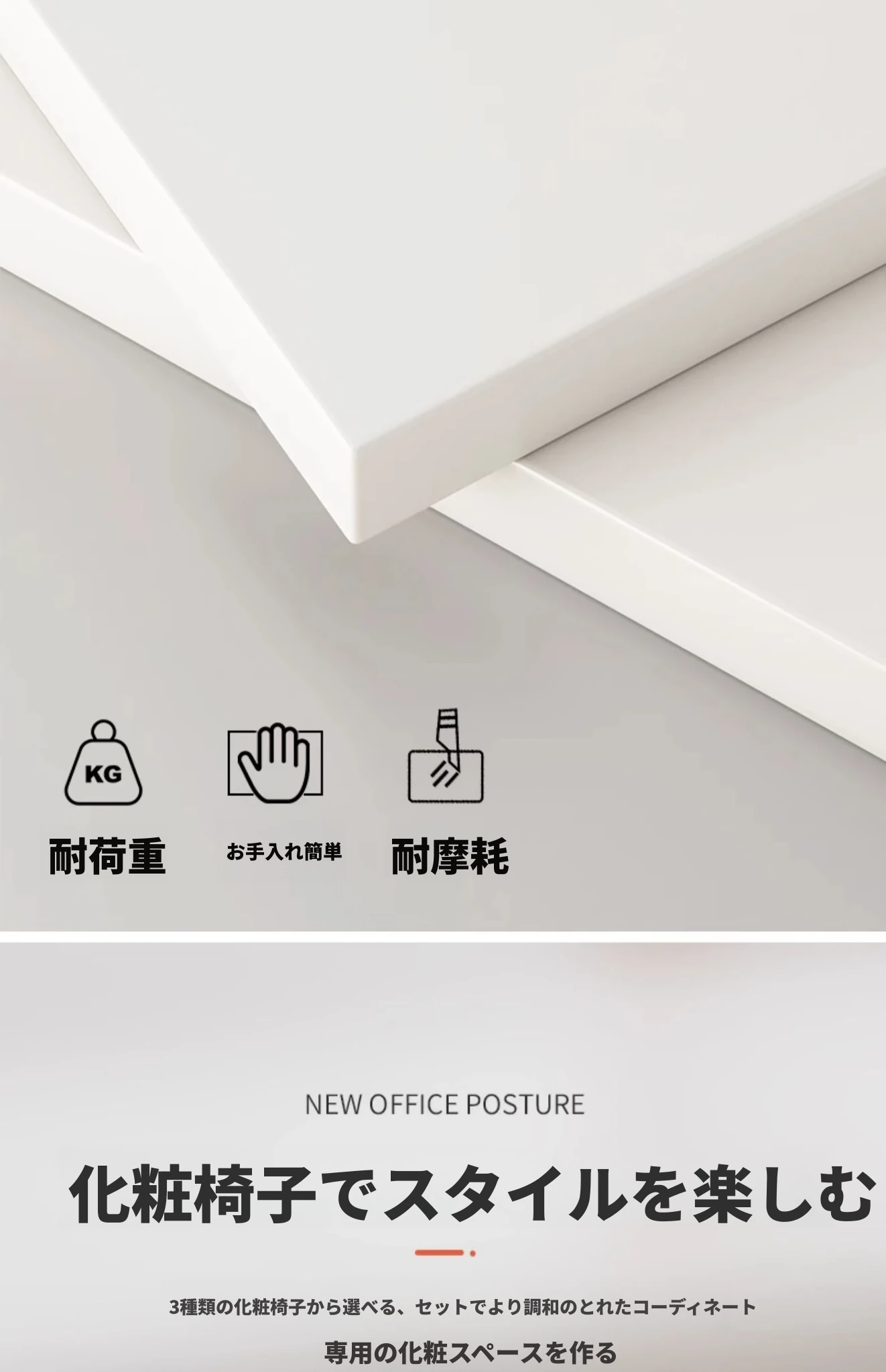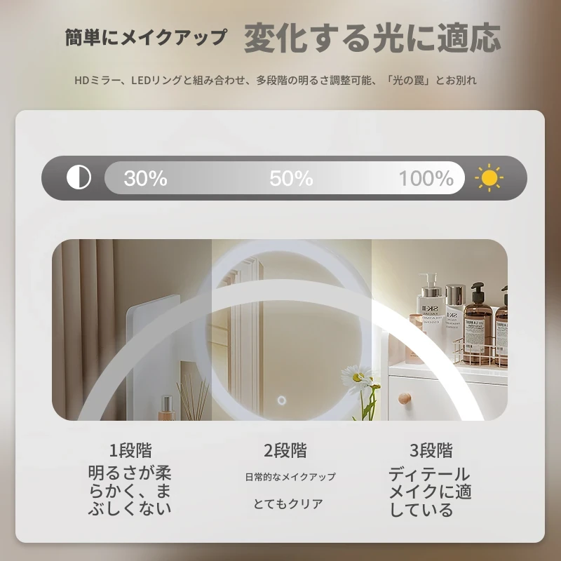 シンプルでモダンなドレッサー|化粧収納一体型キャビネット|人気のメイクアップミラー付き|主寝室にぴったりな化粧台で、毎日のメイクをもっと楽しく!