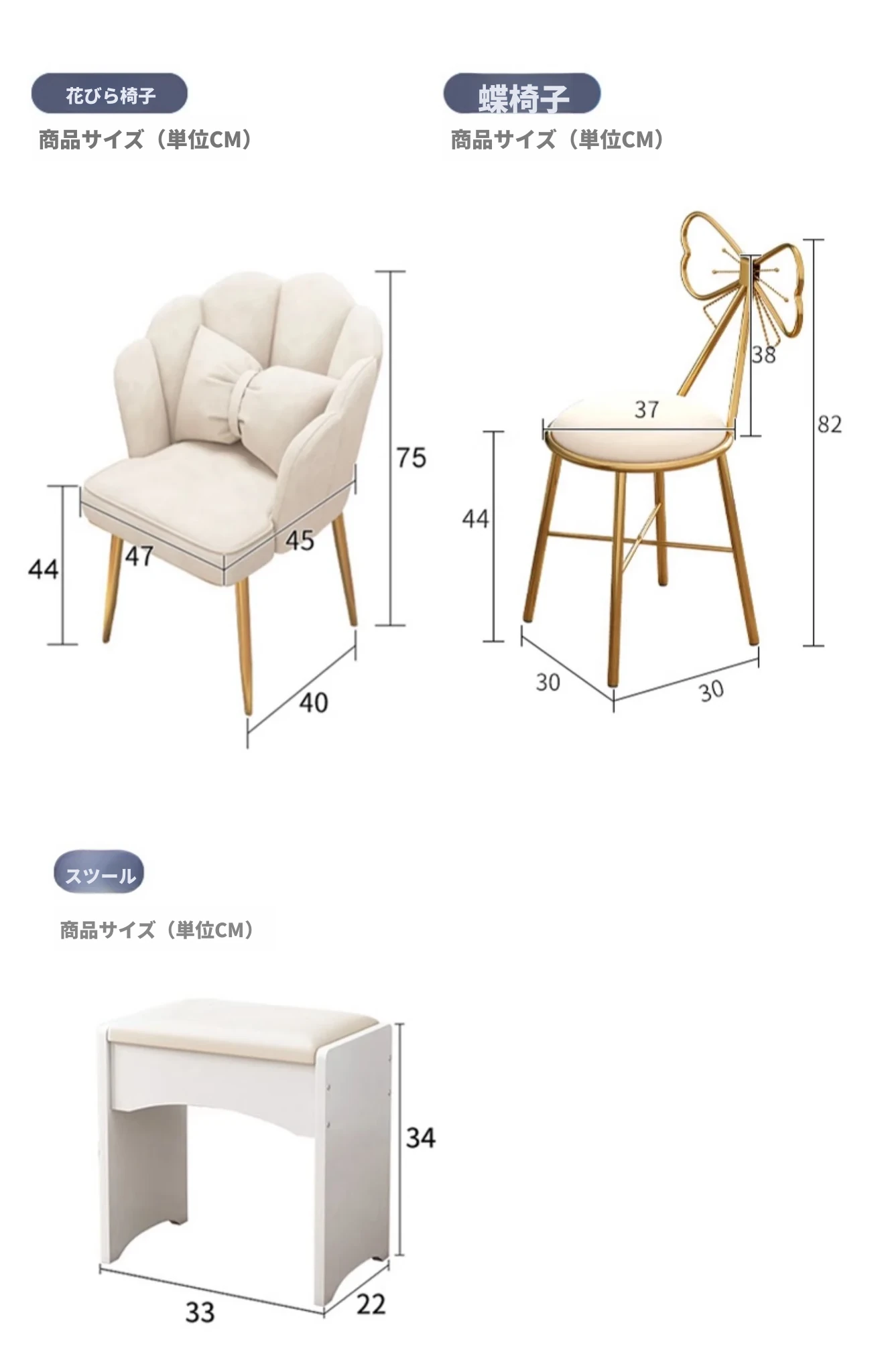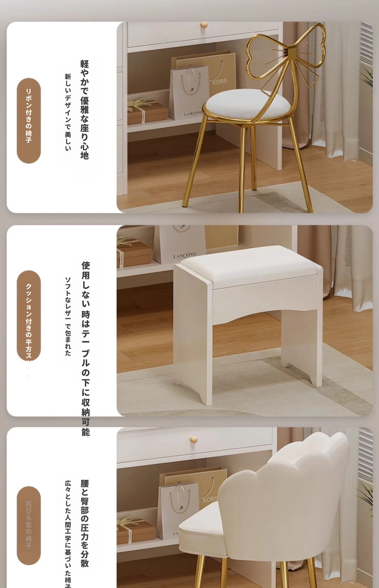 アップグレードヨーロピアンスタイル❤LEDライト【モールド4引き出し+花びら椅子】80cm●