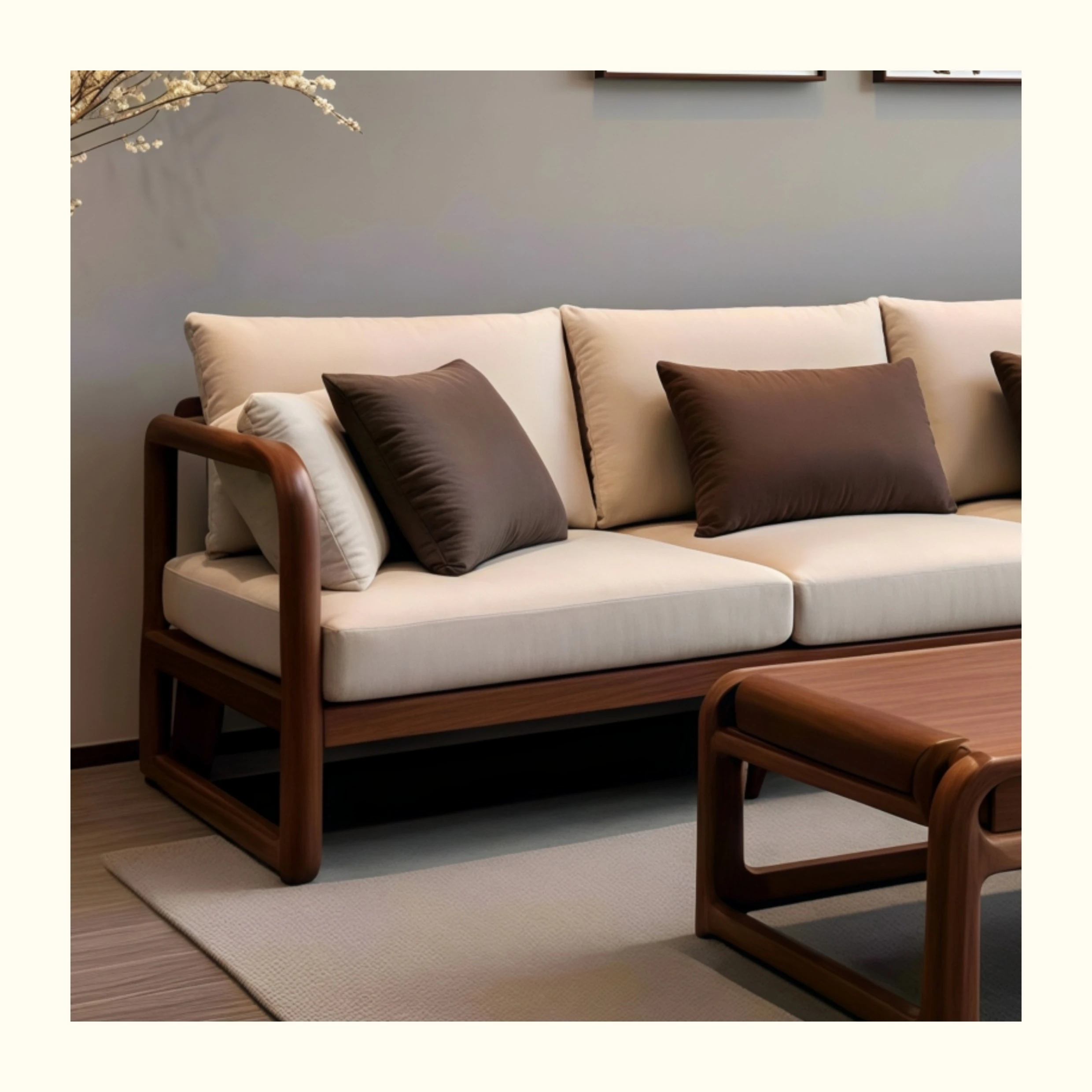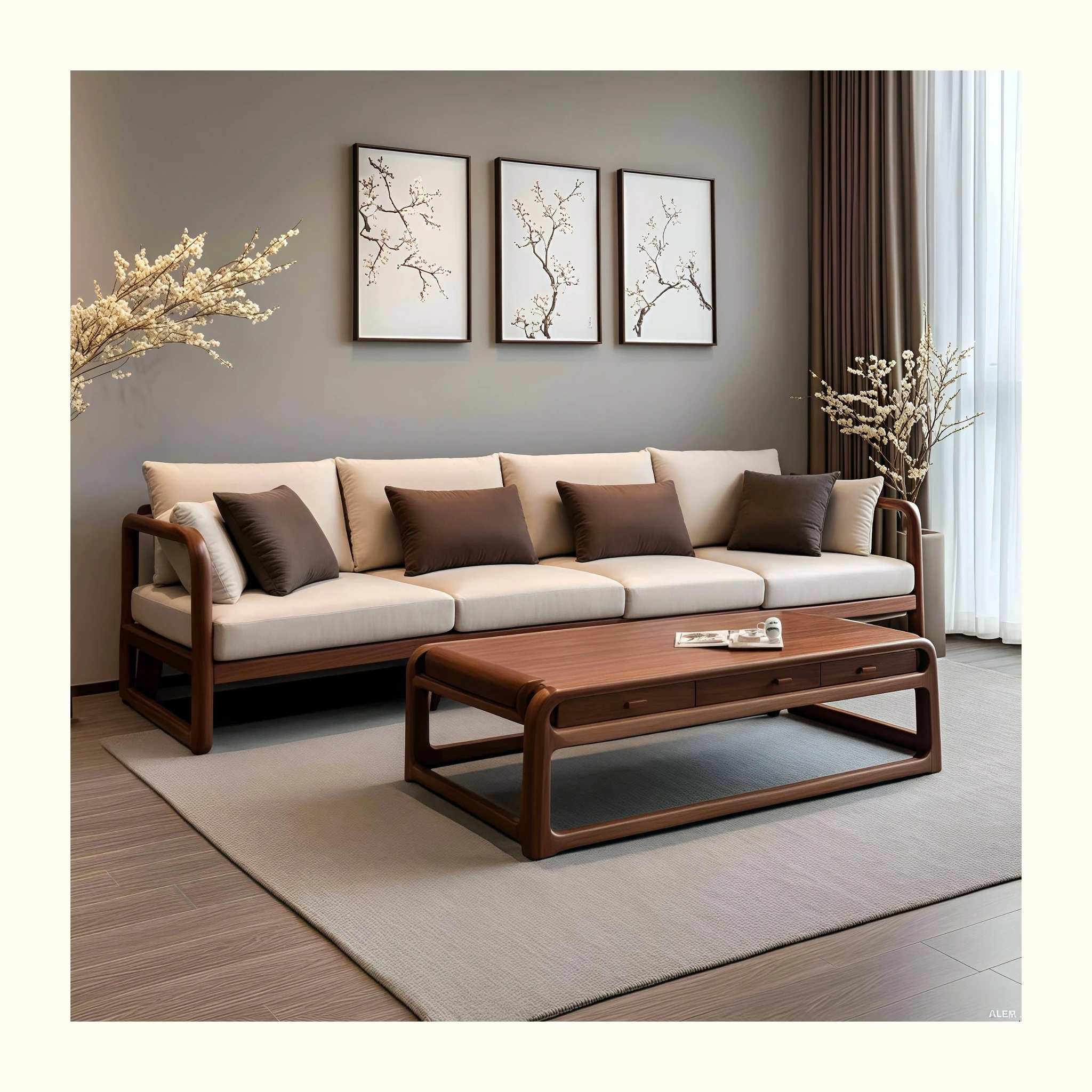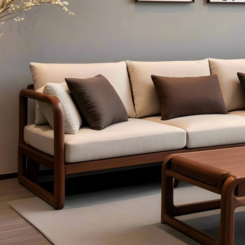 新中式スタイルの無垢材禅風ソファ | モダンでシンプルなデザイン | 北米産ブラックウォールナット使用 | 小型スペースに最適 | 冬夏両用の直置きソファ | 快適な座り心地で心安らぐ空間を演出!