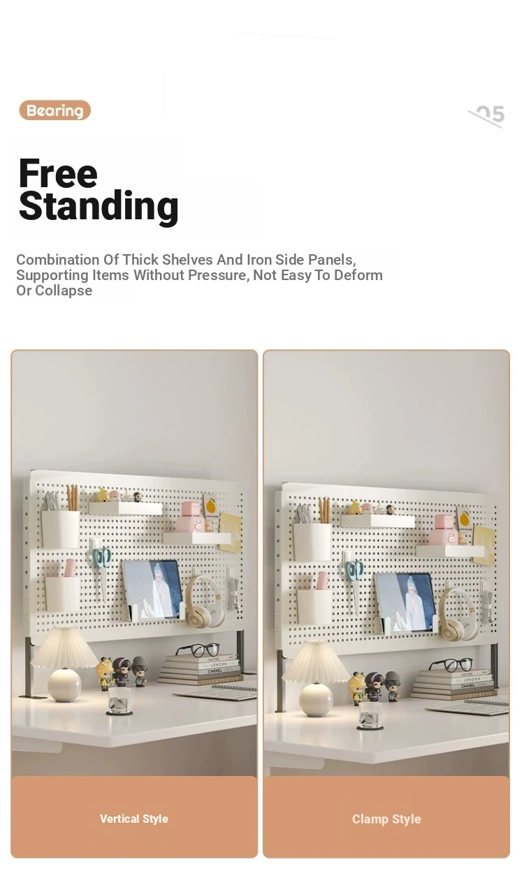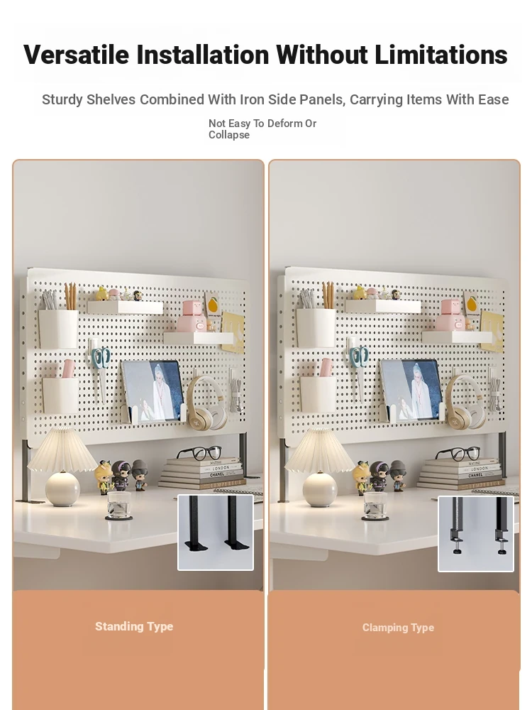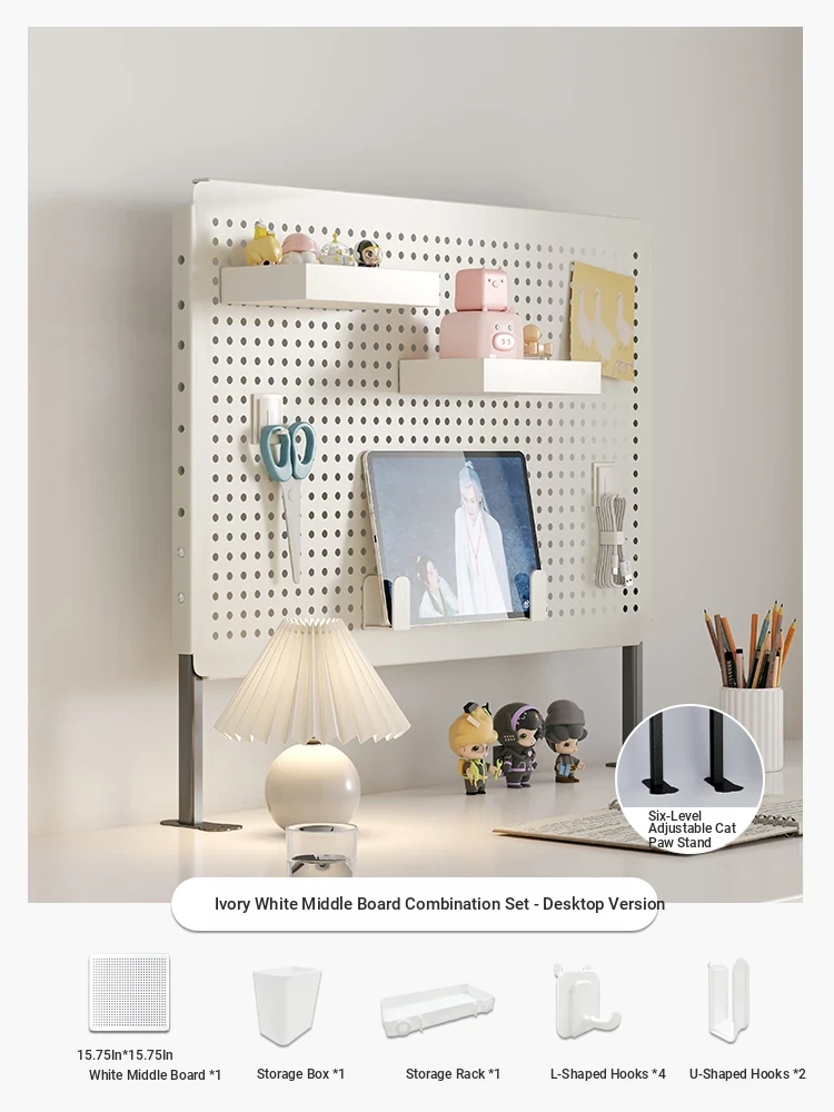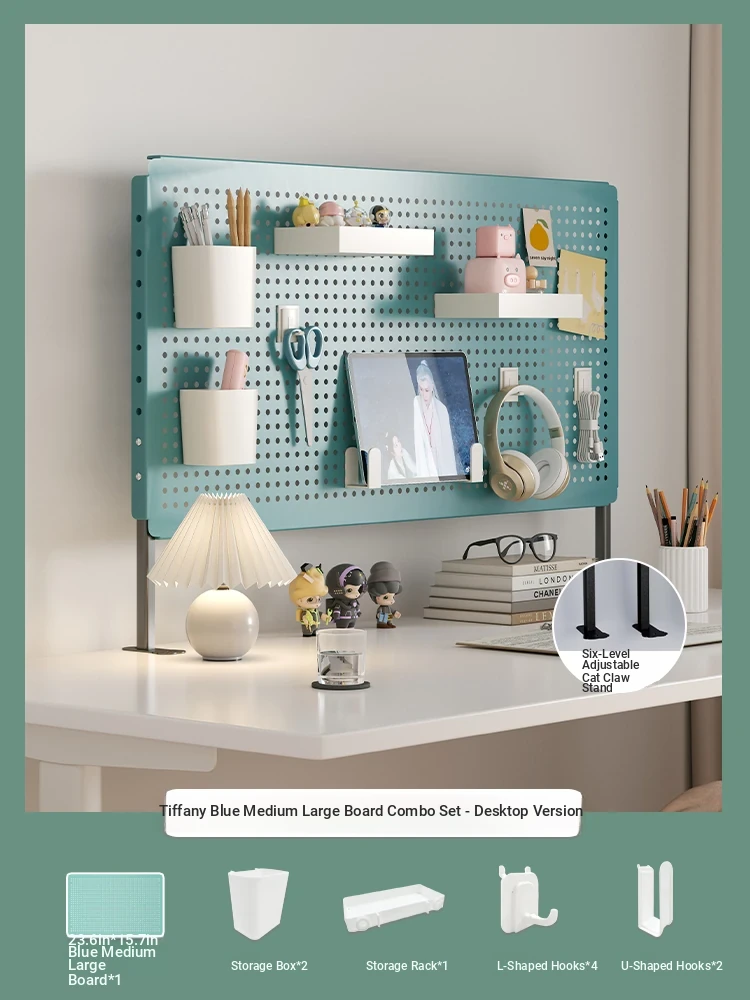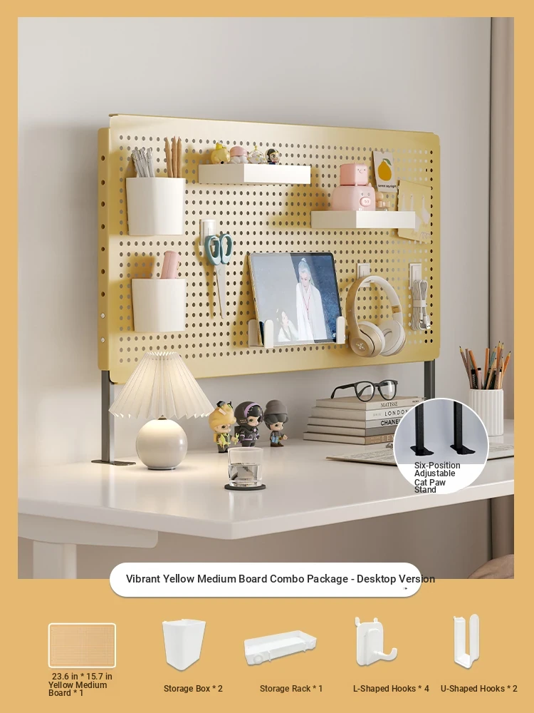Multifunctional Desktop Organizer - Iron Art Vertical Multi-Layer Storage Rack with Pegboard for Study Desk, Office, and Dorm Room - Perfect for Decorative and Functional Use