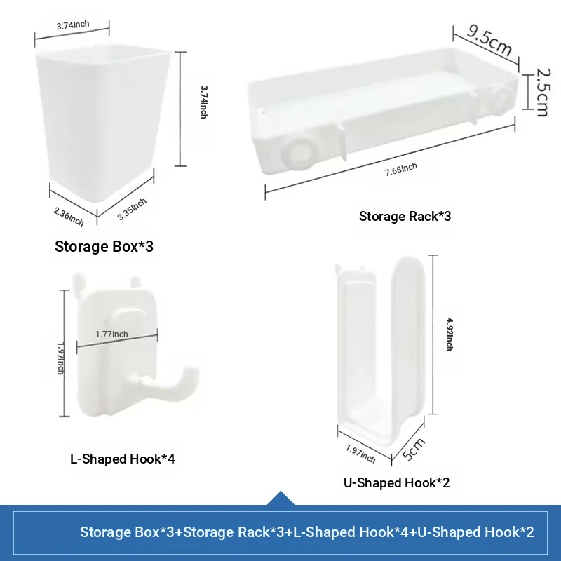 [Accessories-White Set 3] Storage Box*3+Storage Rack*3+L-Shaped Hook*4+U-Shaped Hook*2