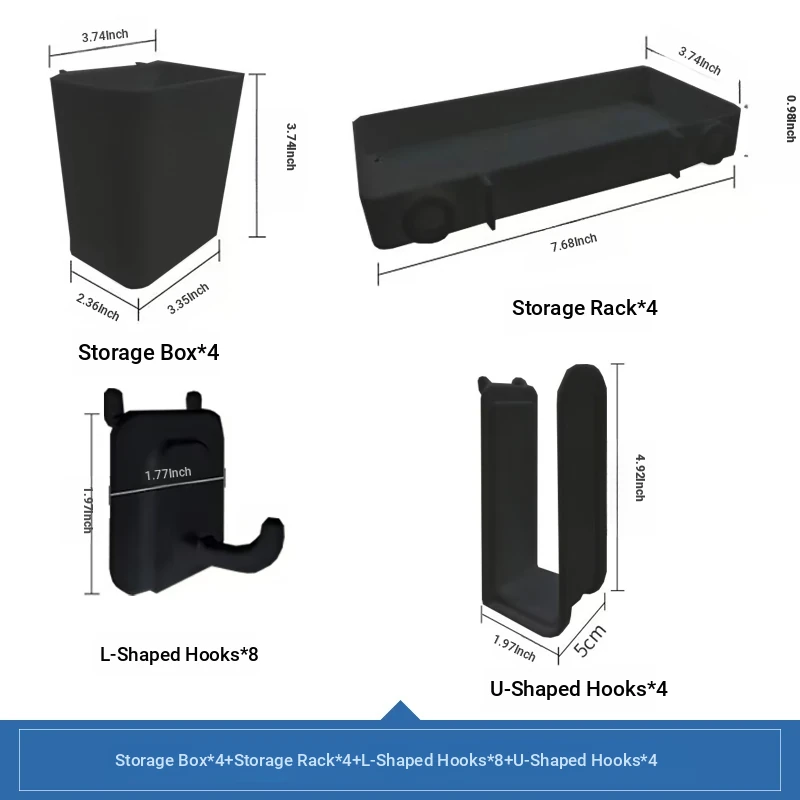 [Accessories-Black Set 4] Storage Box*4+Storage Rack*4+L-Shaped Hook*8+U-Shaped Hook*4