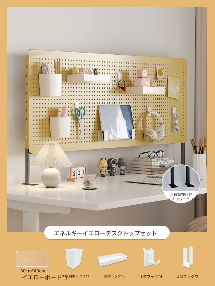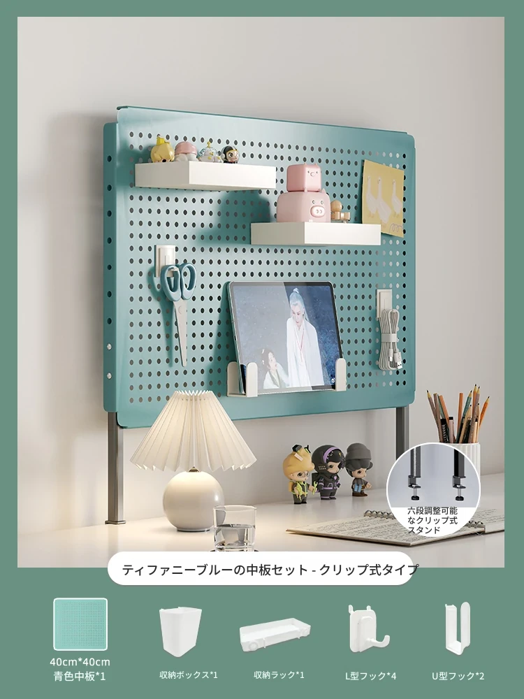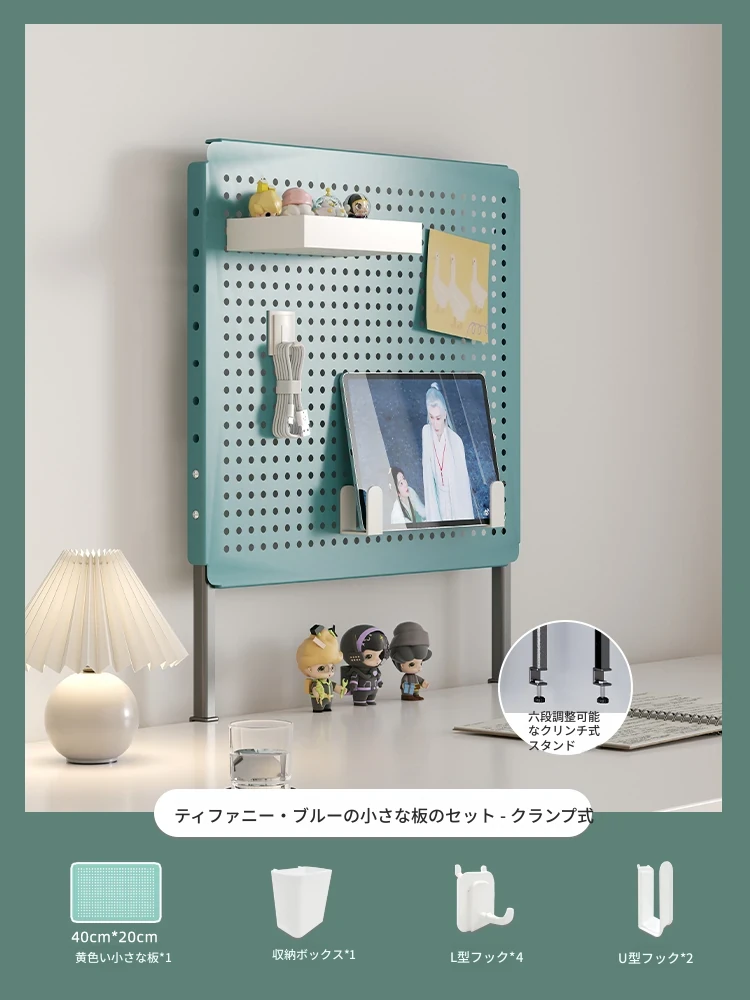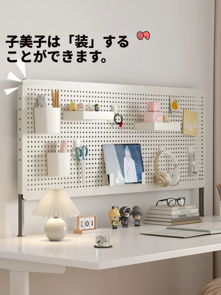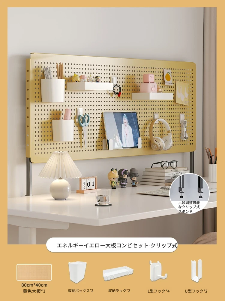 デスク上のアイアン製多層収納ラック - スタイリッシュな学習デスク用ホールボード、オフィスや寮に最適な装飾&整理整頓アイテム!