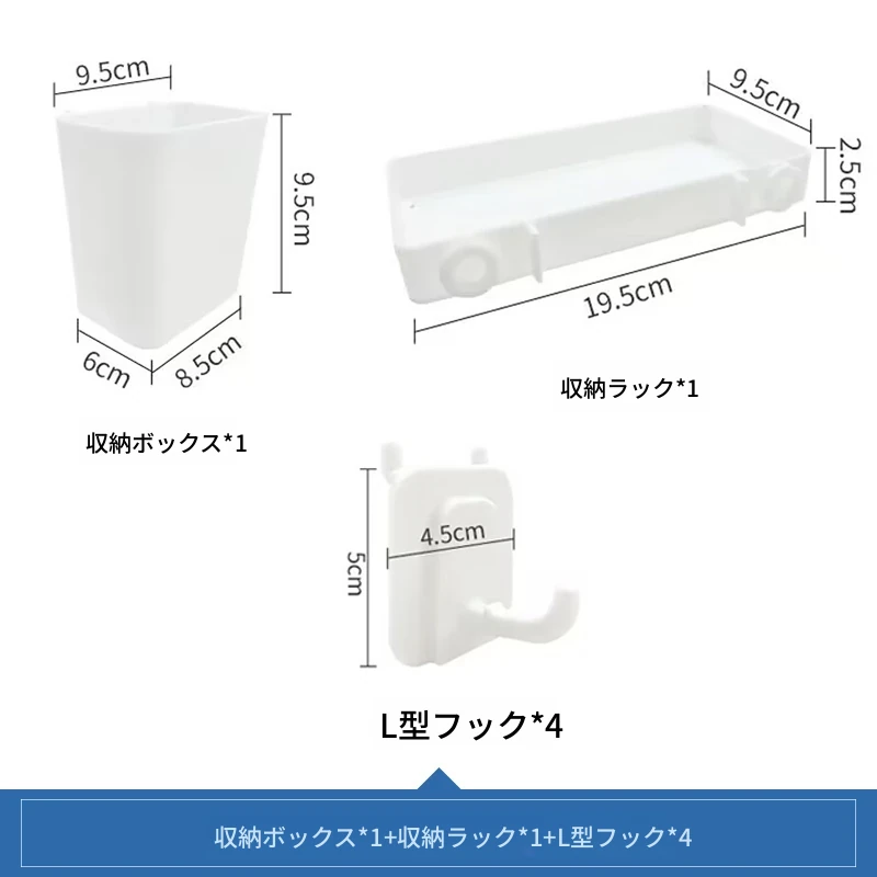 【アクセサリー-白色セット1】収納ボックス*1+収納ラック*1+L型フック*4
