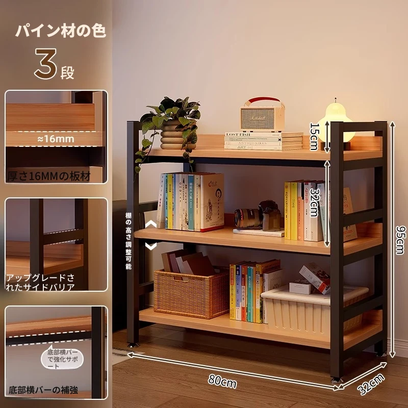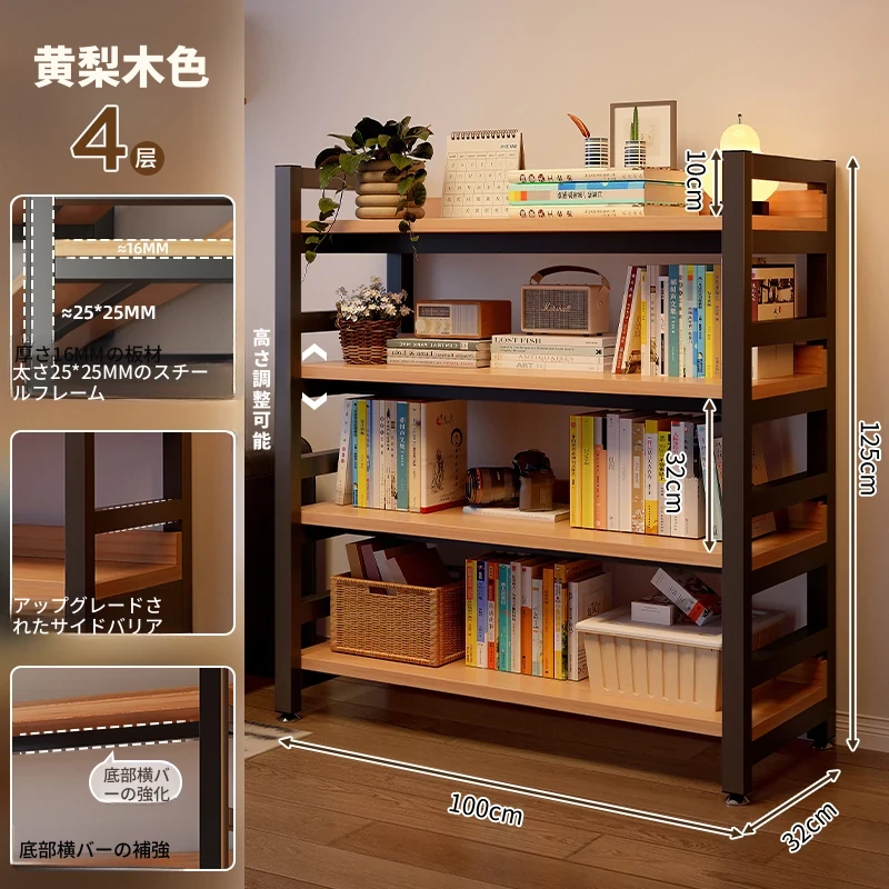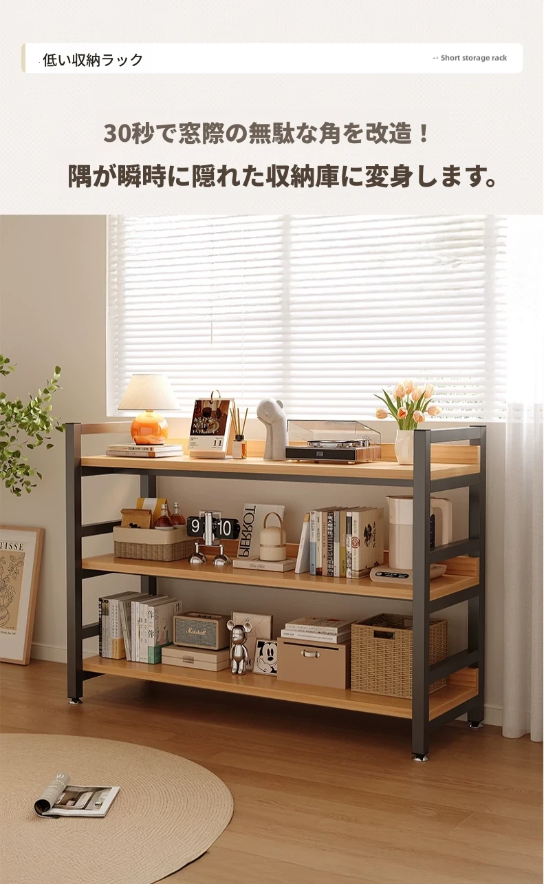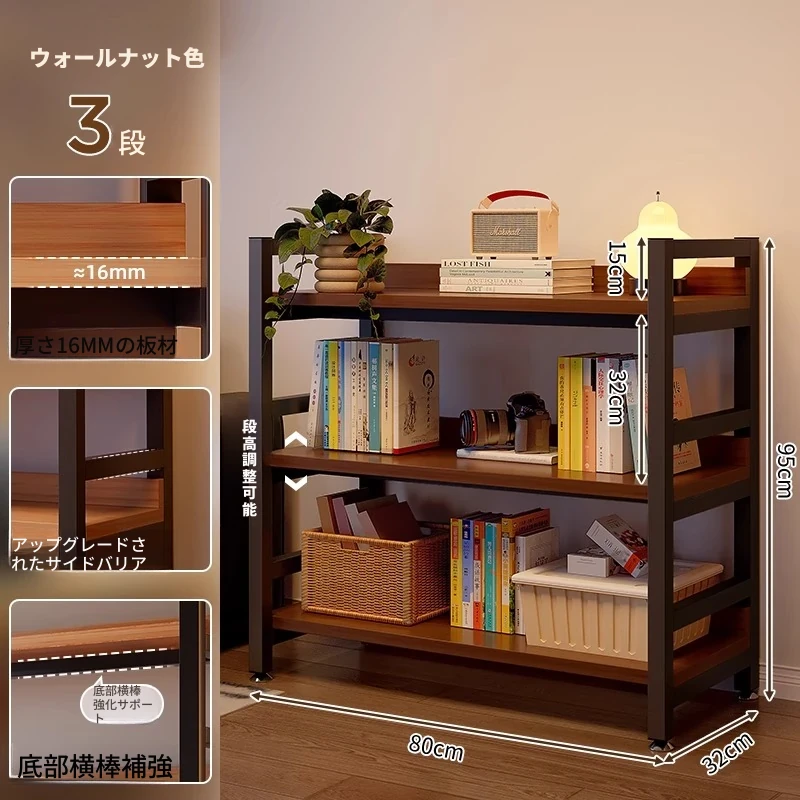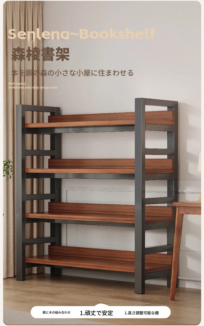 壁にぴったりのスタイリッシュなフロアシェルフ!家庭用の多機能低い書棚、デスクサイドに最適なスチールウッド構造。多層収納で整理整頓も簡単!シンプルなデザインでお部屋をスッキリ魅力的に演出します。