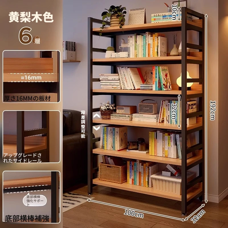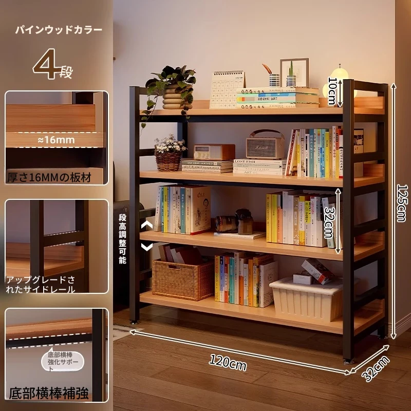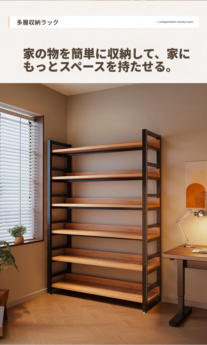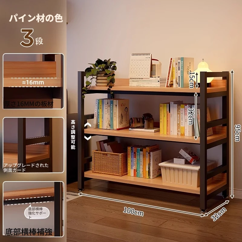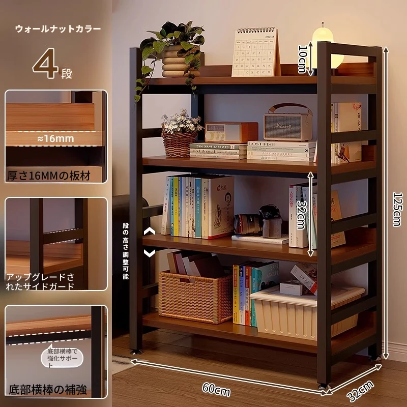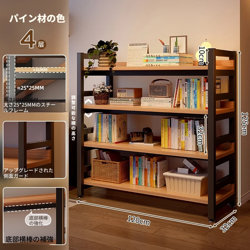 壁にぴったりのスタイリッシュなフロアシェルフ!家庭用の多機能低い書棚、デスクサイドに最適なスチールウッド構造。多層収納で整理整頓も簡単!シンプルなデザインでお部屋をスッキリ魅力的に演出します。