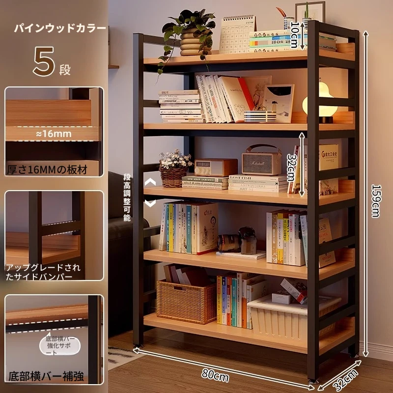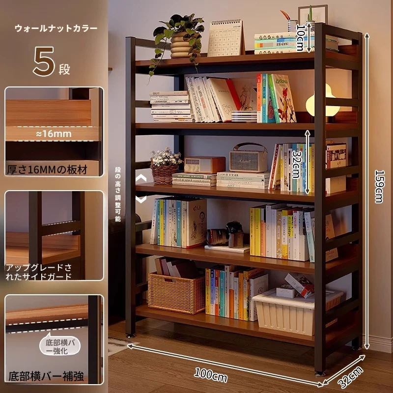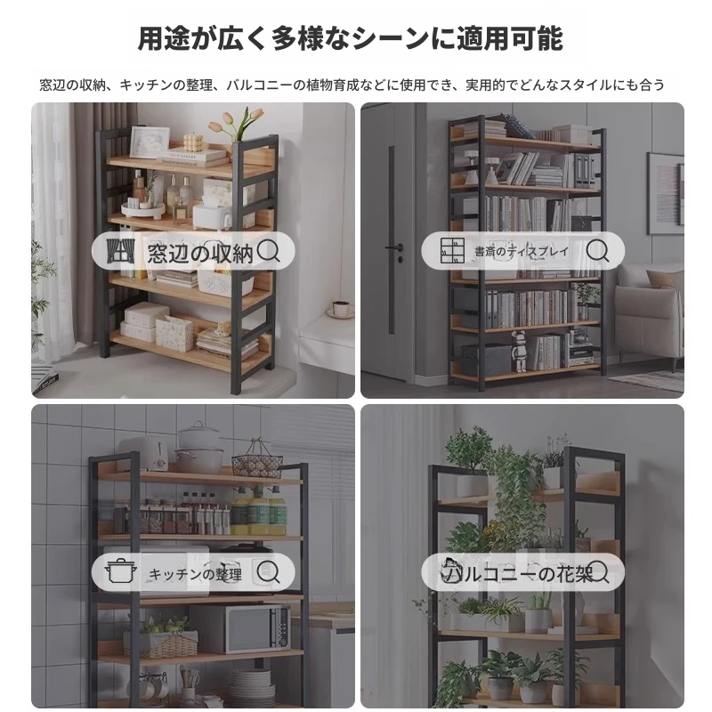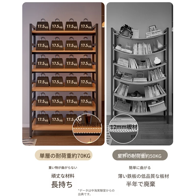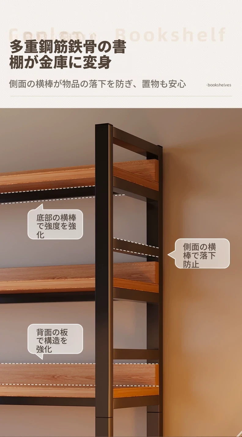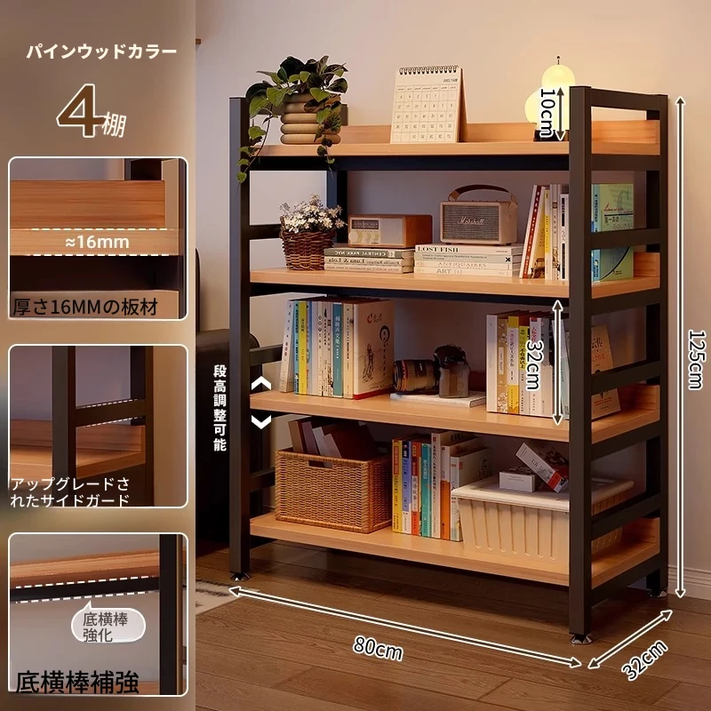 壁にぴったりのスタイリッシュなフロアシェルフ!家庭用の多機能低い書棚、デスクサイドに最適なスチールウッド構造。多層収納で整理整頓も簡単!シンプルなデザインでお部屋をスッキリ魅力的に演出します。