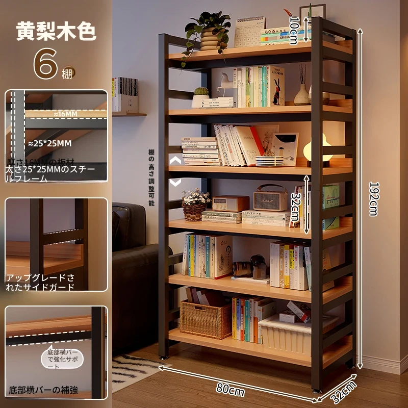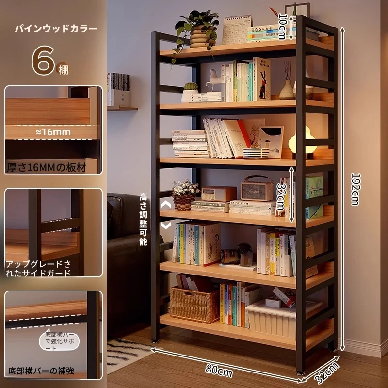 【送料無料】パイン材色六段【長さ80*幅32*高さ192】太径25管 階高調整可