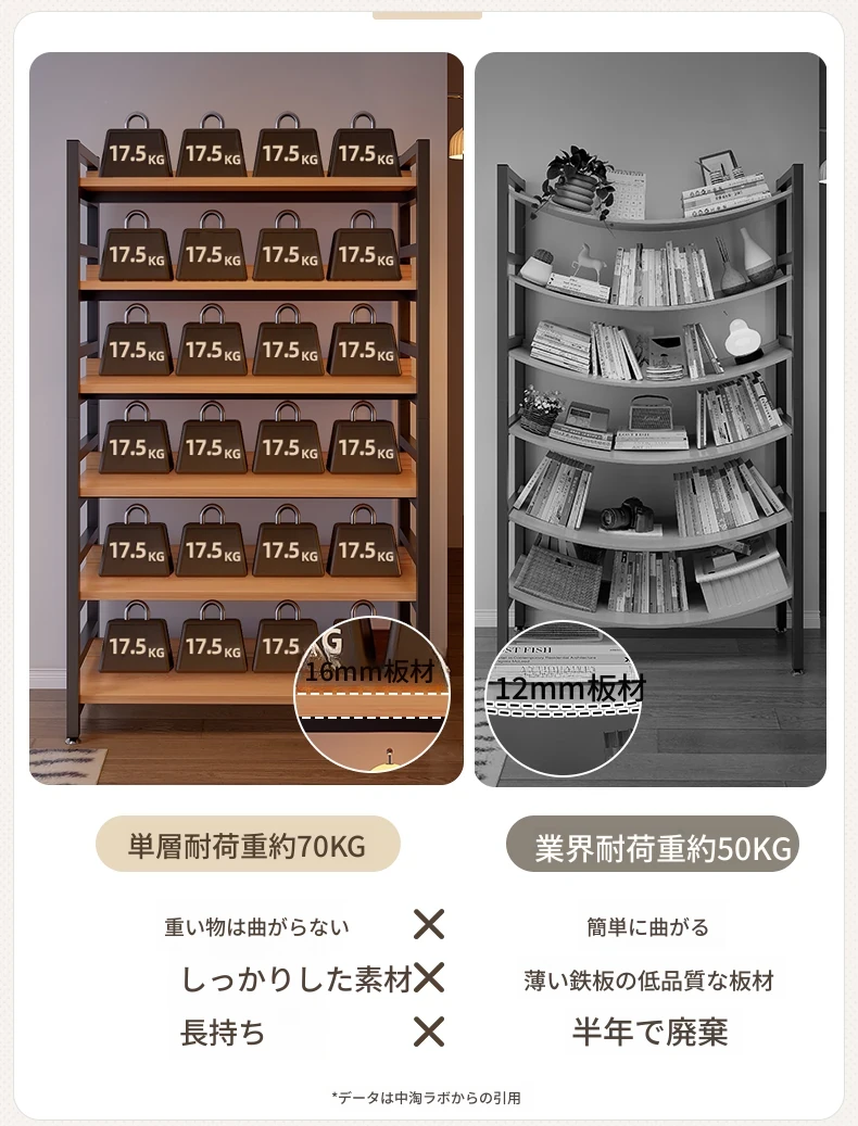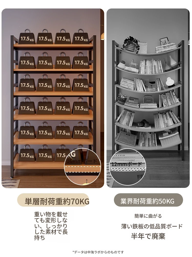 【全新アップグレード16MM板材+底部太径横棒】【単層耐荷重40kg】