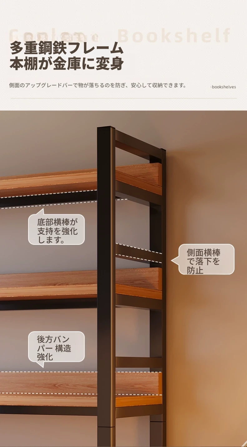 【落下防止 アップグレード側板+背板】【階高調整可 大型物品を収納可】
