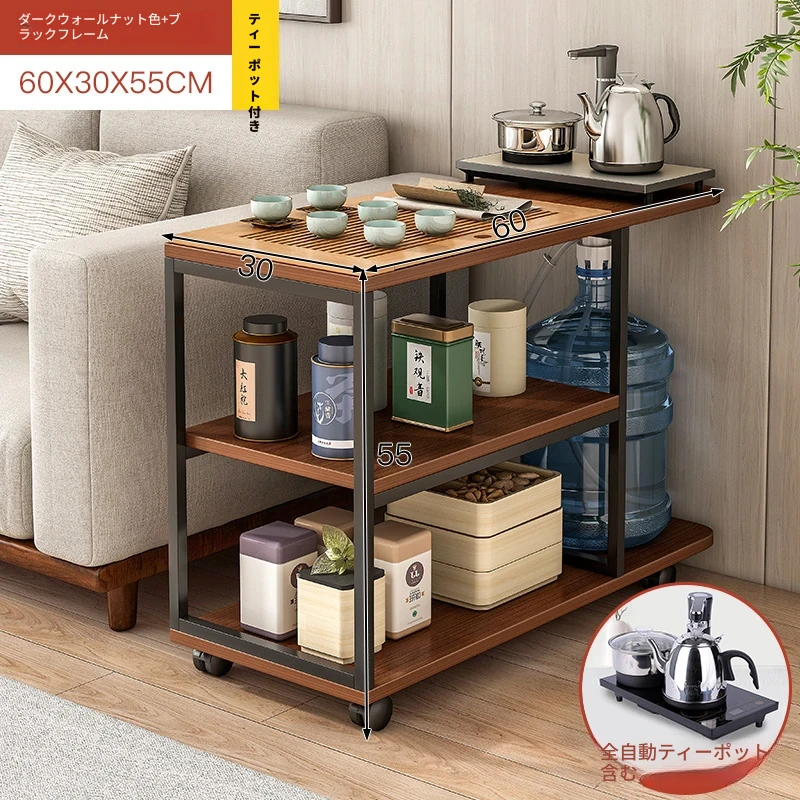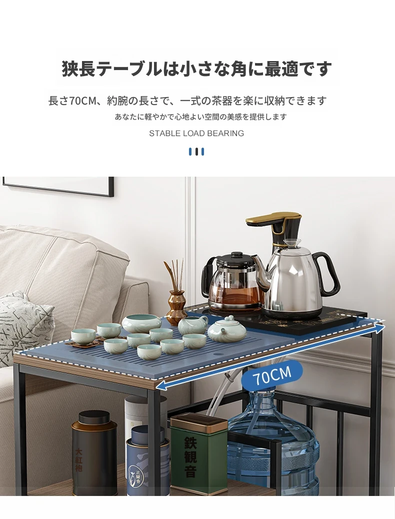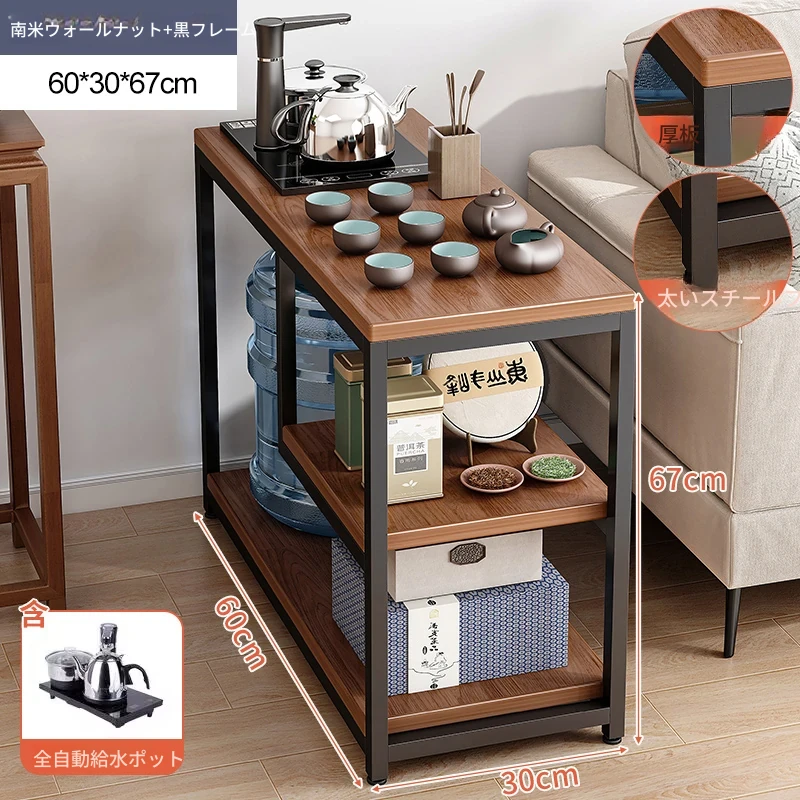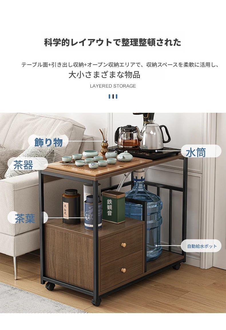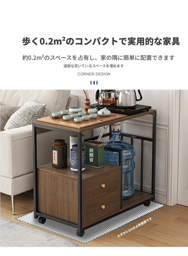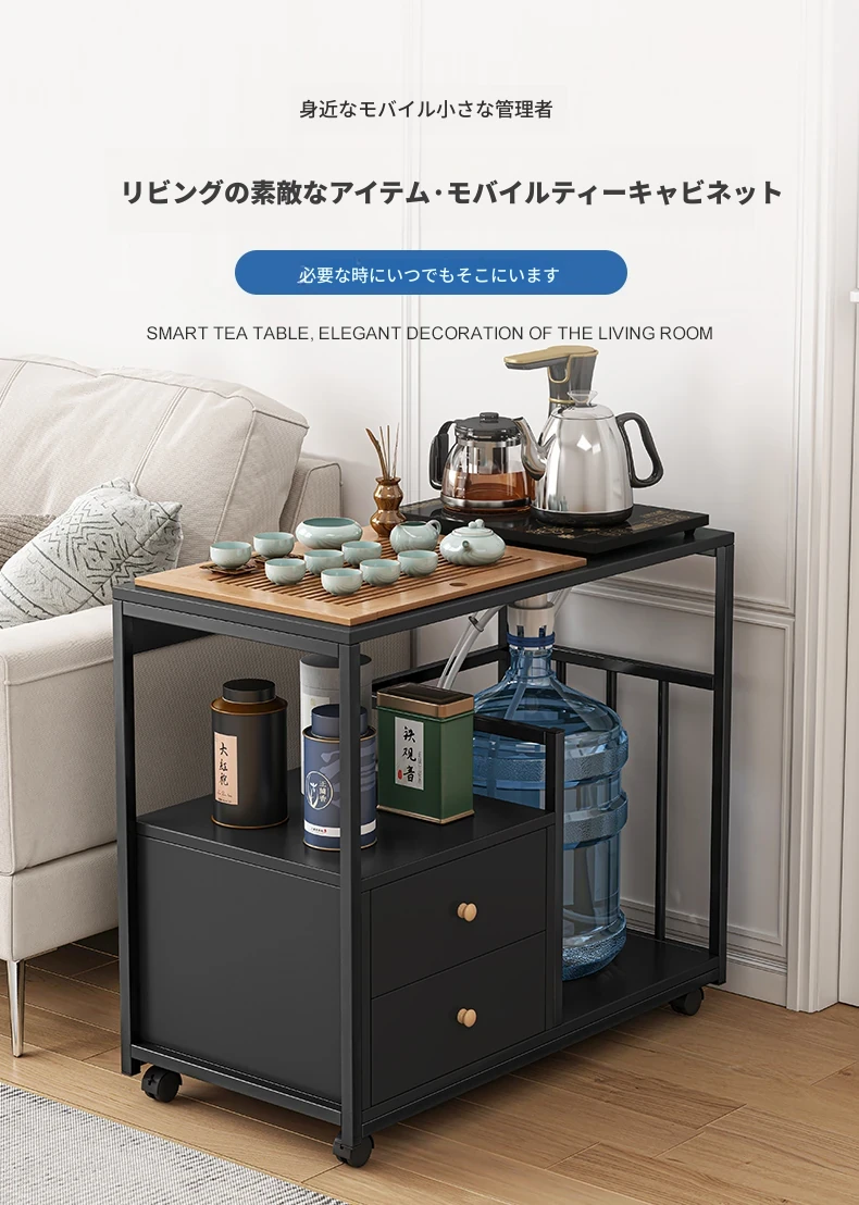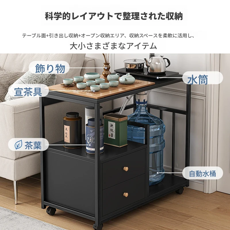 移動可能なソファサイドテーブル・サイドキャビネット!小型住宅に最適な茶卓・リビング用ミニテーブル。お茶を楽しむための便利なサイドカート付き!おしゃれで機能的な空間を演出します。