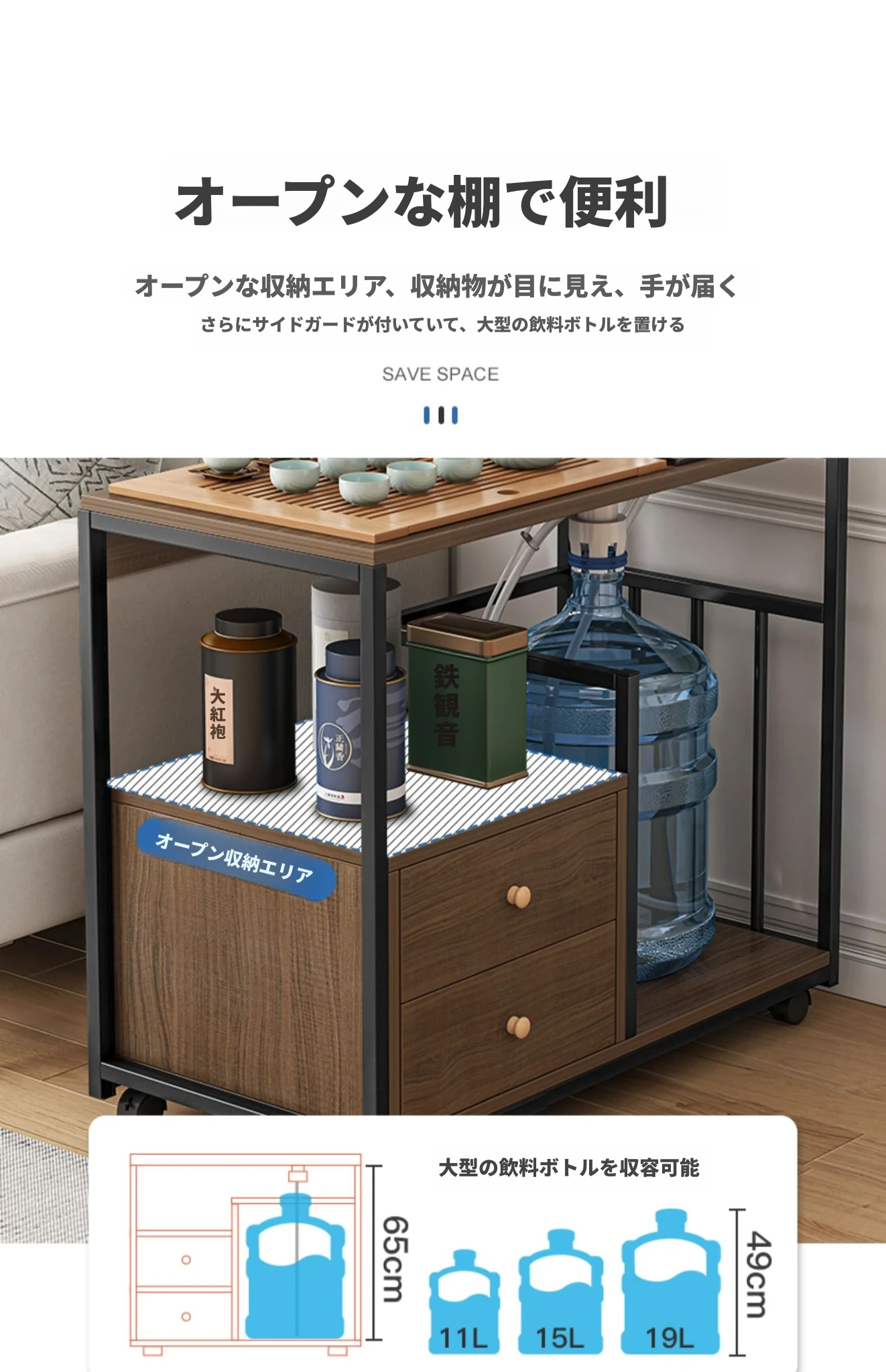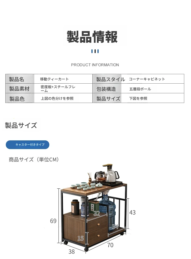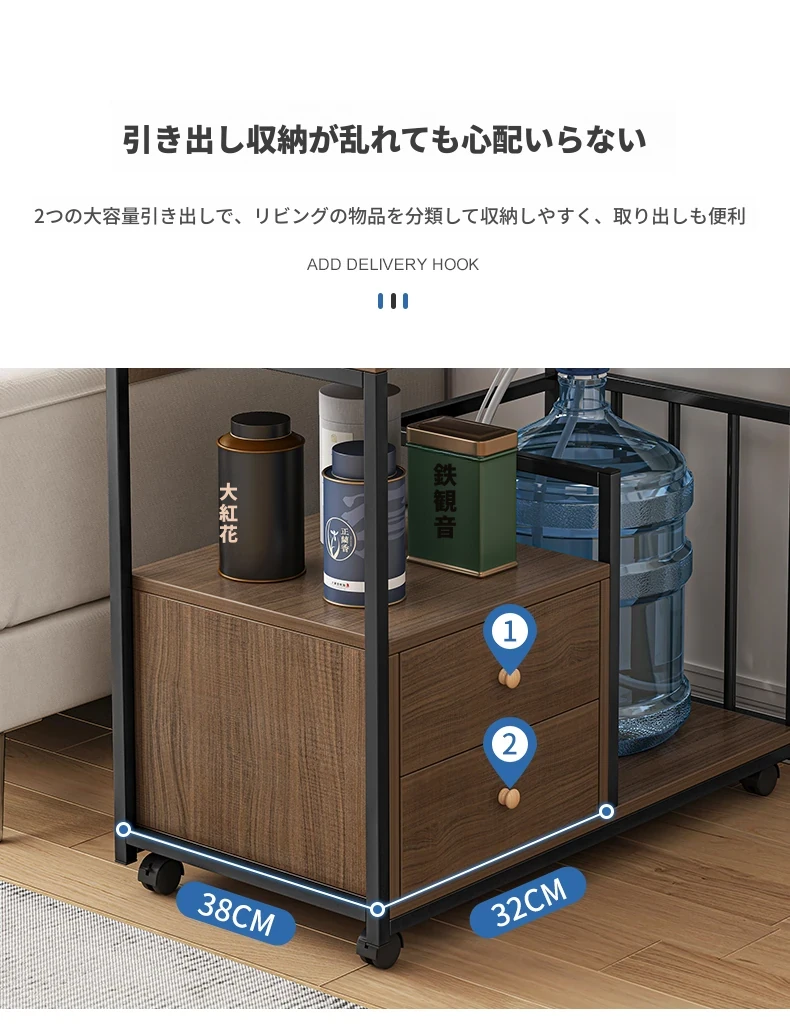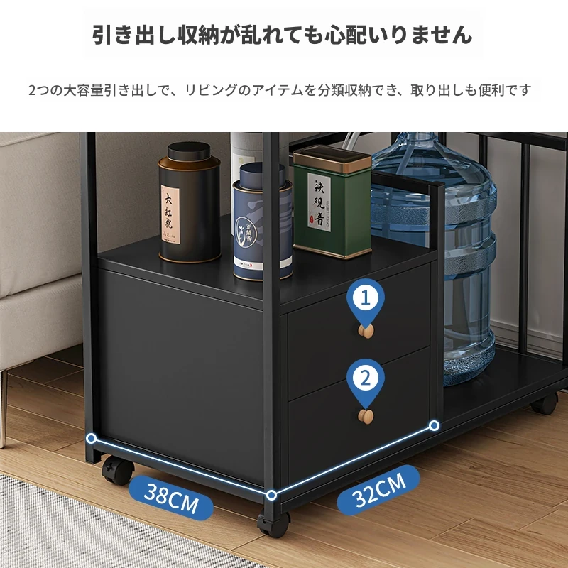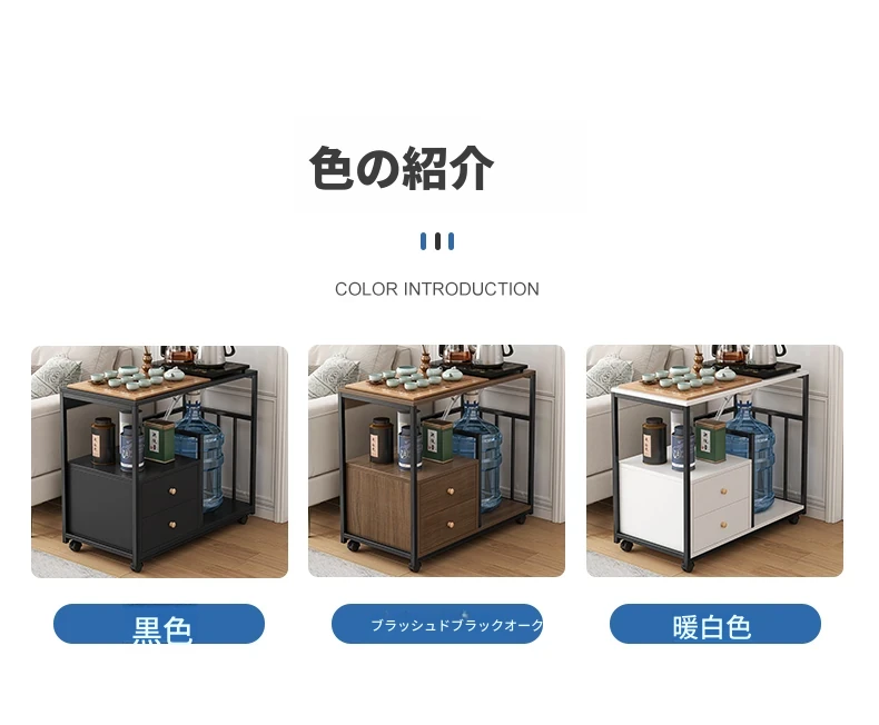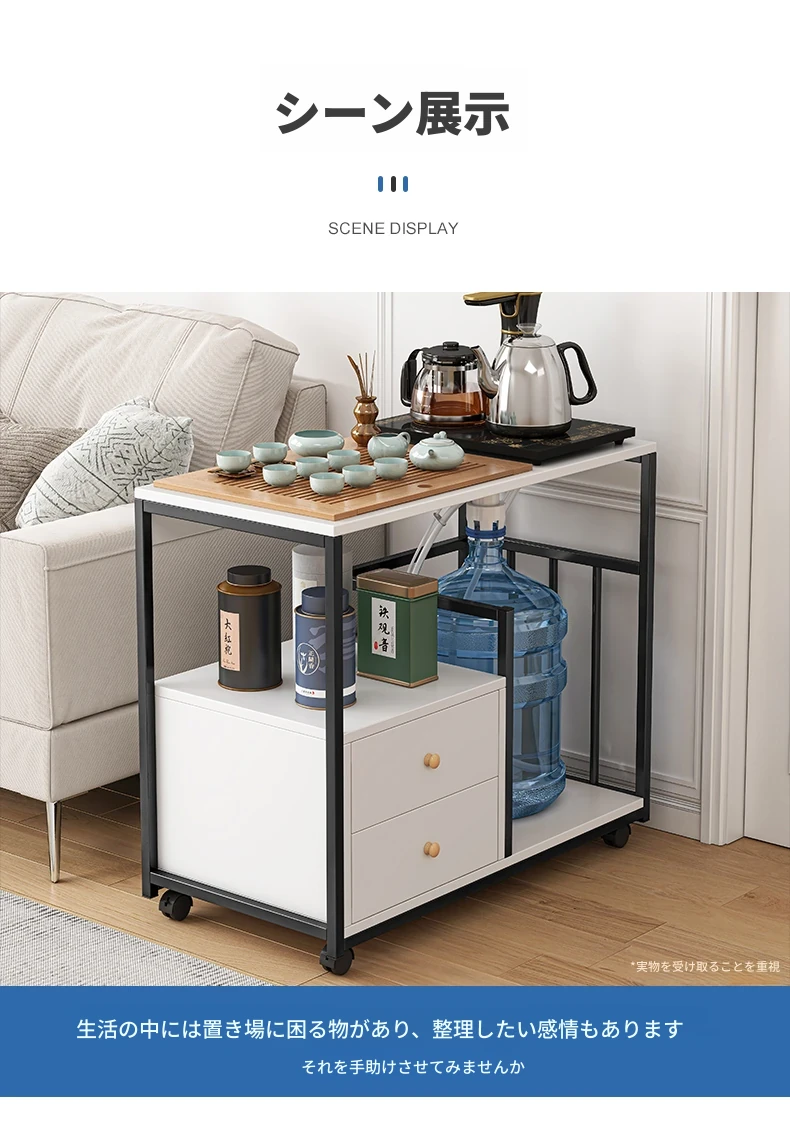 移動可能なソファサイドテーブル・サイドキャビネット!小型住宅に最適な茶卓・リビング用ミニテーブル。お茶を楽しむための便利なサイドカート付き!おしゃれで機能的な空間を演出します。