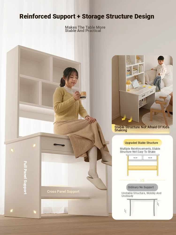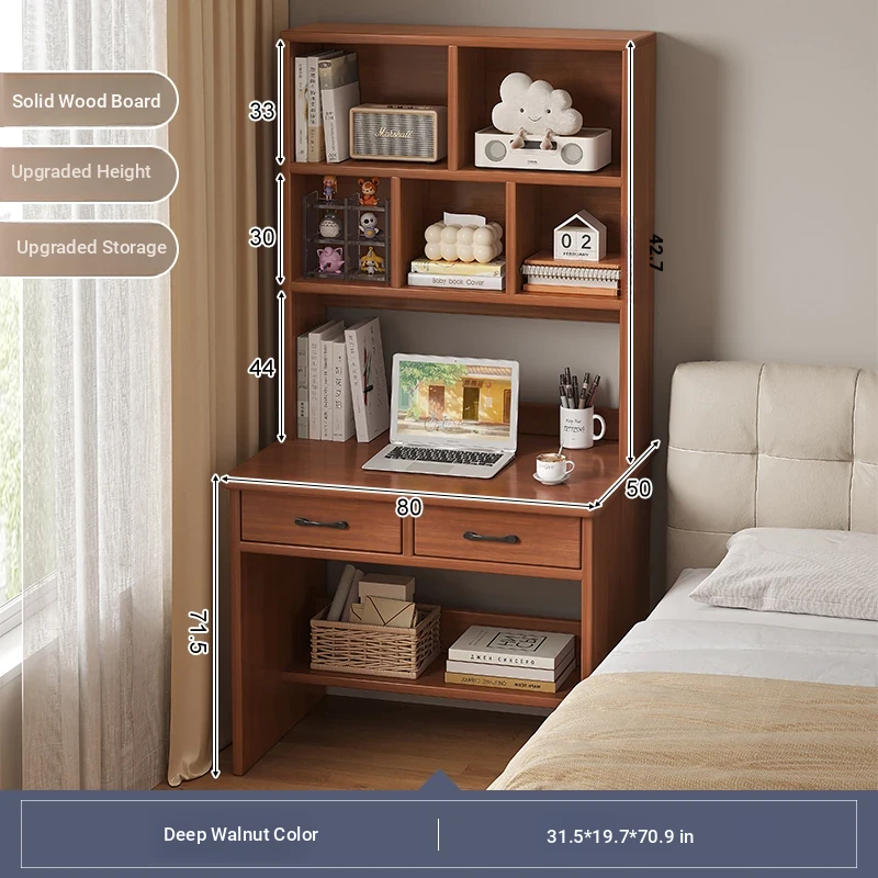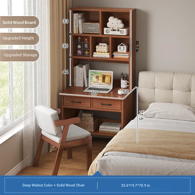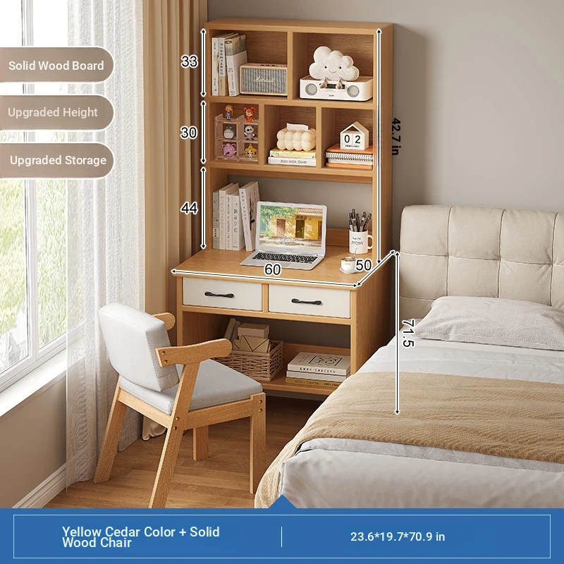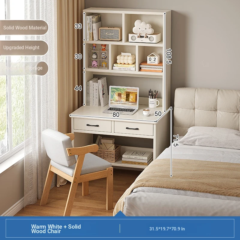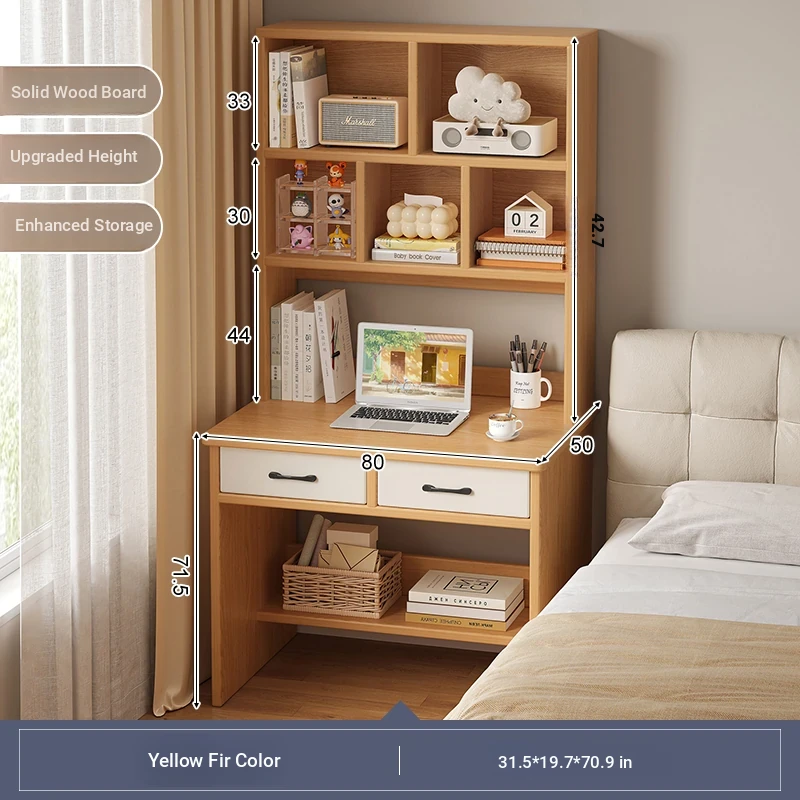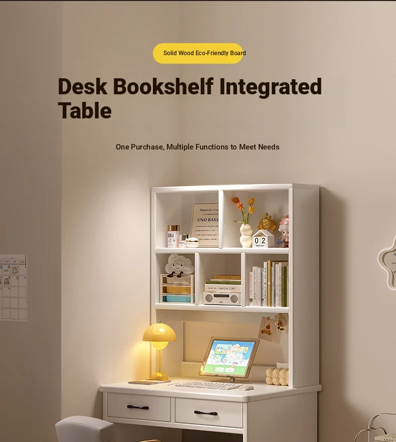 Multi-Functional Solid Wood Bookshelf and Desk Combo - Stylish Storage Solution for Students and Home Use, Simple Study Table and Bookcase for Organizing Your Space