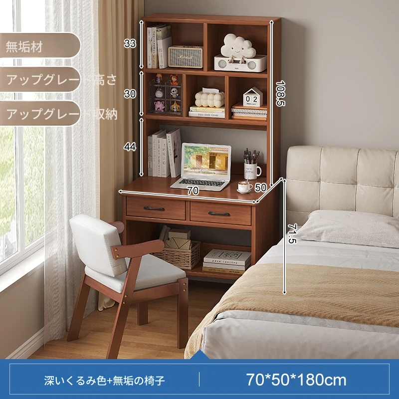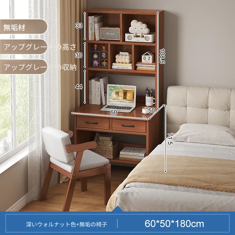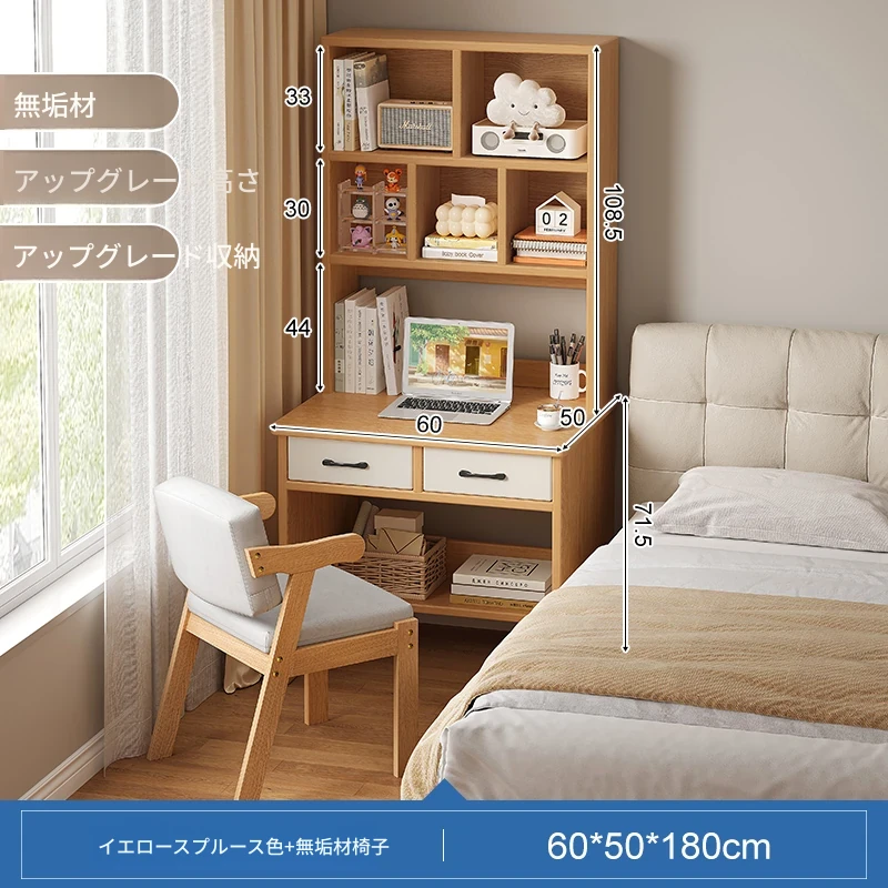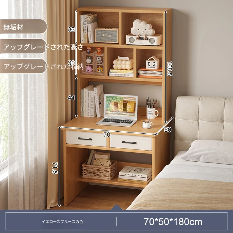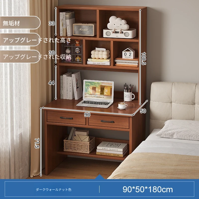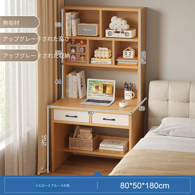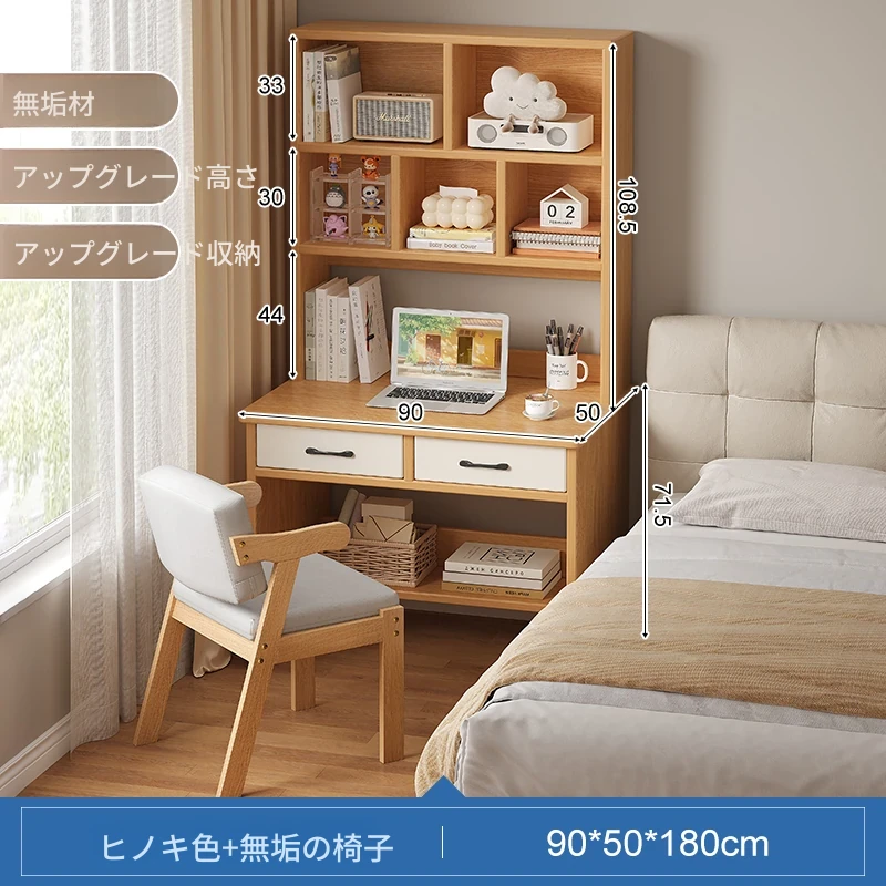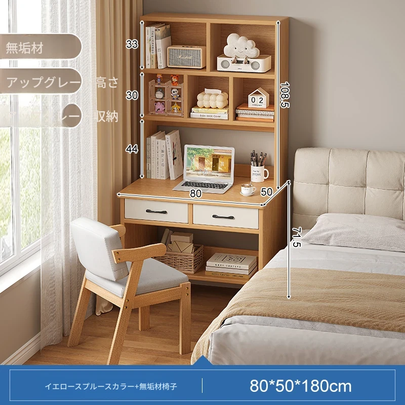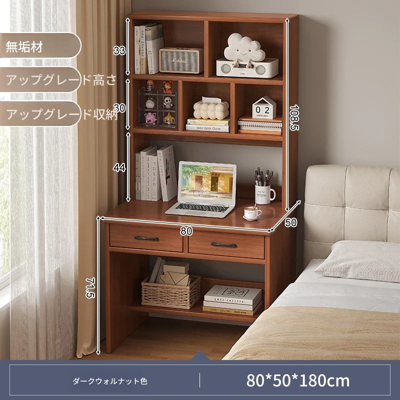 天然木材使用!実用的な本棚とデスクが一体化した収納ラック。学生や家庭に最適なシンプルな学習デスク付き書柜。おしゃれで機能的な収納家具で、スッキリとした空間を実現!