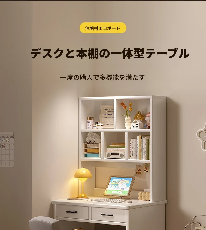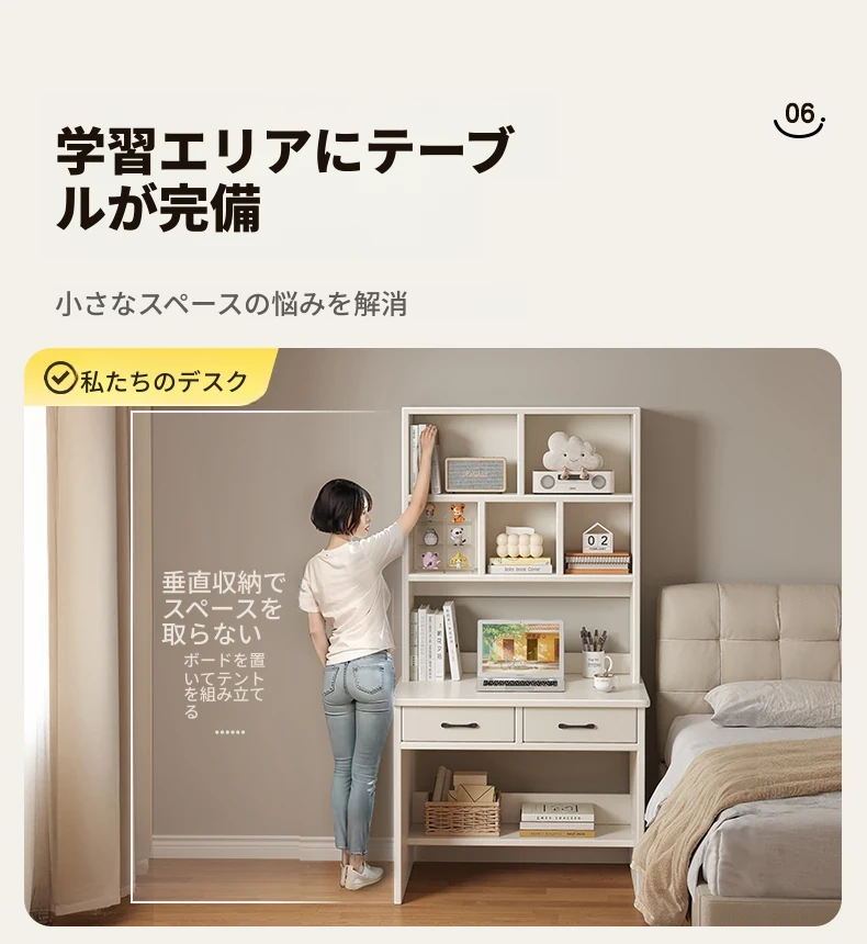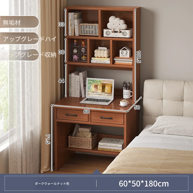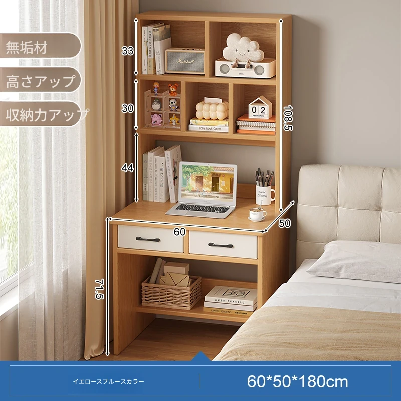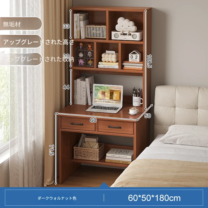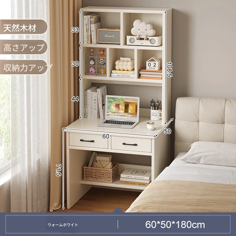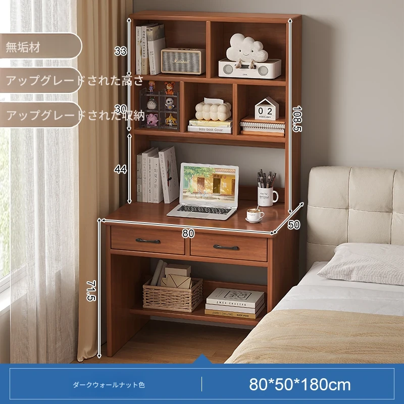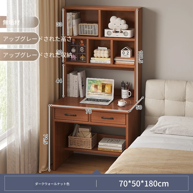 天然木材使用!実用的な本棚とデスクが一体化した収納ラック。学生や家庭に最適なシンプルな学習デスク付き書柜。おしゃれで機能的な収納家具で、スッキリとした空間を実現!