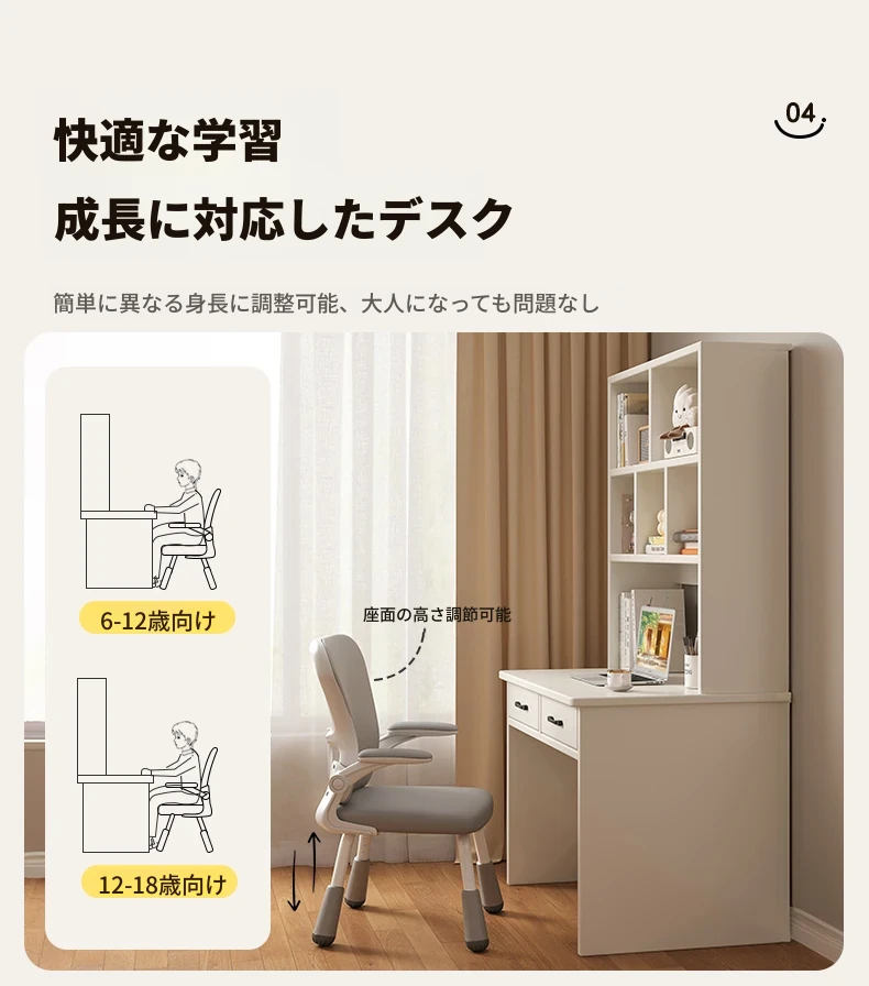 学生用学習椅子*脚の高さ調整✔人間工学デザイン✔ラテックスクッション