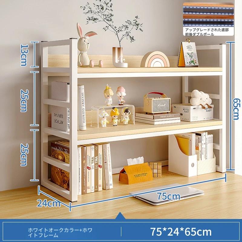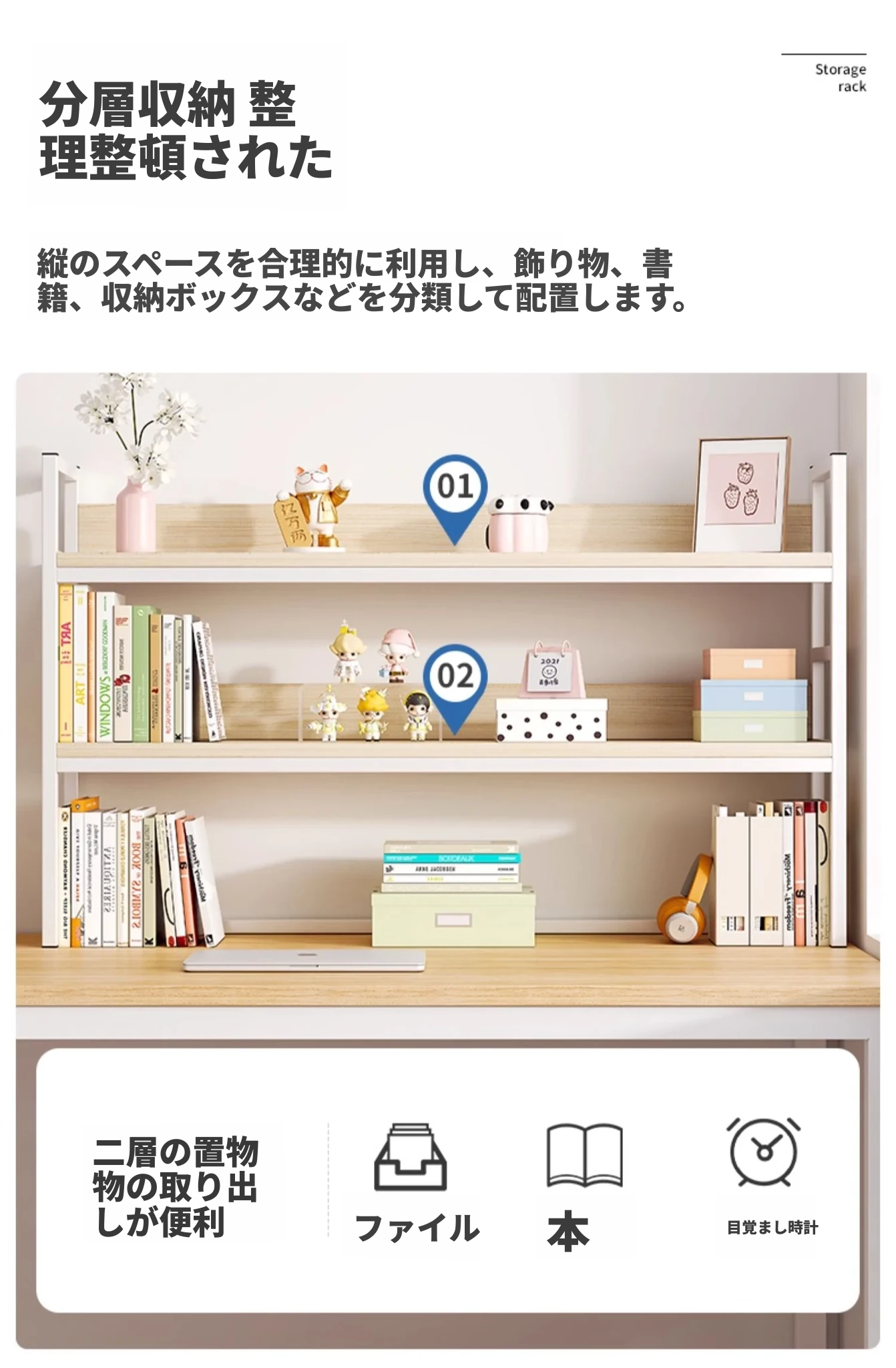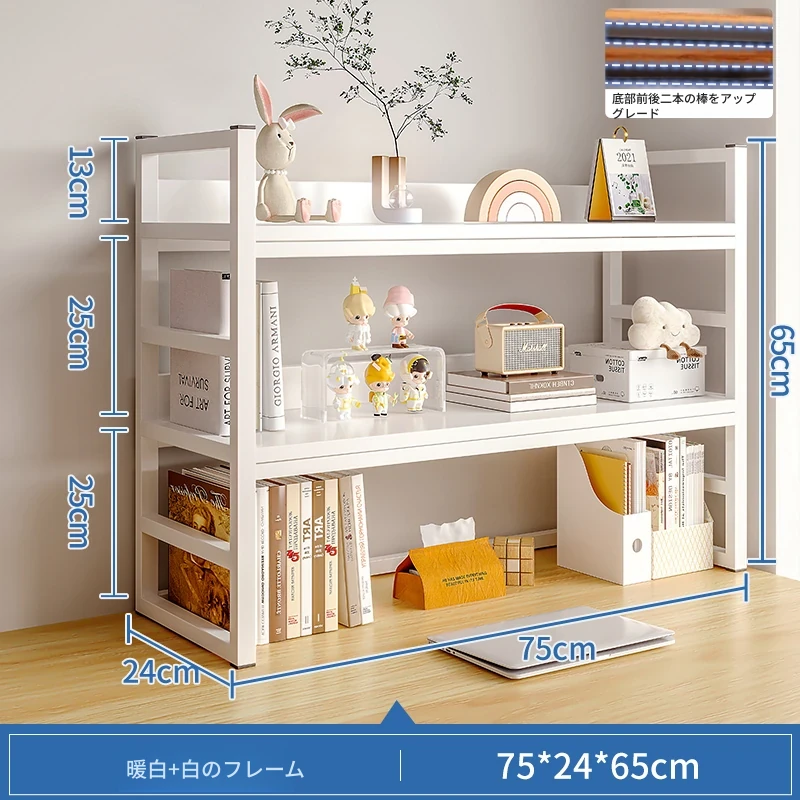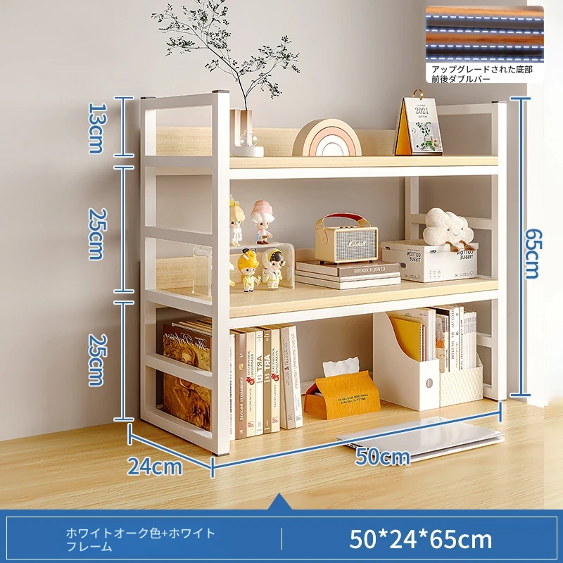 デスク上の多層シンプル本棚 - 学生や家庭に最適な収納ラック!整理整頓をサポートし、作業スペースをスッキリ整えます。おしゃれで実用的なディスプレイラックで、あなたのデスクを華やかに!