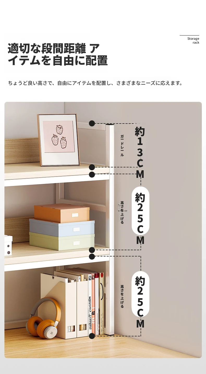 三段★ナチュラルウッド色+ホワイトフレーム50*20*60CM