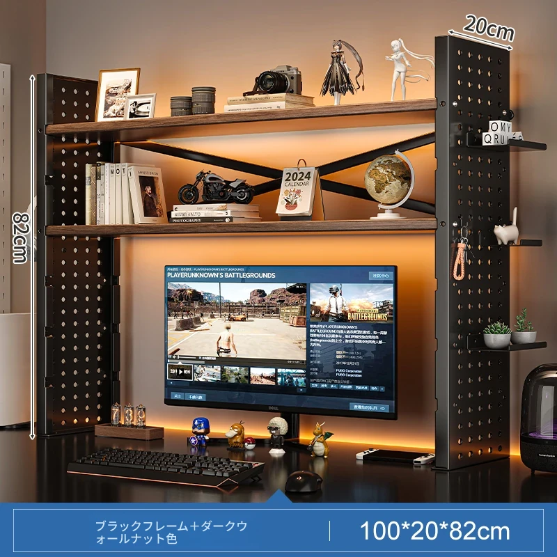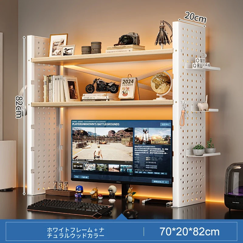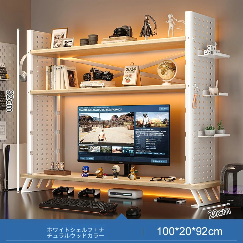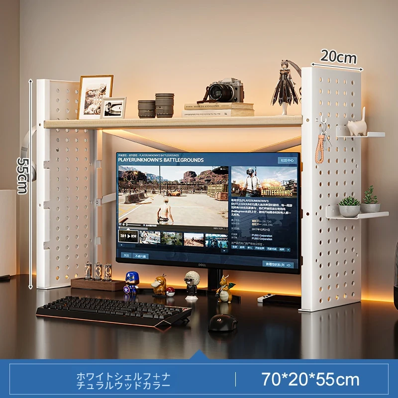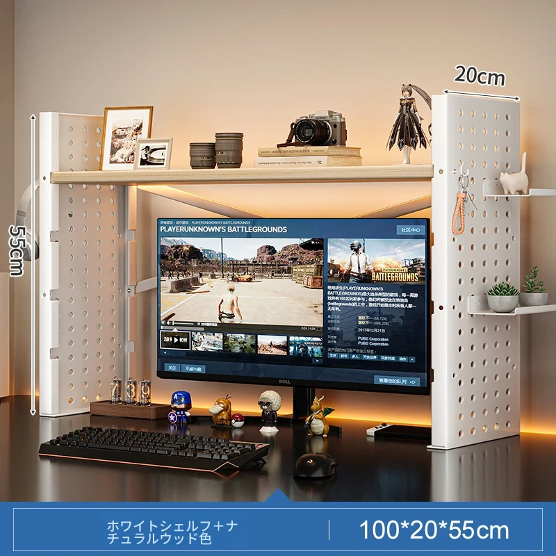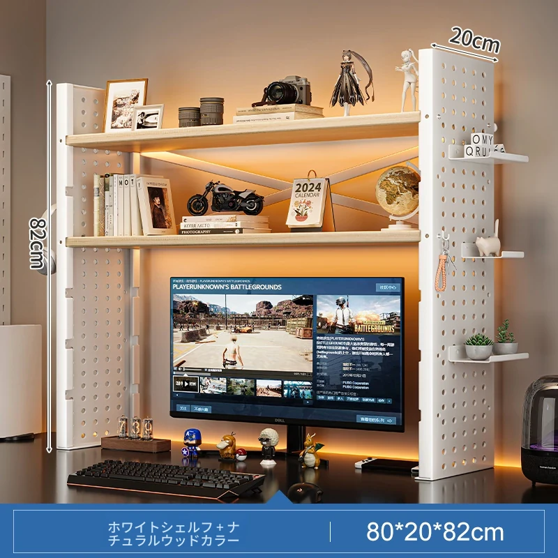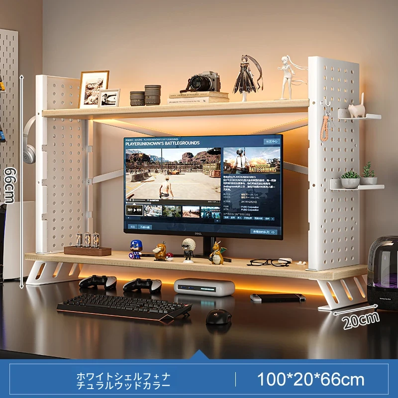 デスク上収納ラック - マルチレイヤーで整理整頓!書籍や小物をスマートに収納し、パソコンモニターを高くすることで、快適な作業空間を実現します。おしゃれで実用的なデスク周りの必需品!