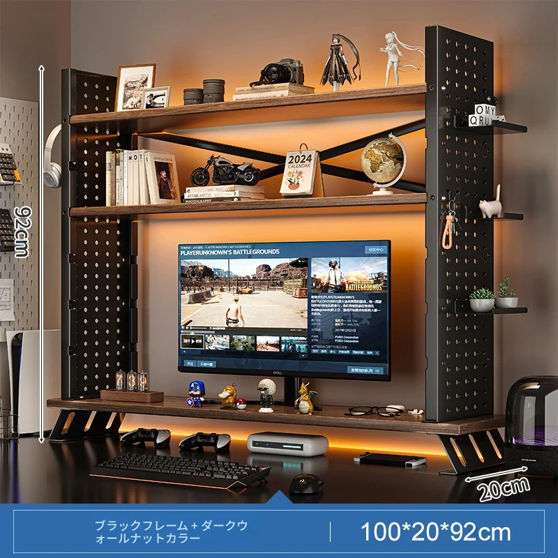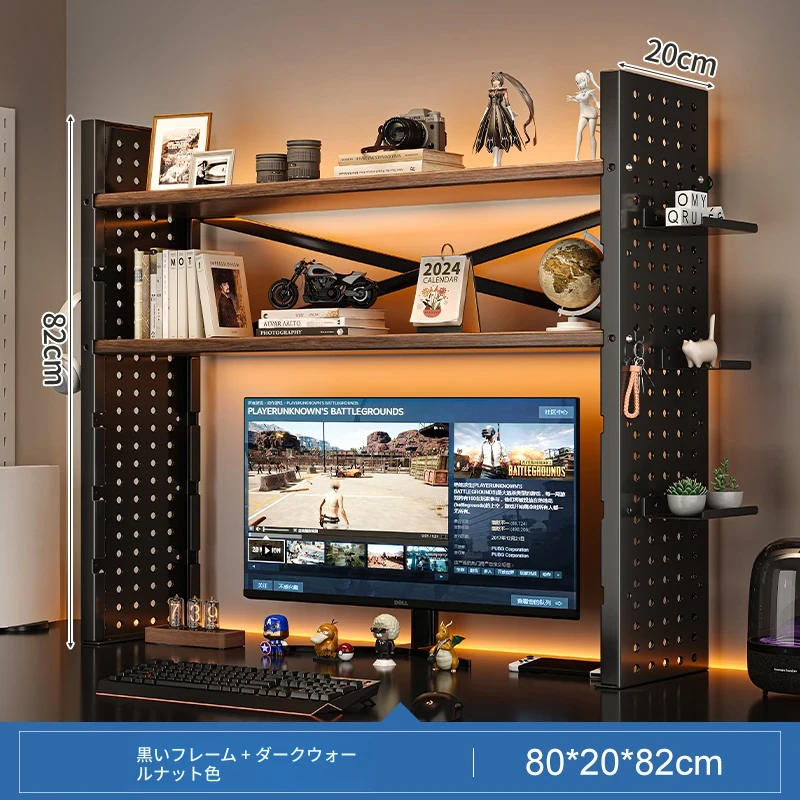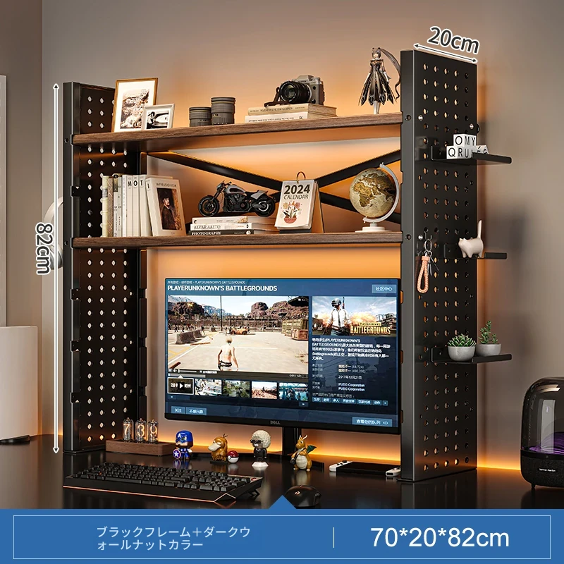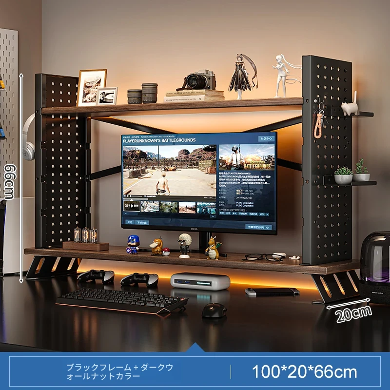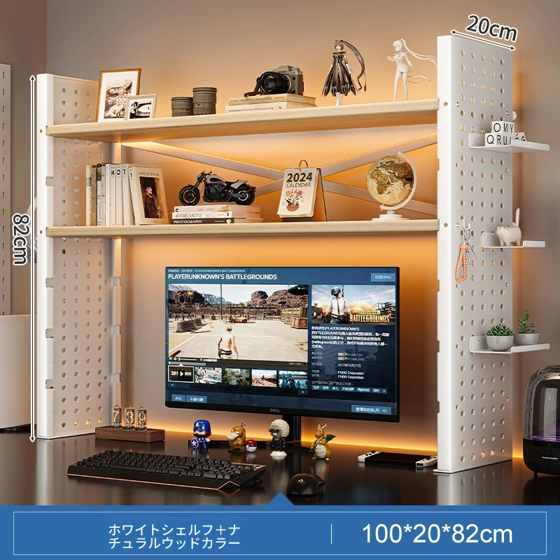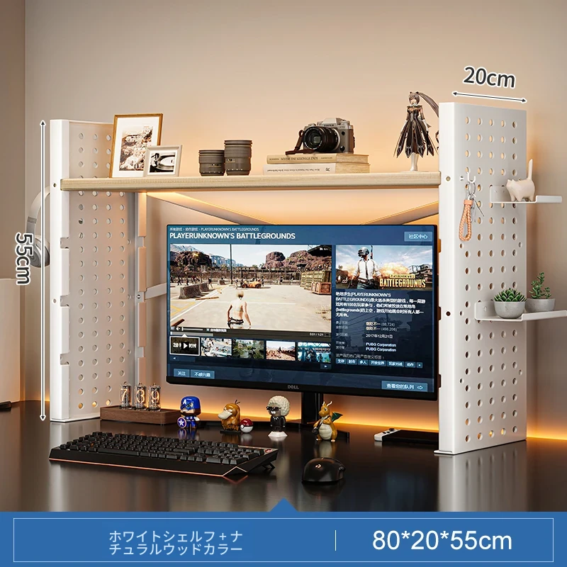 デスク上収納ラック - マルチレイヤーで整理整頓!書籍や小物をスマートに収納し、パソコンモニターを高くすることで、快適な作業空間を実現します。おしゃれで実用的なデスク周りの必需品!