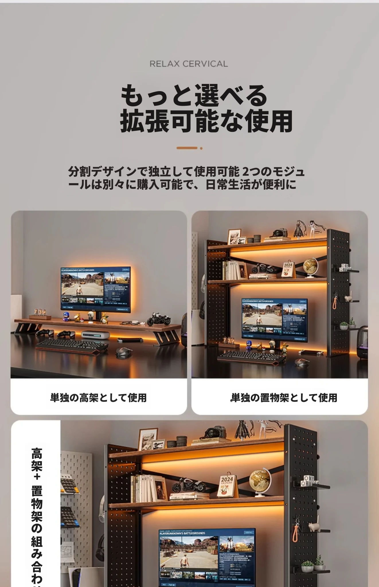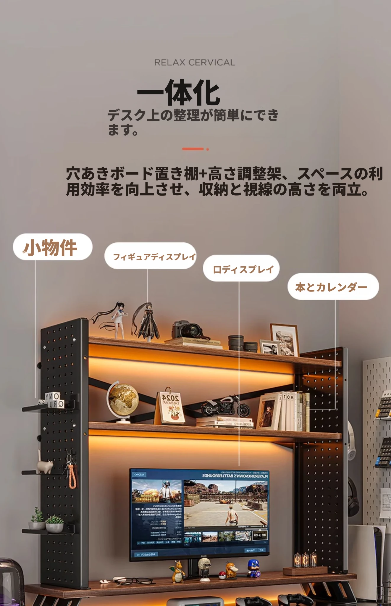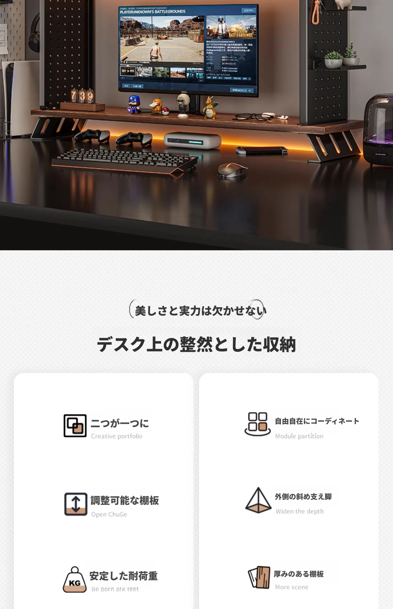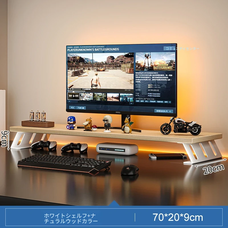 デスク上収納ラック - マルチレイヤーで整理整頓!書籍や小物をスマートに収納し、パソコンモニターを高くすることで、快適な作業空間を実現します。おしゃれで実用的なデスク周りの必需品!