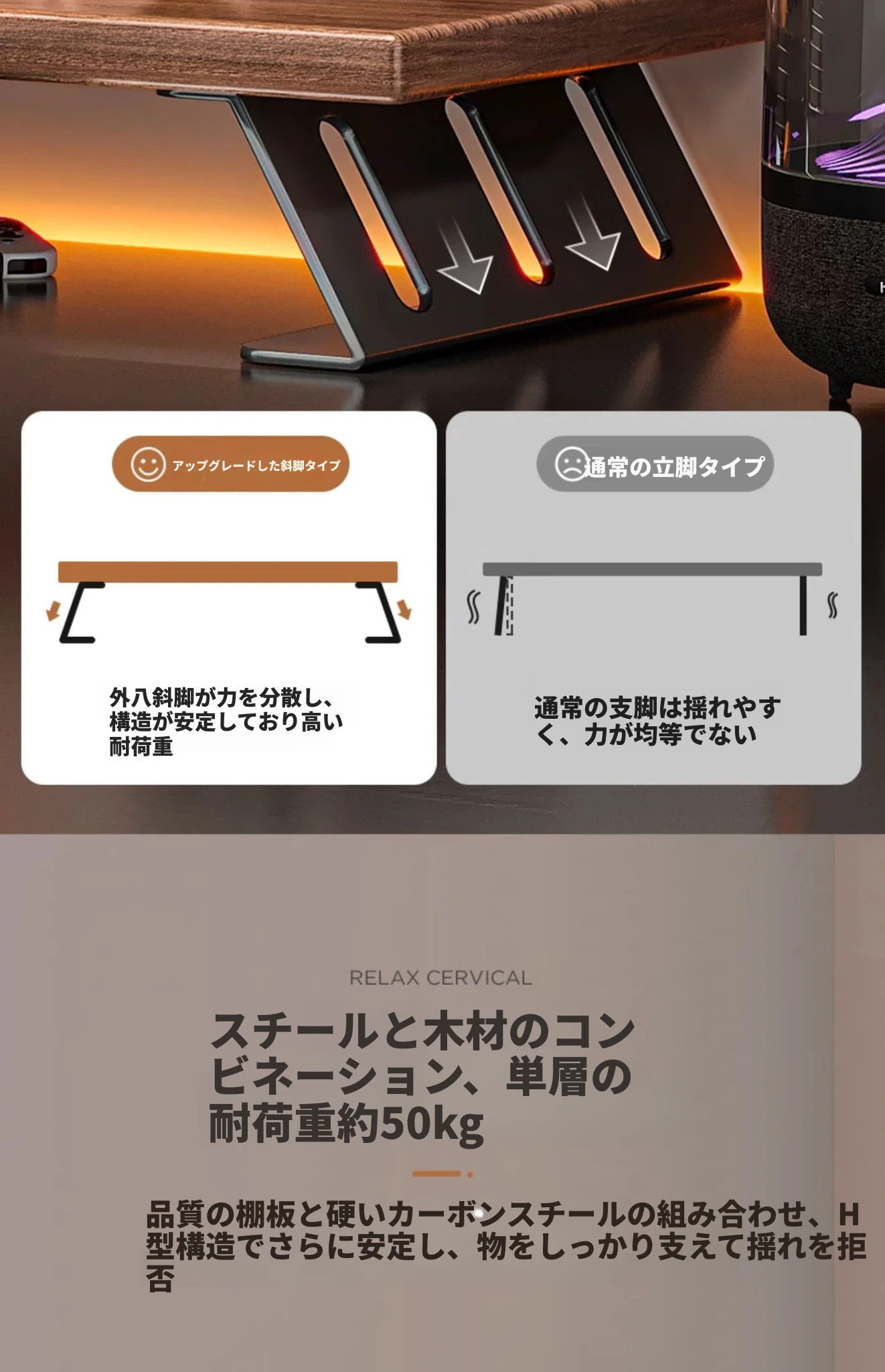ナチュラルウッドカラーのハイトスタンド70CM