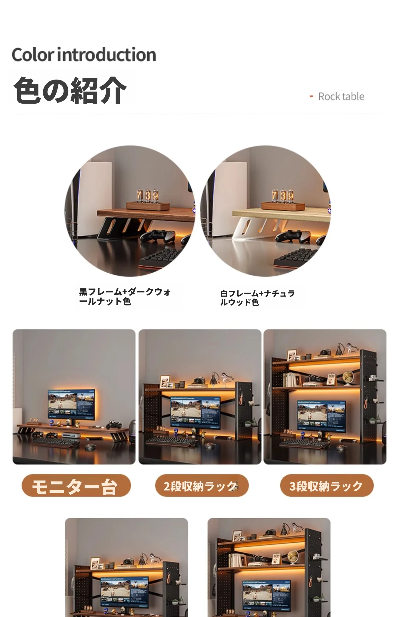【メイン画像にハightスタンド付き】黒+ダークウォールナットの二段【ハイトスタンド+収納棚+サイドボードドリルボードアクセサリー】