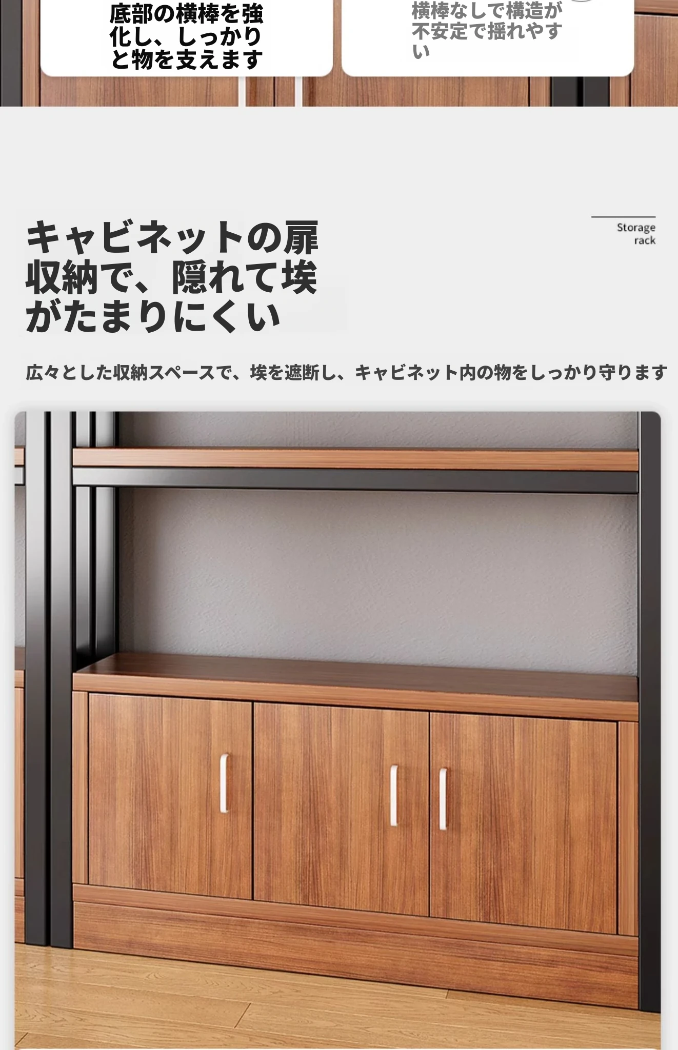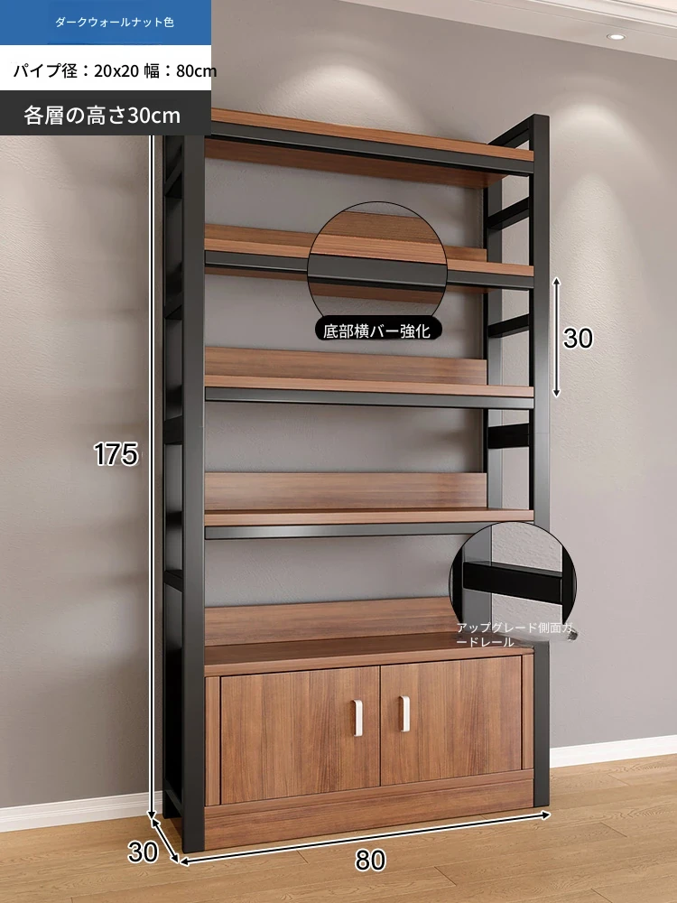 【35-40層高 ダブルボトム横バー】深胡桃+黒フレーム3段棚80CM 【アップグレード扉ロック付き】