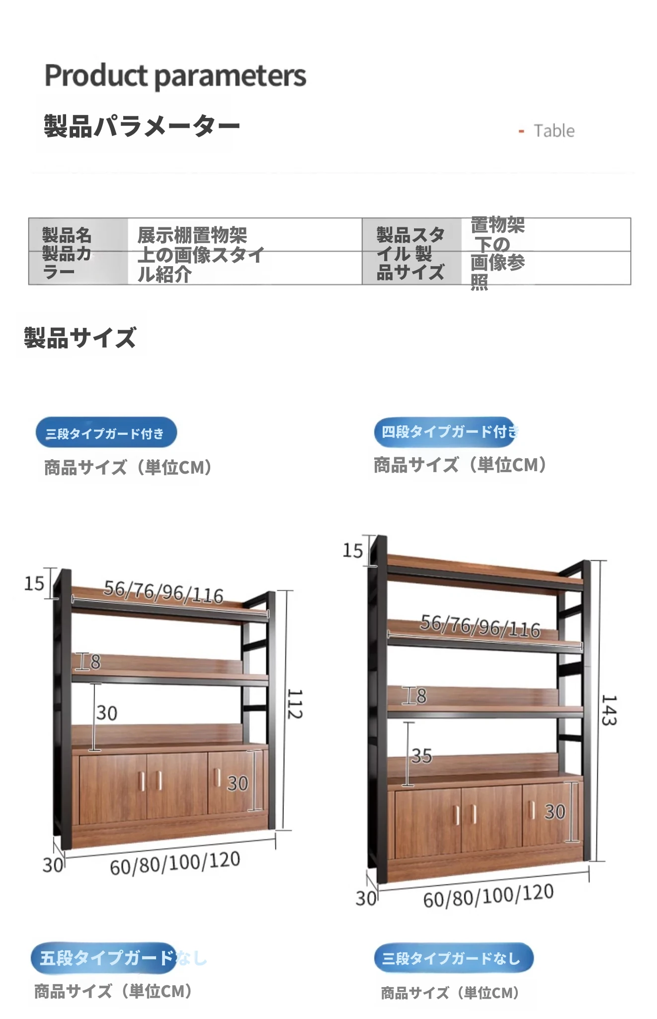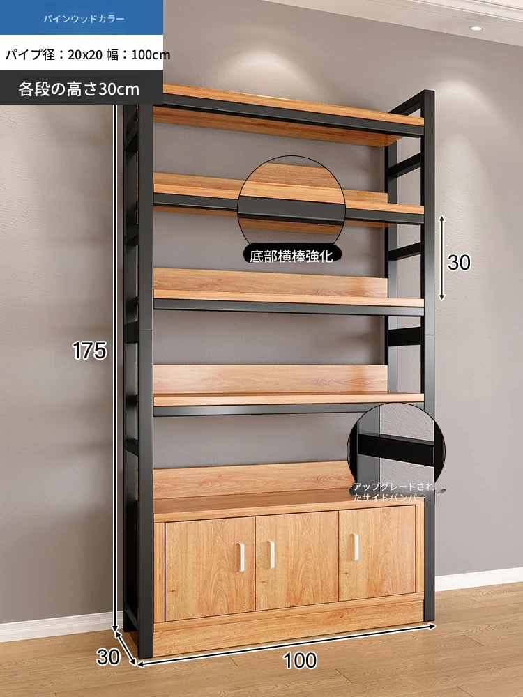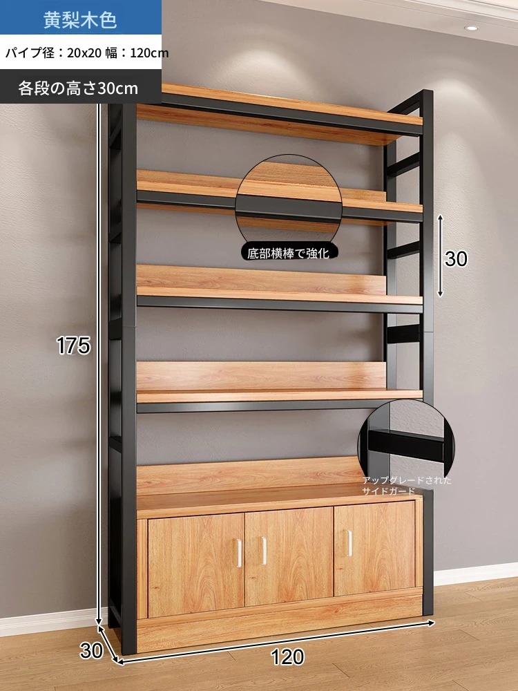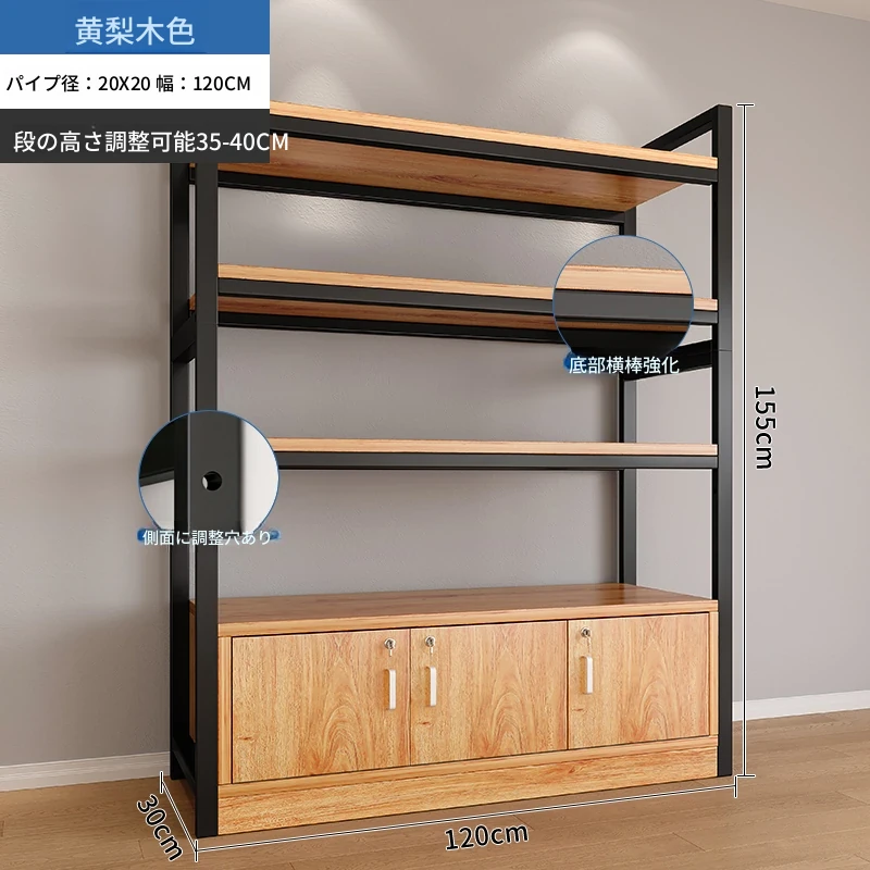 【35-40層高 ダブルボトム横バー】黄梨木+黒フレーム4段棚120CM 【アップグレード扉ロック付き】