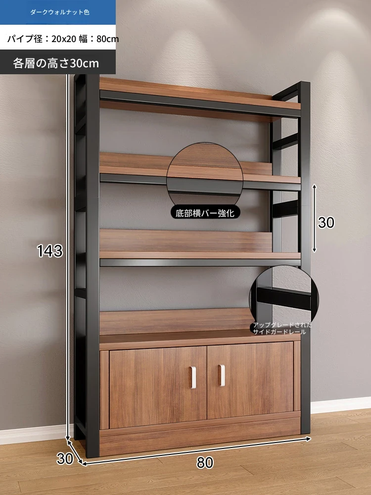 【35-40層高 ダブルボトム横バー】深胡桃+黒フレーム4段棚80CM 【アップグレード扉ロック付き】